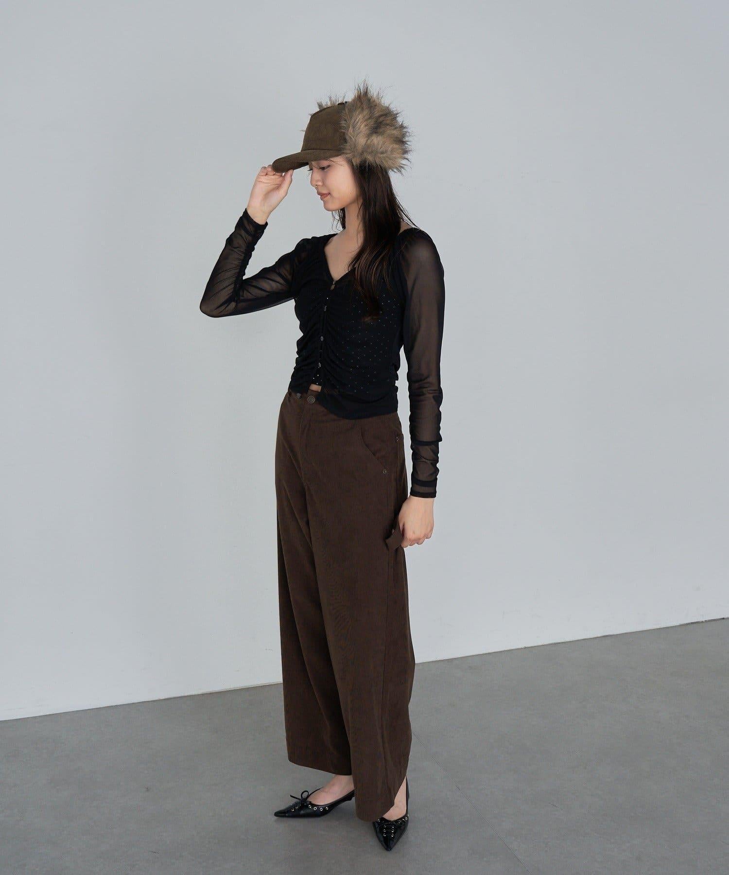 燈芯絨材質,但面料不會太厚,因此無論溫度如何都能輕鬆穿著。