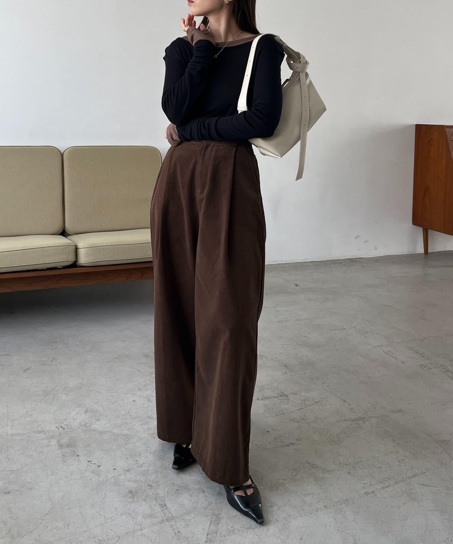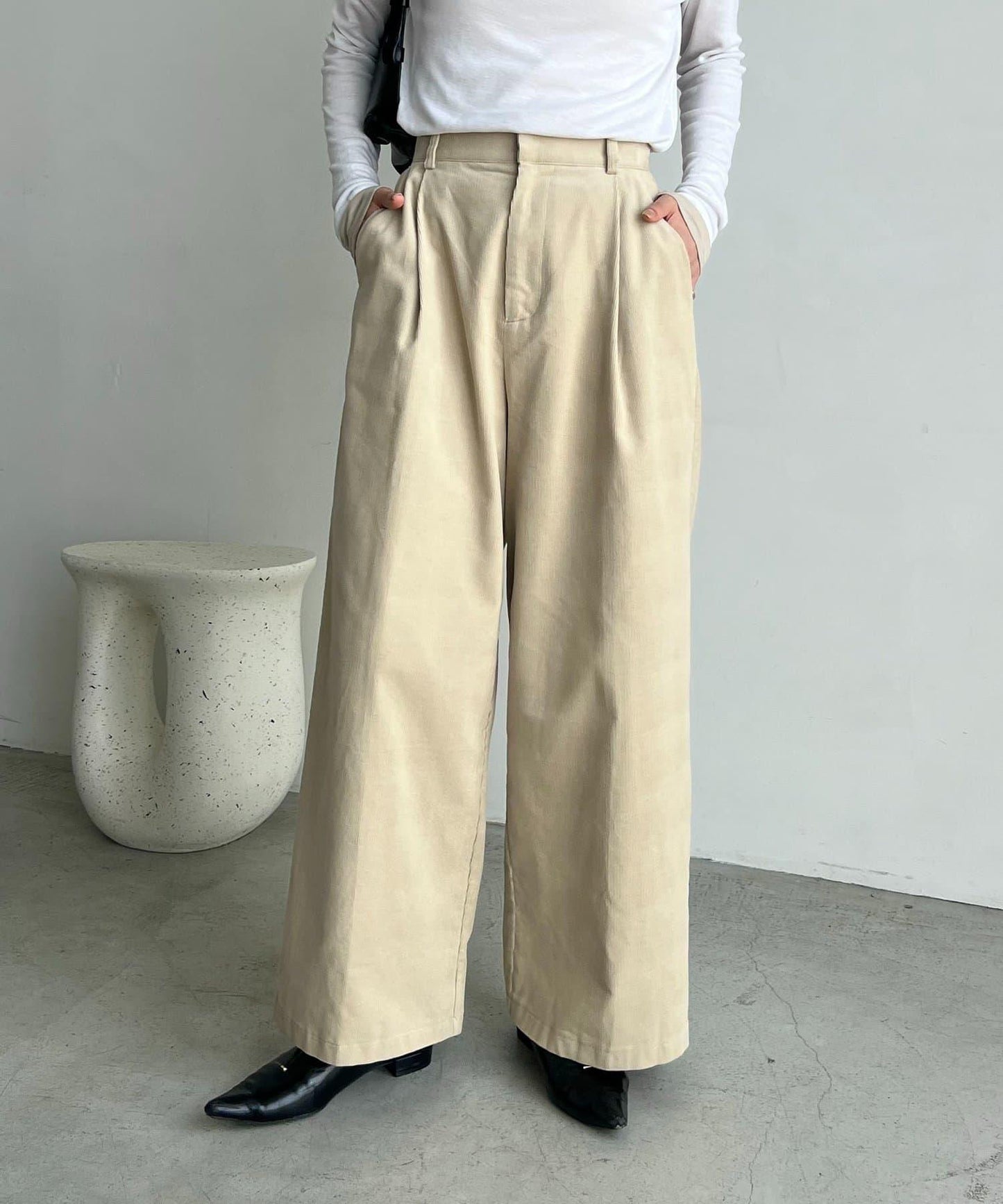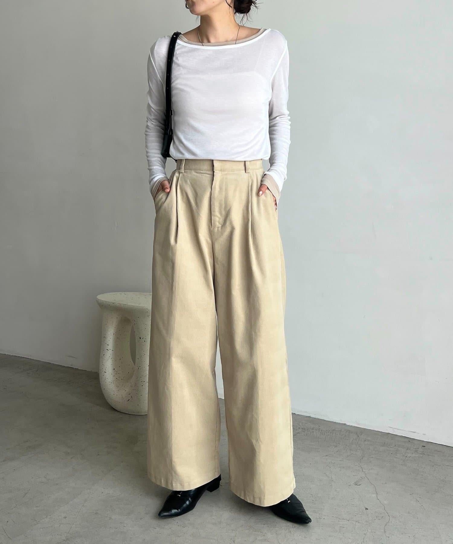 長褲的材質讓它即使搭配簡單的上衣也顯得時尚。