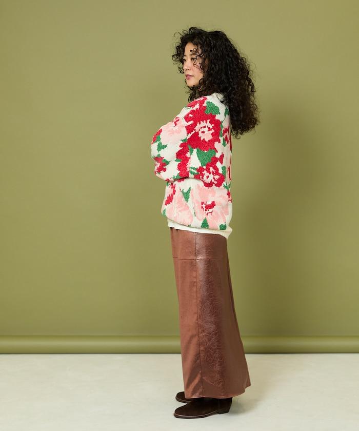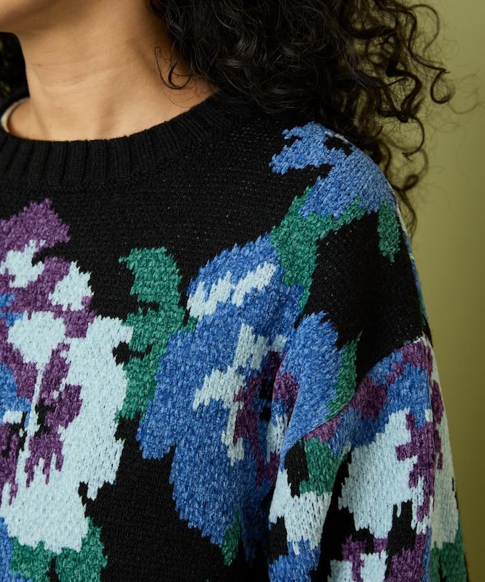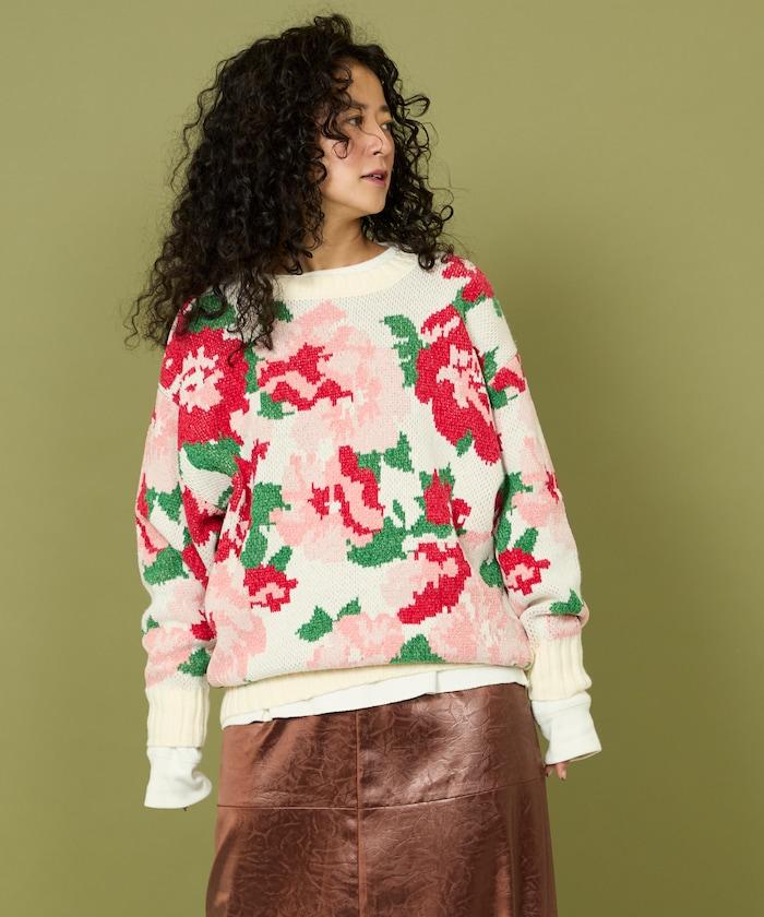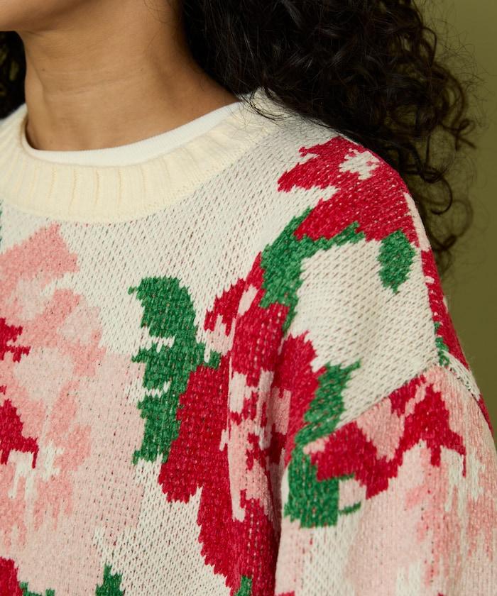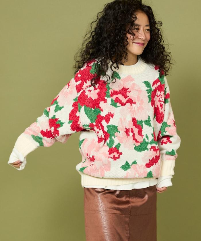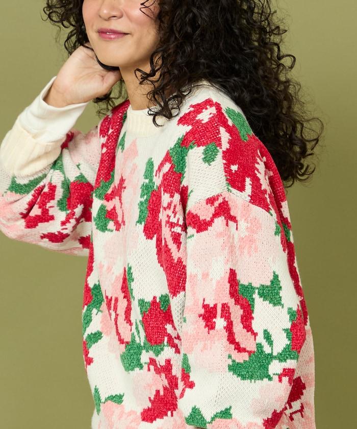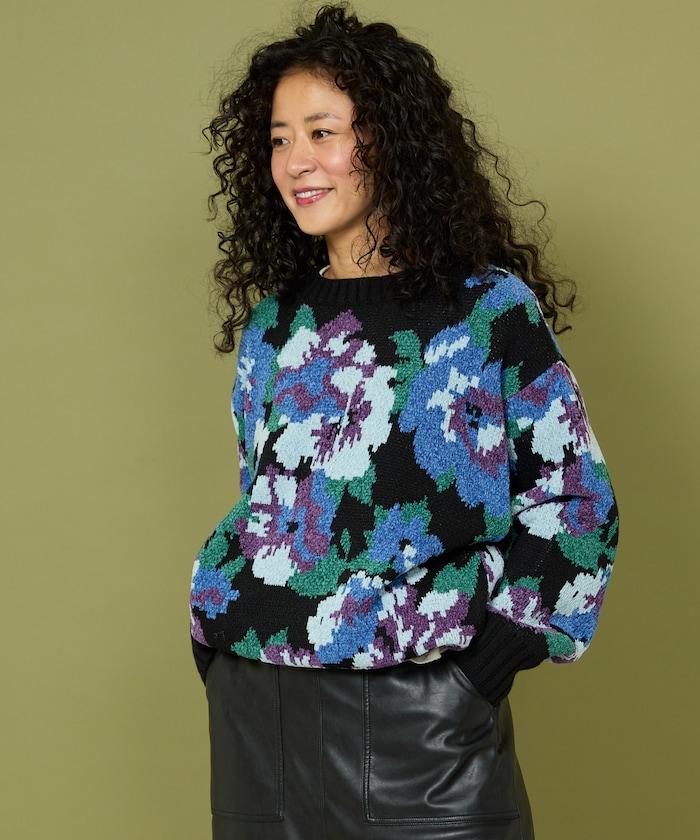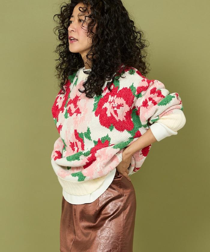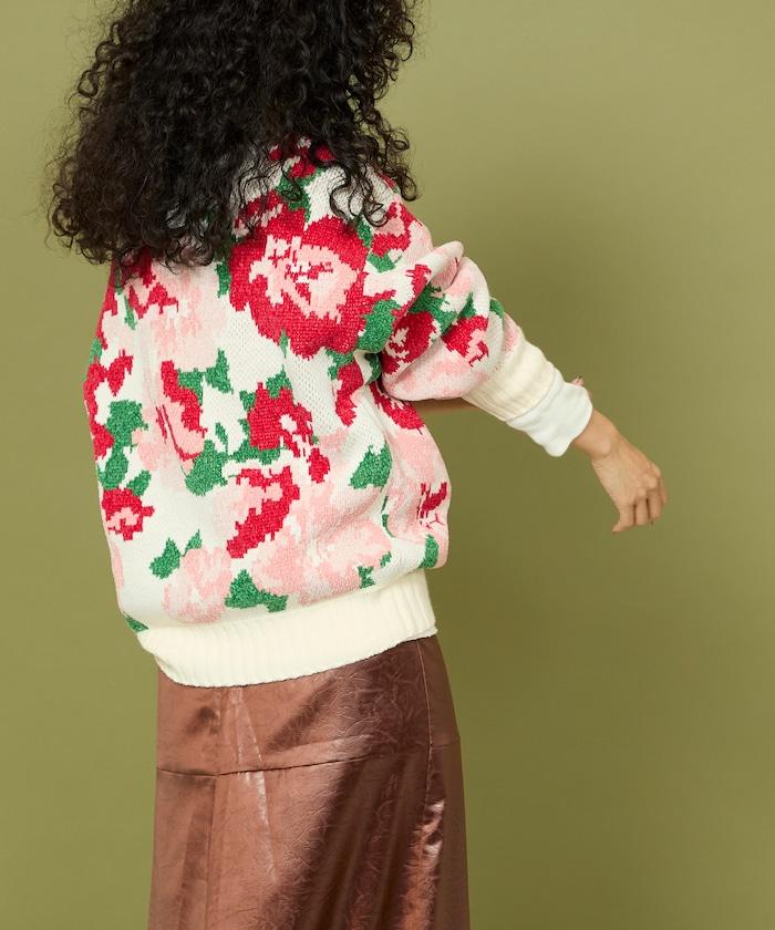 復古感十足的花朵針織衫,穿在身上非常好看。