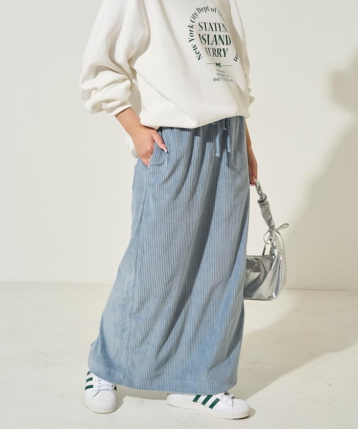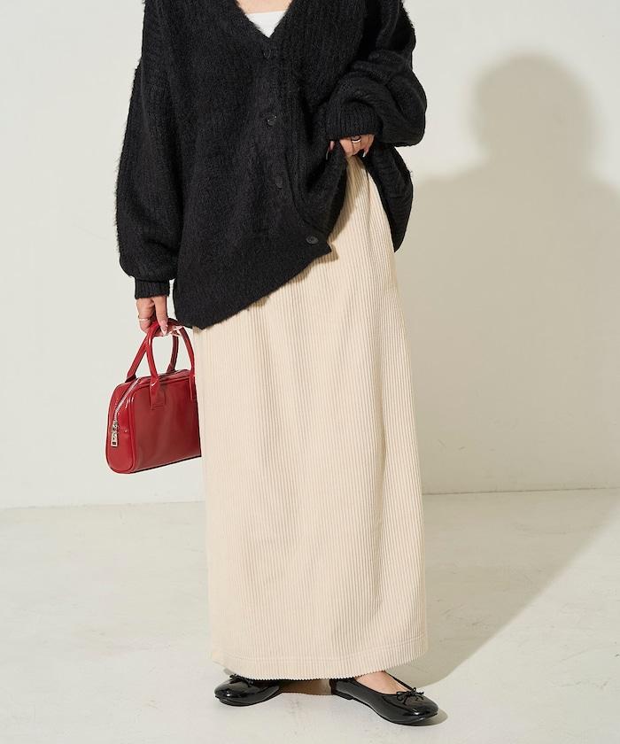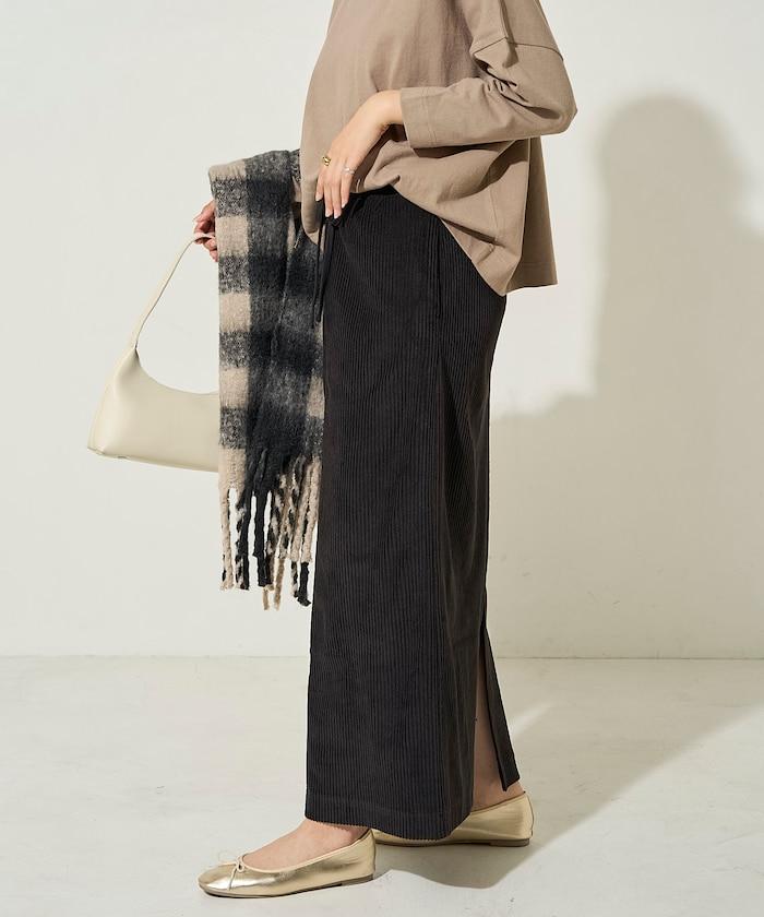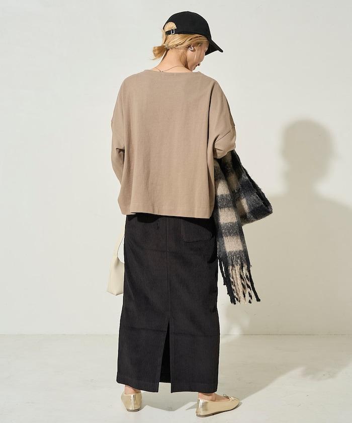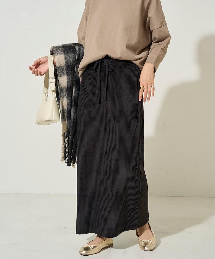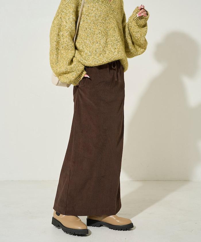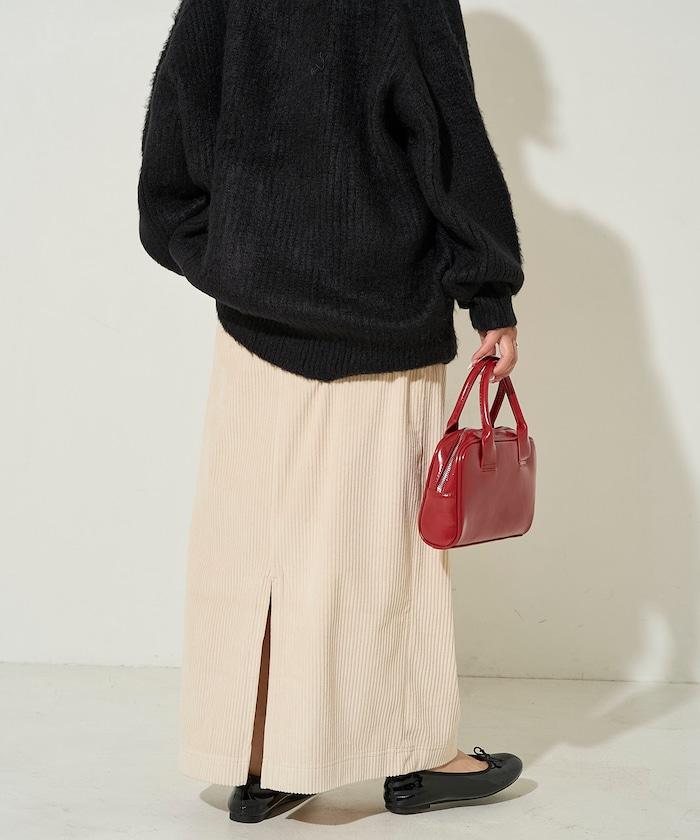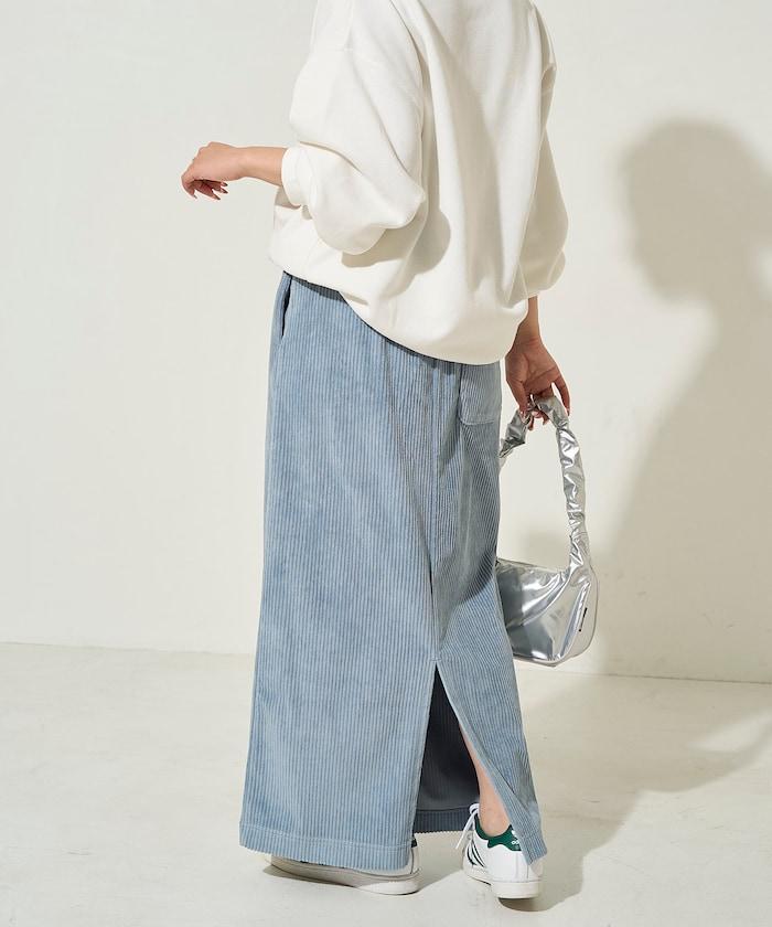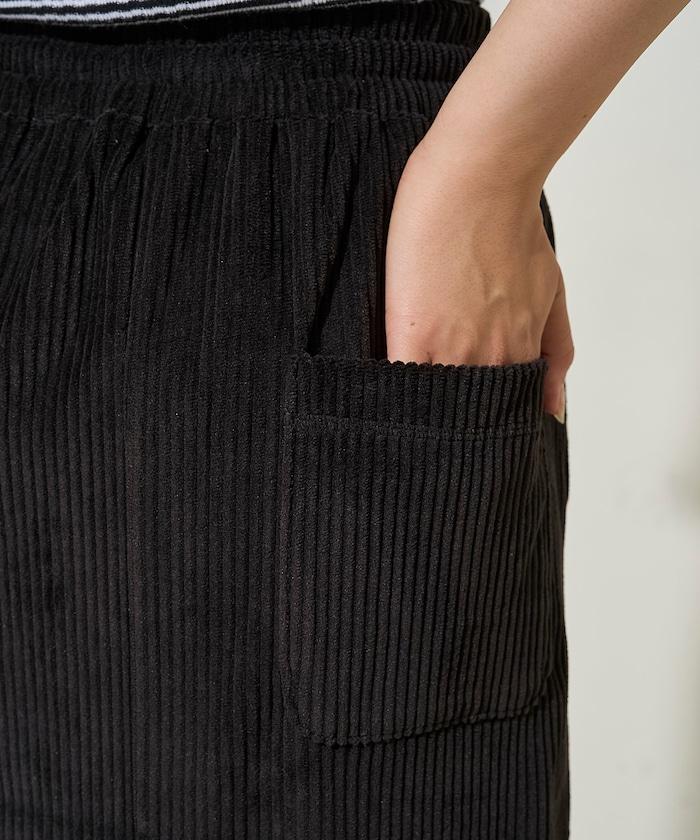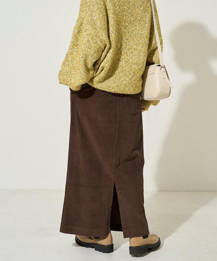 燈芯絨開衩休閒半身裙