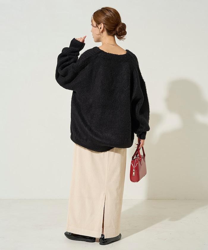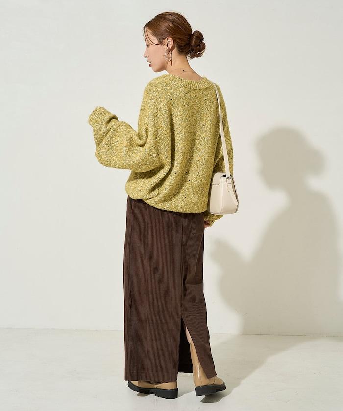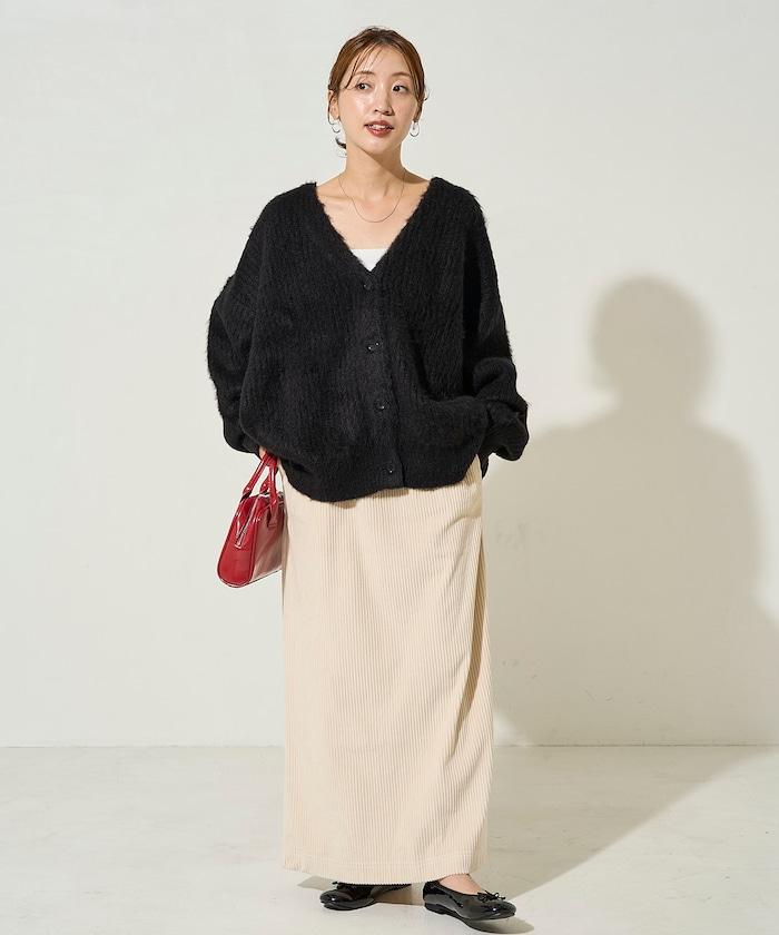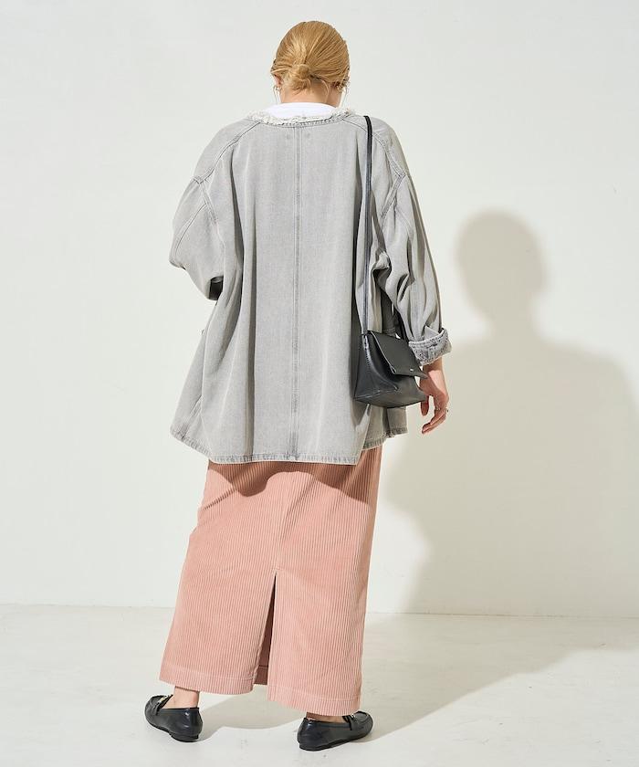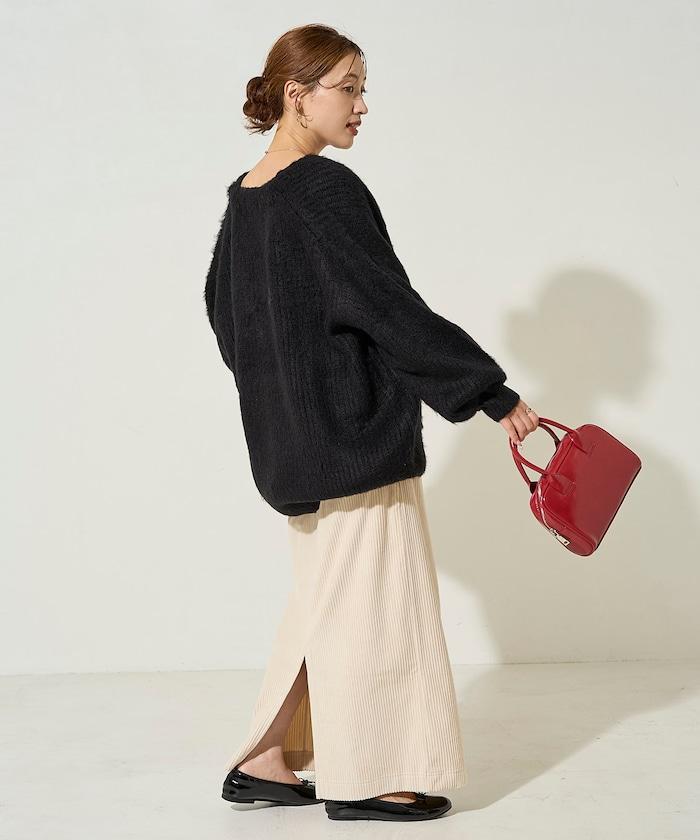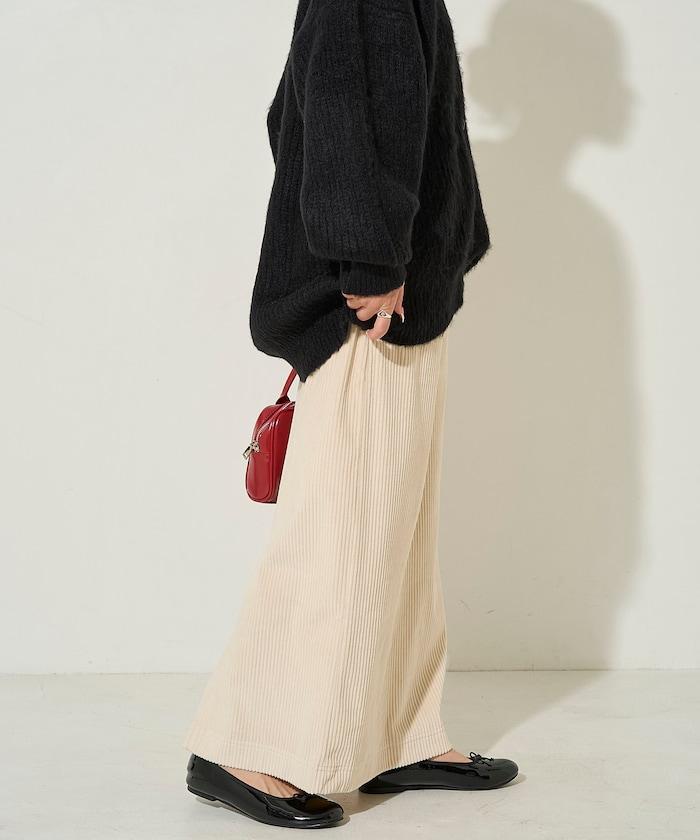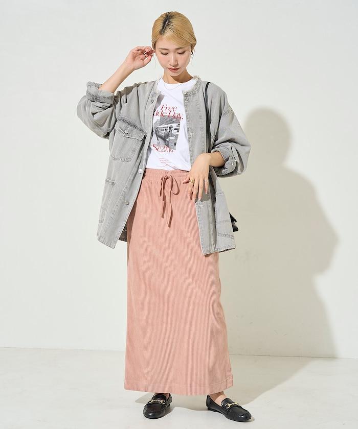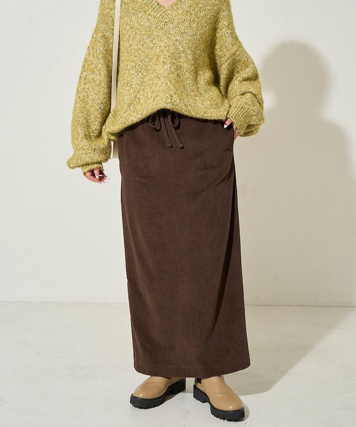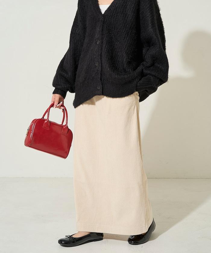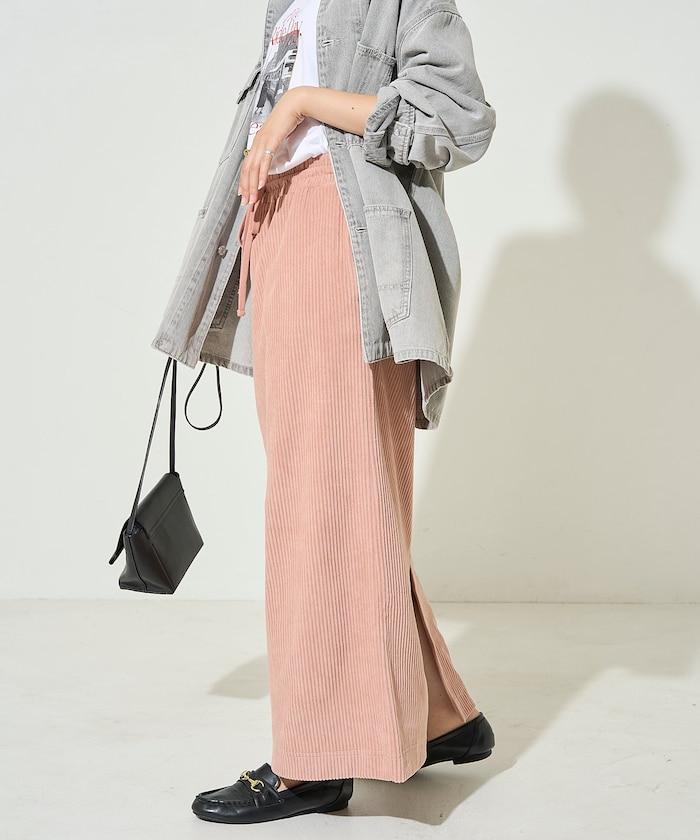 燈芯絨開衩休閒半身裙