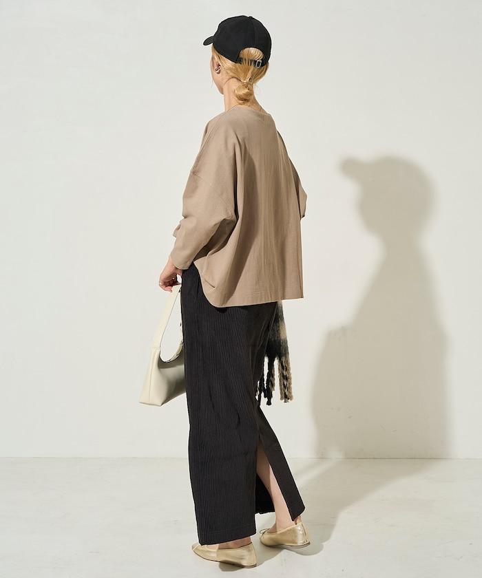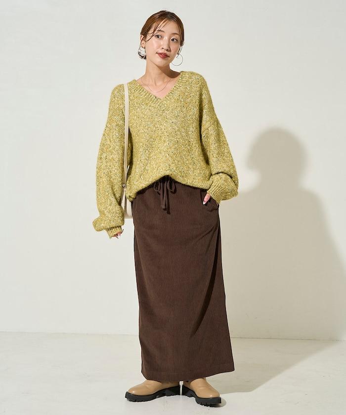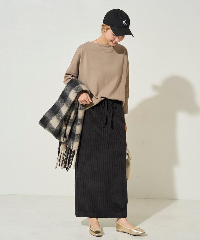 內搭寬鬆的線針織衫,配上長靴,打造更具季節感的輕鬆成人造型。