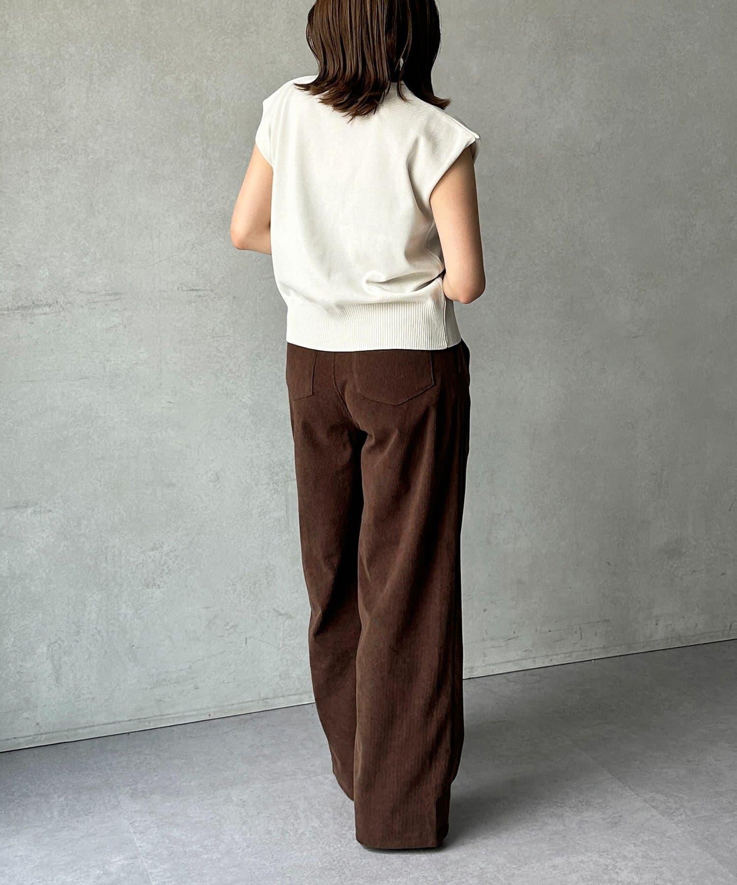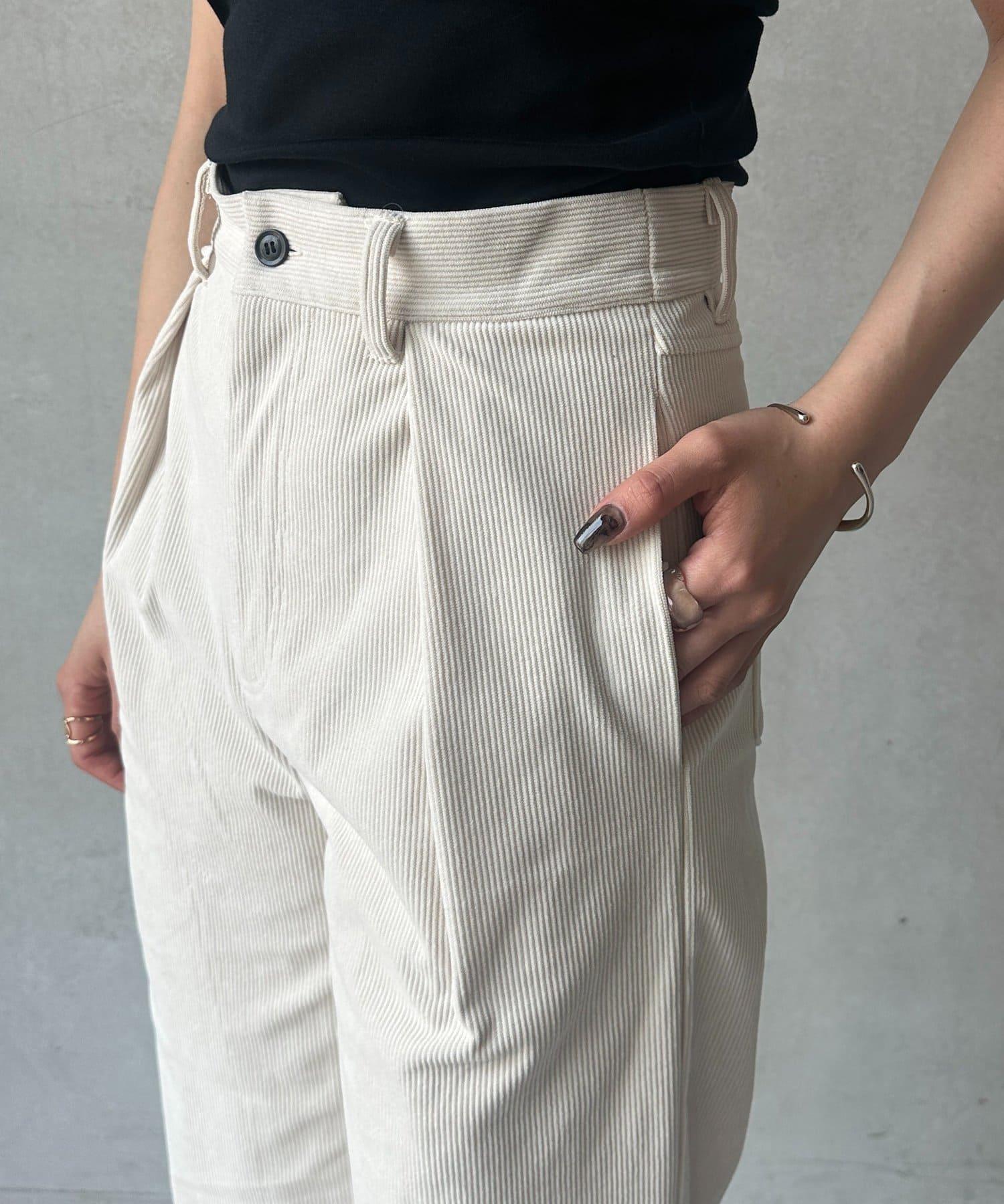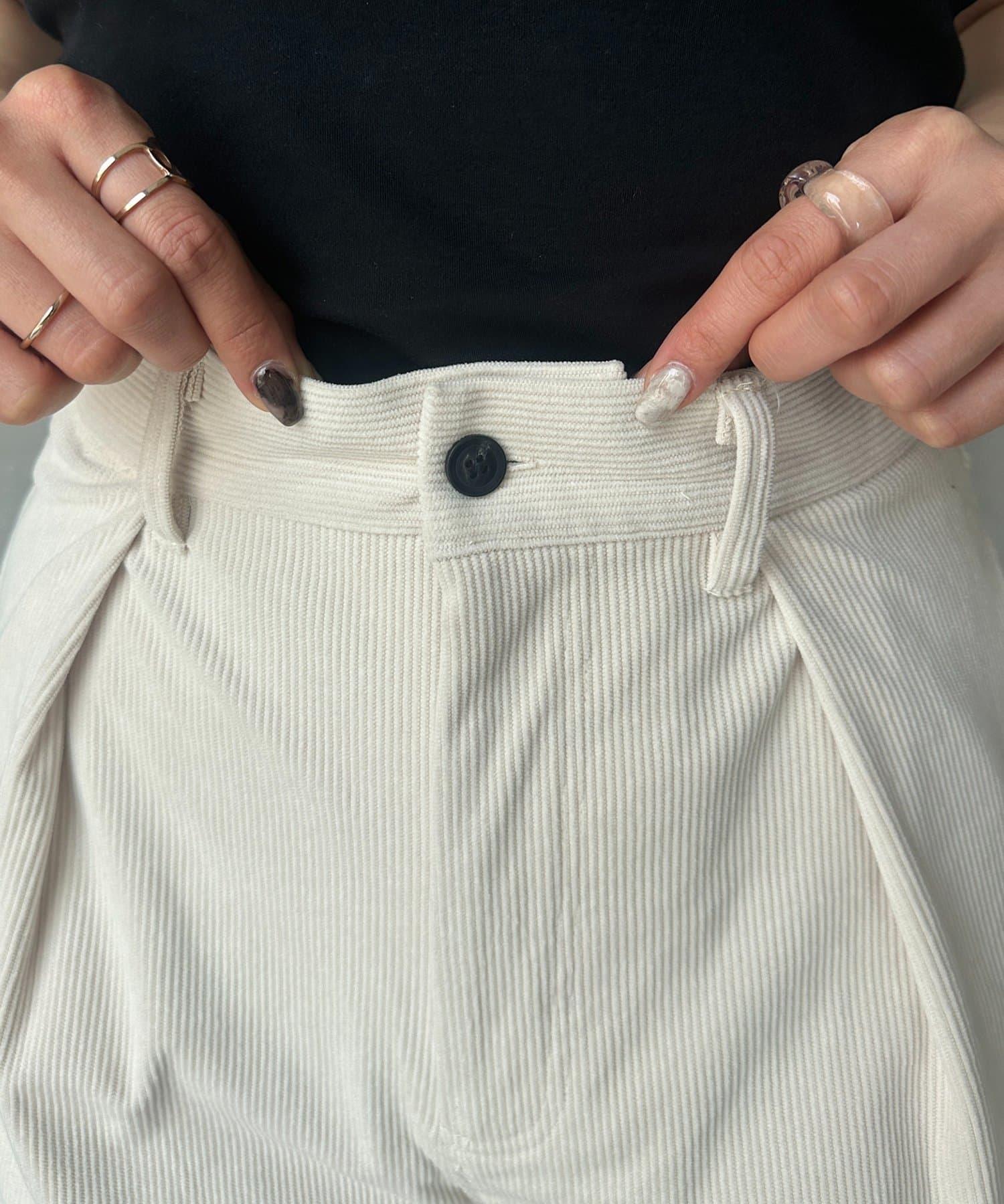燈芯絨高腰折褶褲