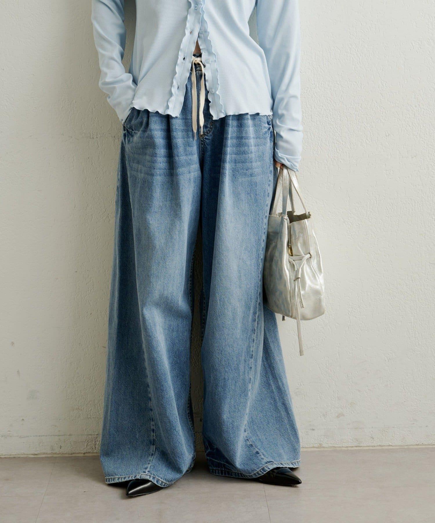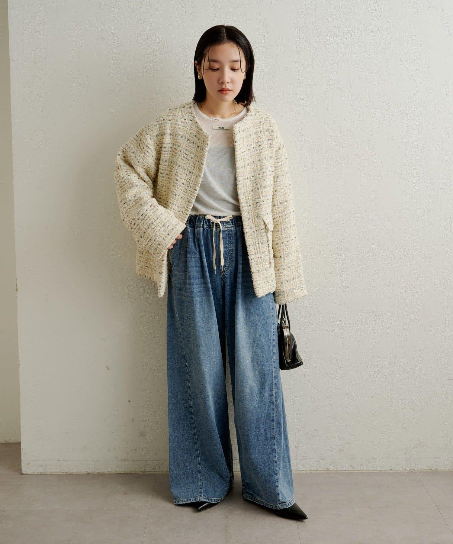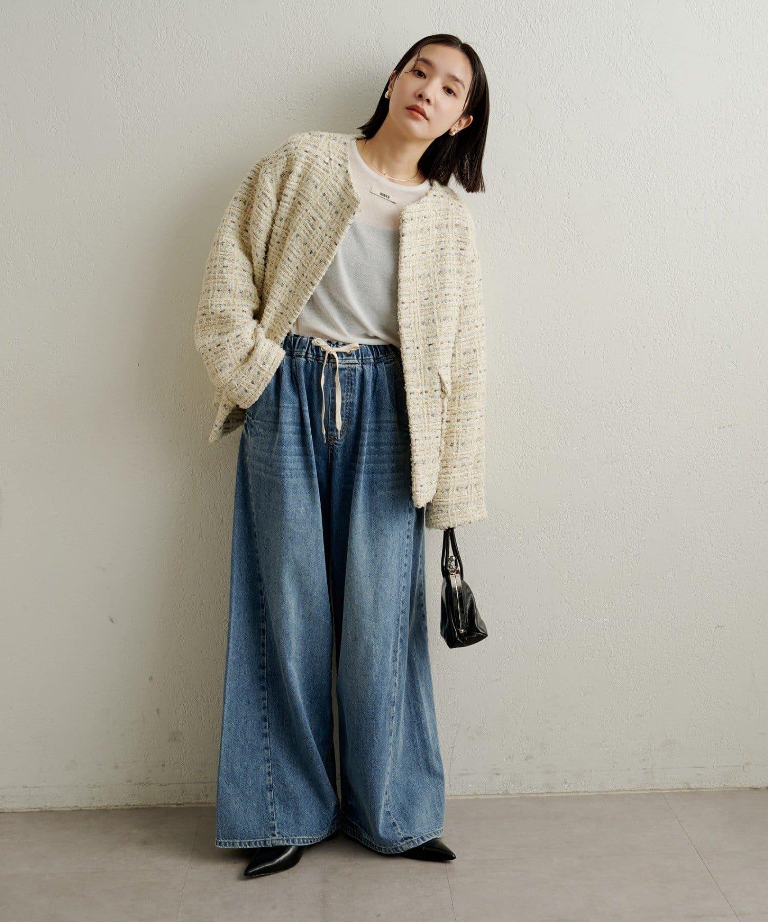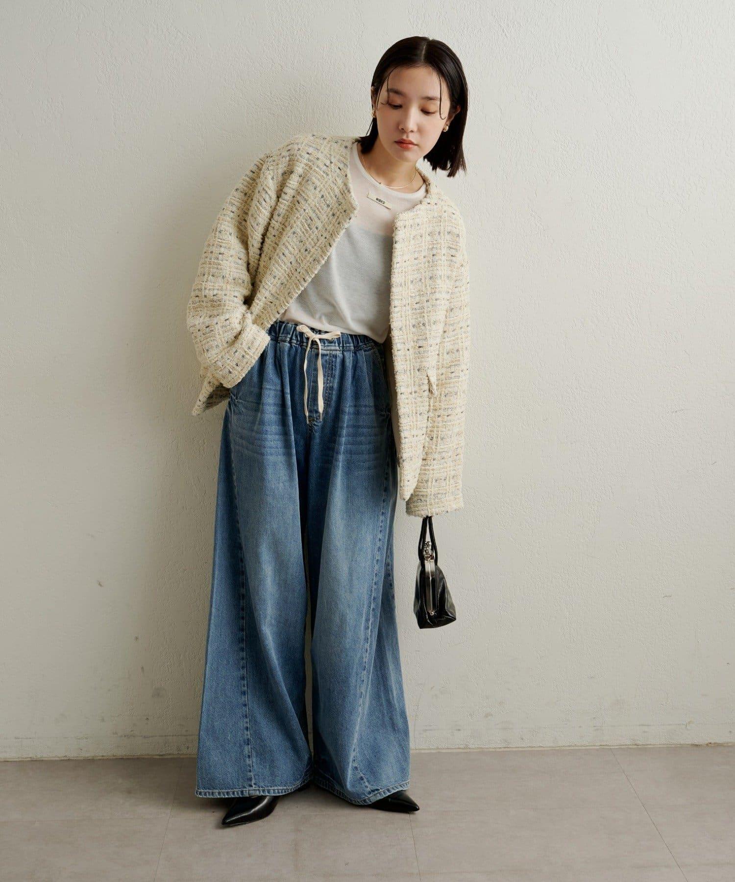牛仔褲易於穿著,但喇叭形的寬大廓形不會挑起腿部線條,具有拉長腿部線條的效果。