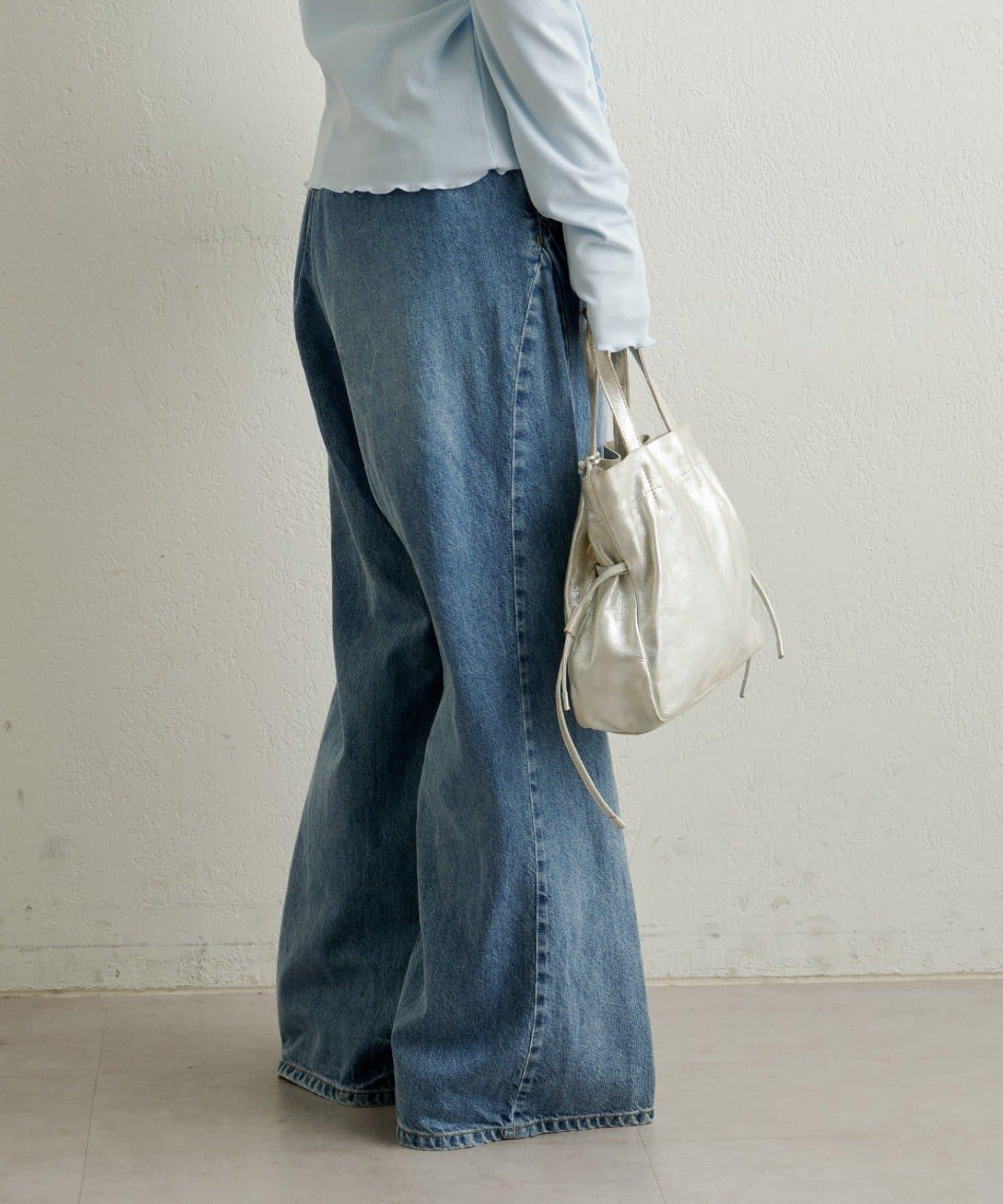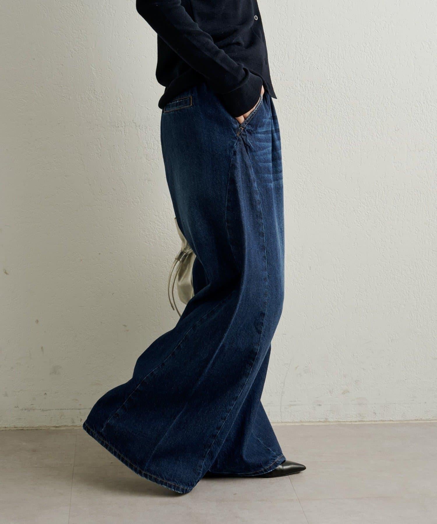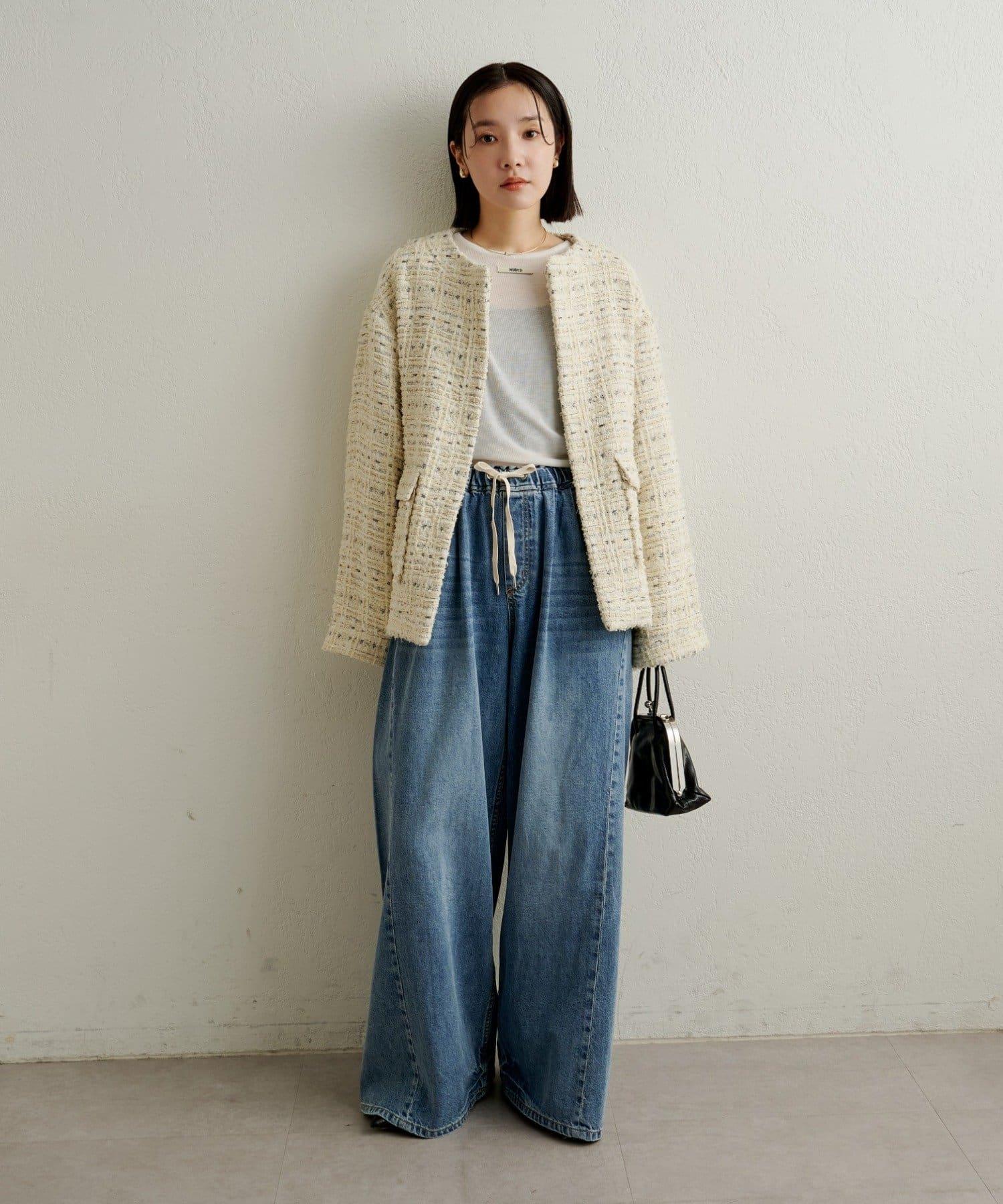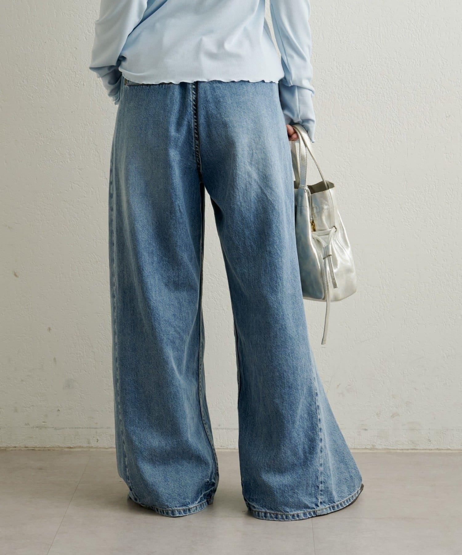 牛仔褲易於穿著,但喇叭形的寬大廓形不會挑起腿部線條,具有拉長腿部線條的效果。