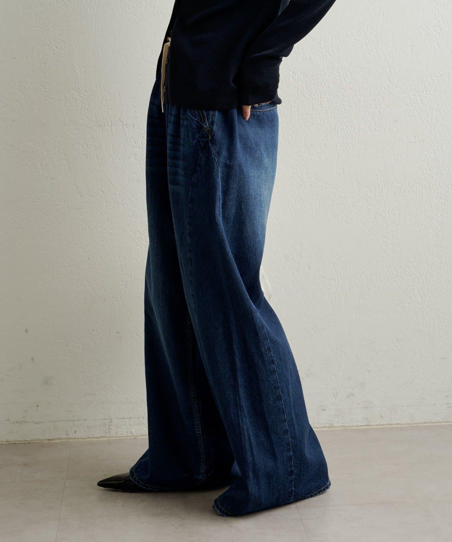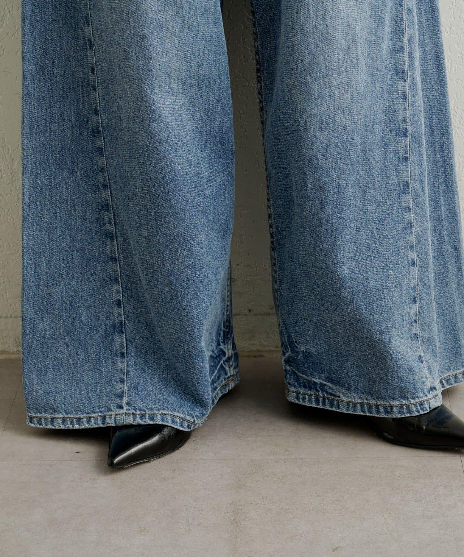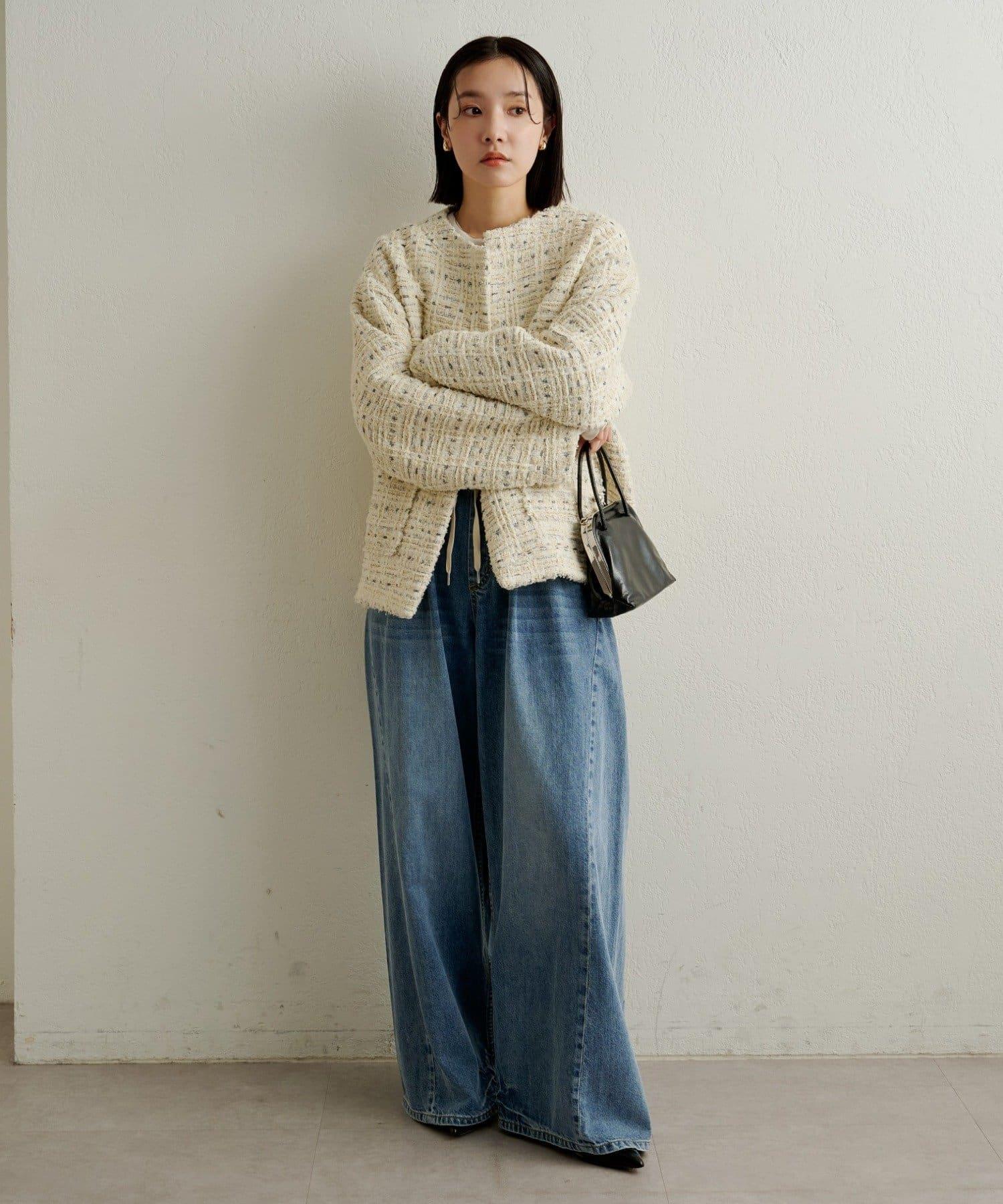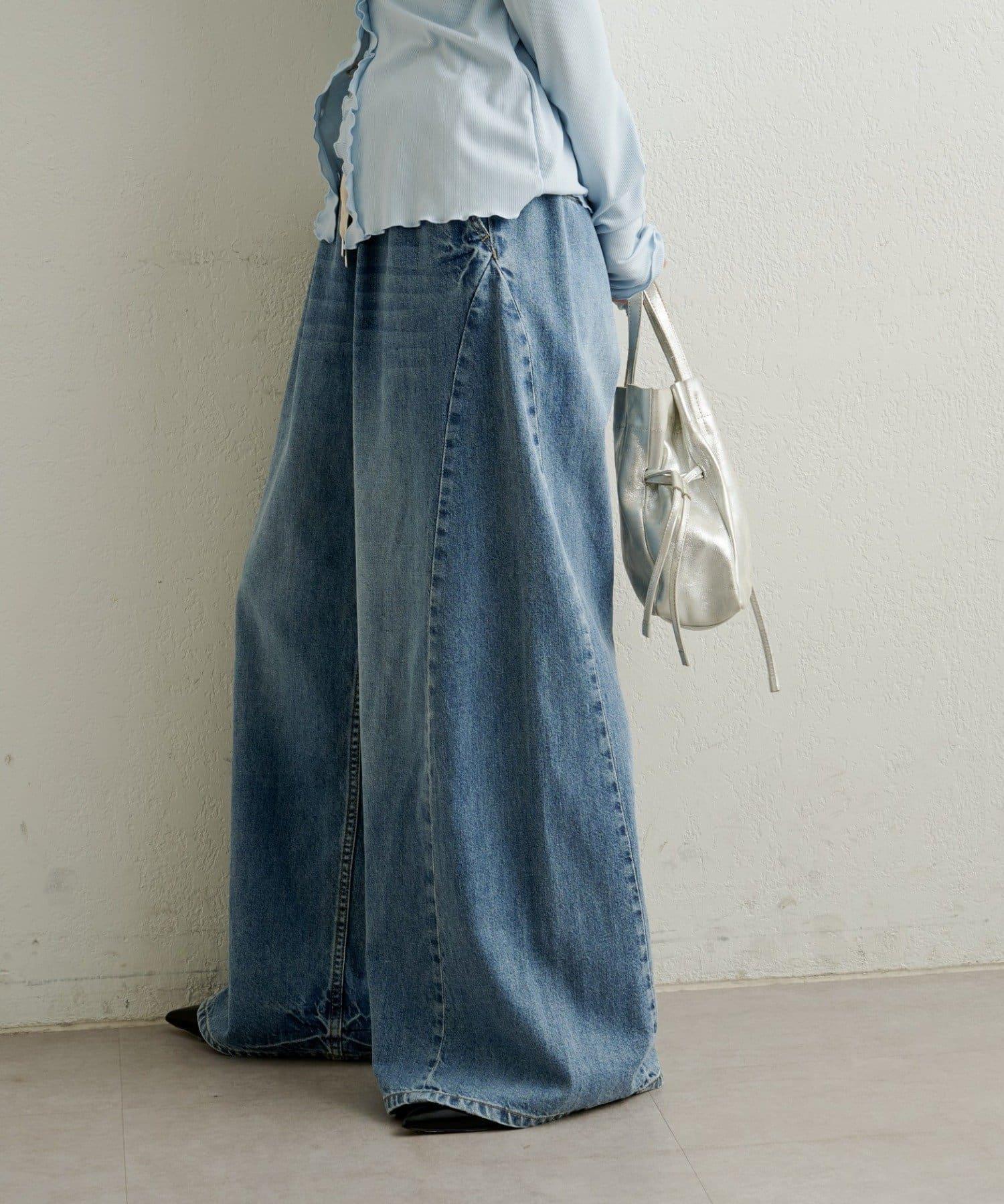 牛仔褲易於穿著,但喇叭形的寬大廓形不會挑起腿部線條,具有拉長腿部線條的效果。