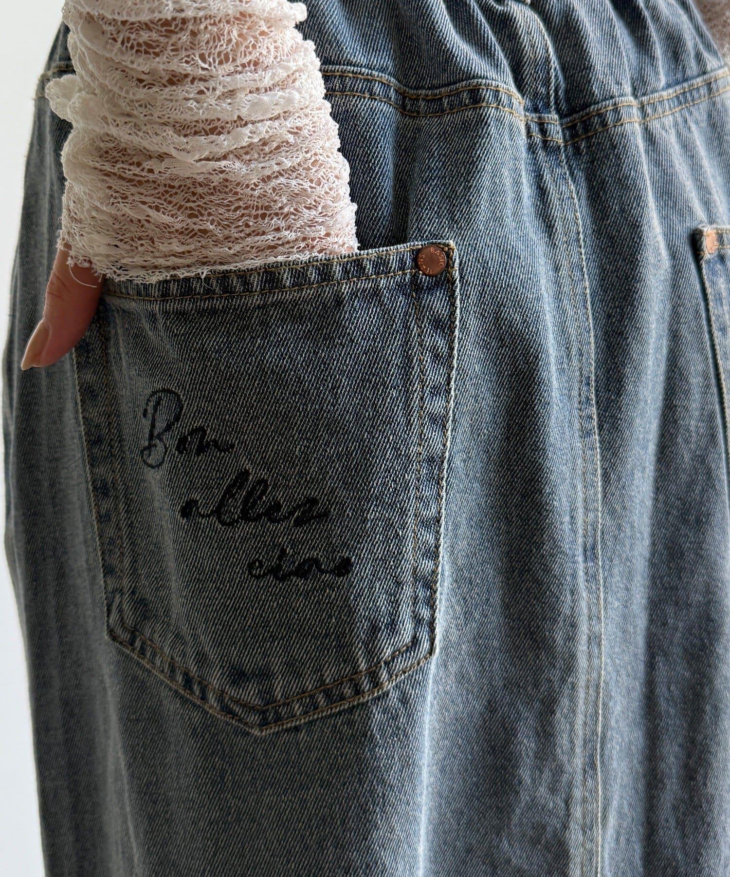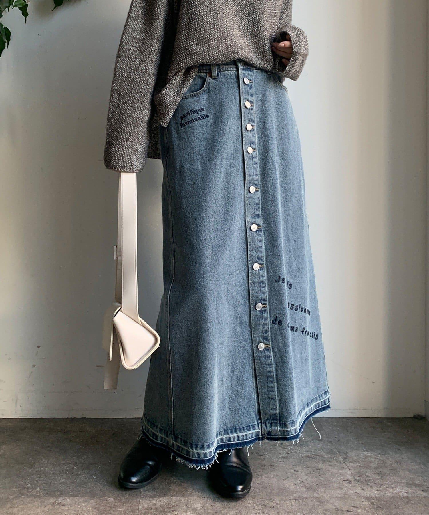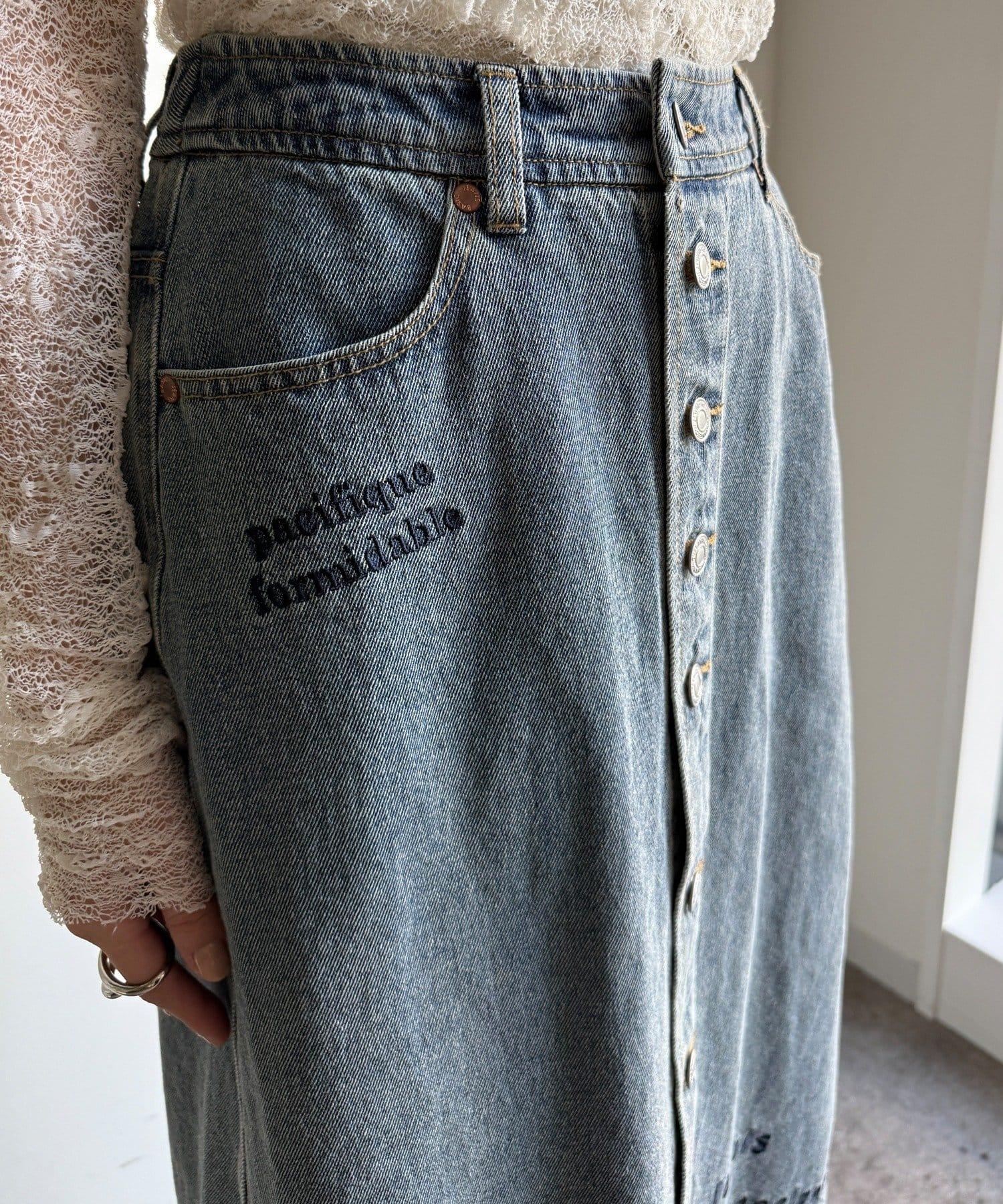 牛仔刺繡前扣半身裙