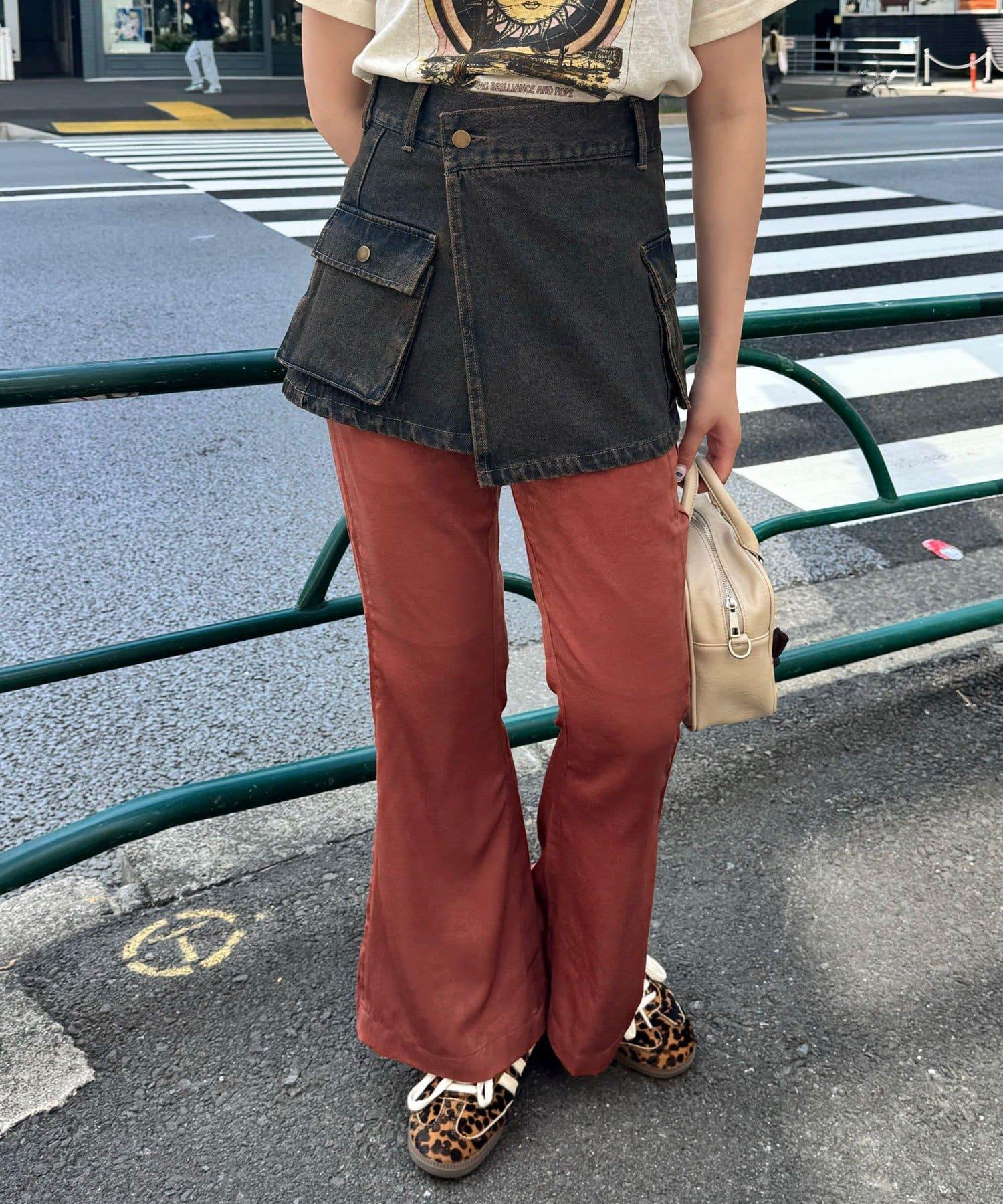 牛仔卷邊裙