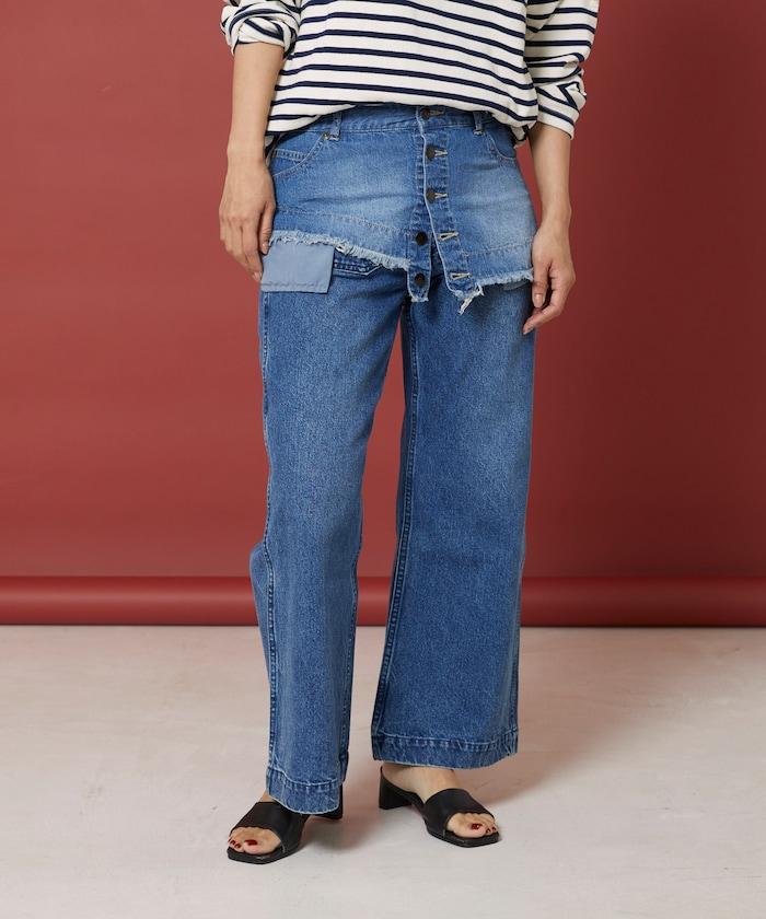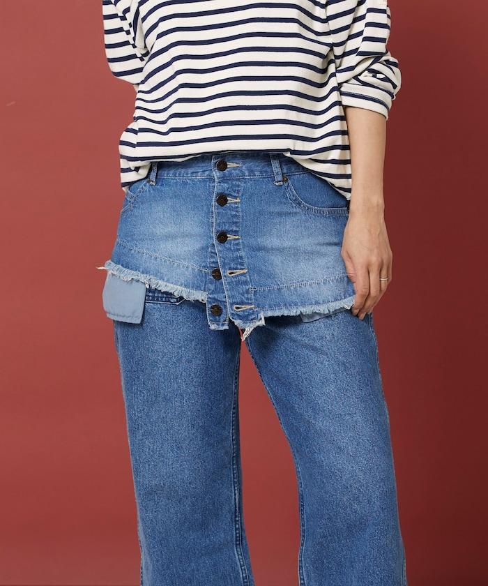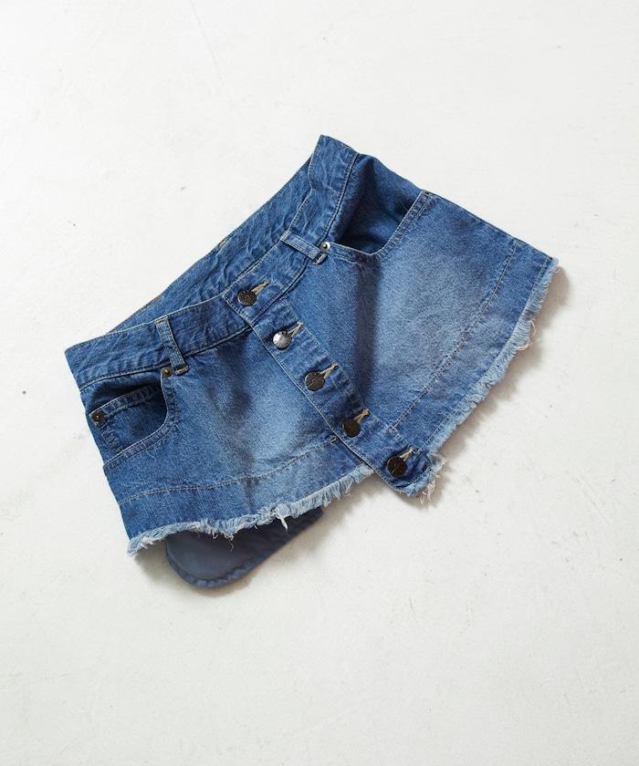 牛仔布和圖案部分可以用紐扣分開,牛仔布可以作為超短裙使用,為你的日常搭配錦上添花。