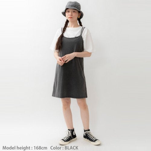 牛仔揹帶連衣裙 W型肩帶 黑色 【特價】 (CD4283)