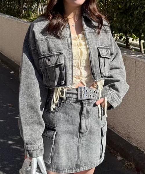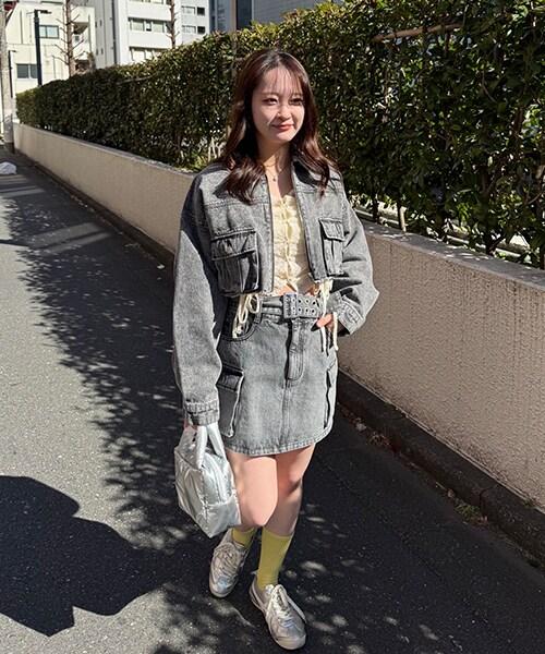 與 [3251108] Denim Wide Pants with Wrap 和 [3251110] Denim Miniskirt 同色,復古風格的混色和街頭休閒的化學灰。