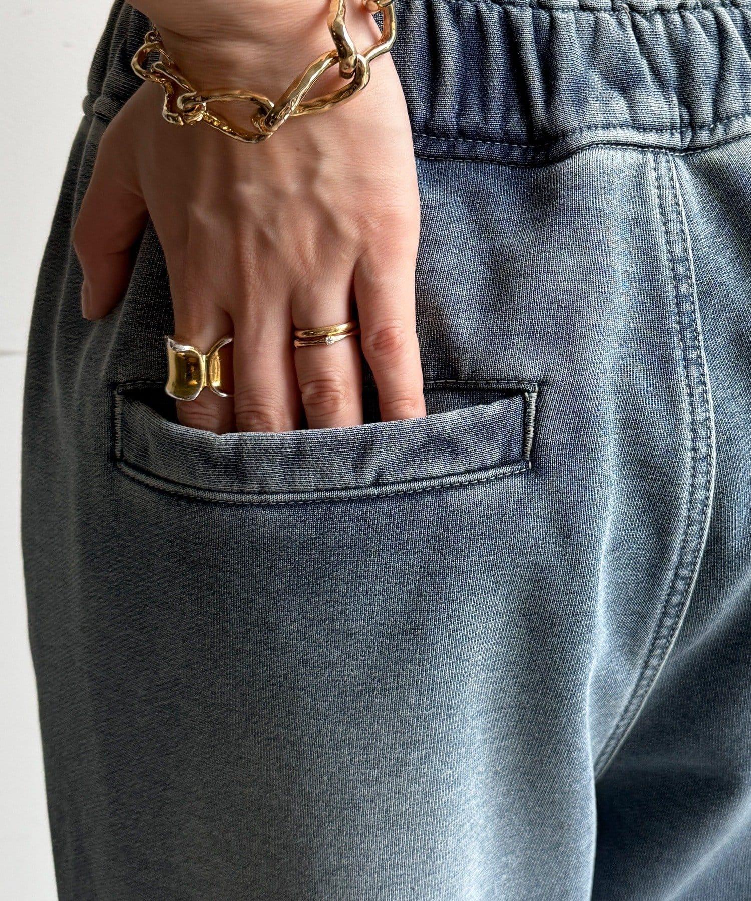 與普通牛仔褲一樣,由於採用的是運動衫材質,但經過靛藍染色處理,因此可能會褪色。請在訂購前瞭解清楚。