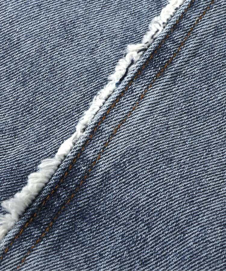 本產品經過產品洗滌、產品染色、漂白(漂白)、斷布、斷線等二次加工,使其具有舊衣的外觀。