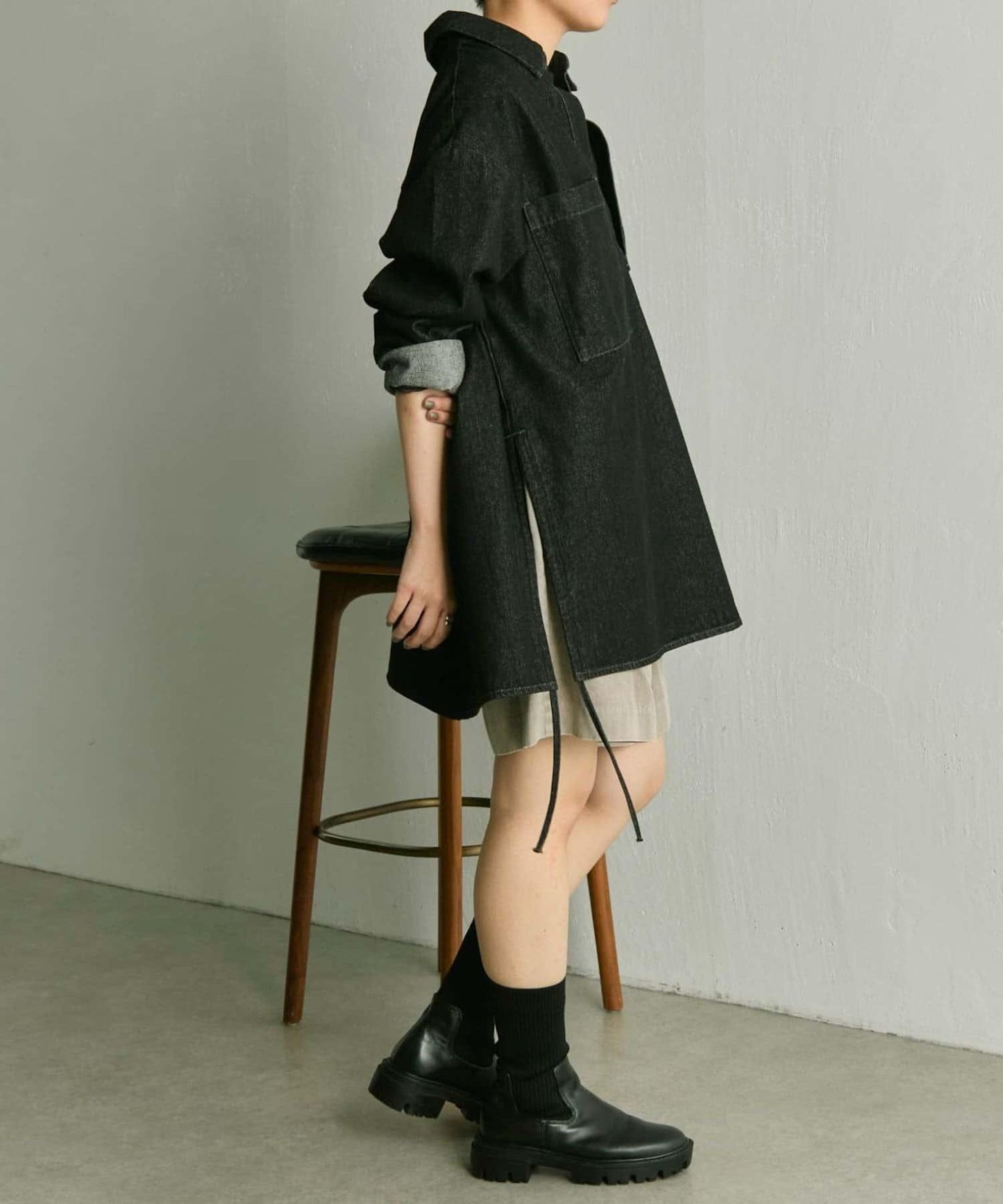 即使長度較長,側邊開衩也會給人一種寬鬆的感覺。