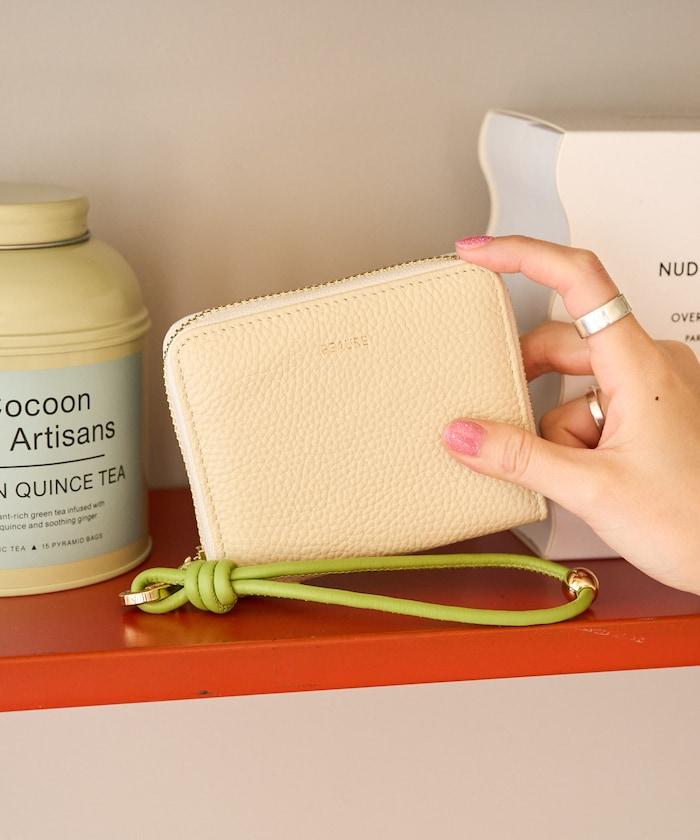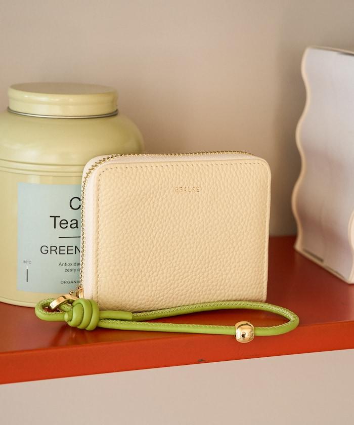 牛皮手提帶緊湊款錢包
