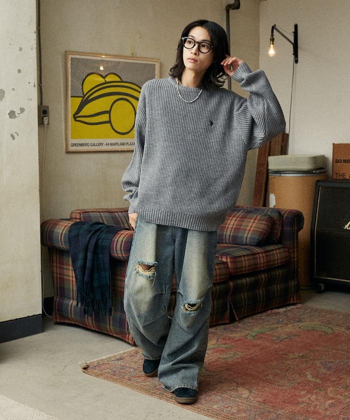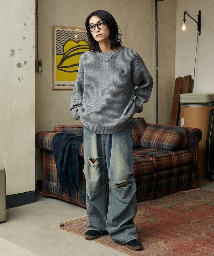 預約商品特別刺繡橫紋圓領針織衫【限量】