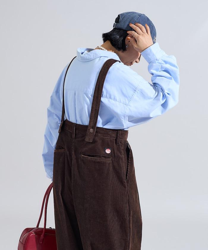 以男式工裝褲為原型,從零開始設計的帶括號長褲。