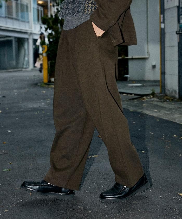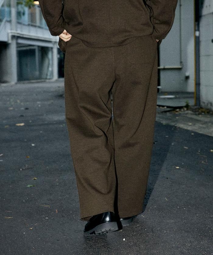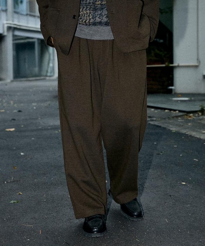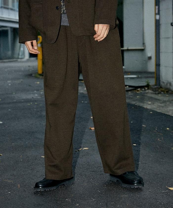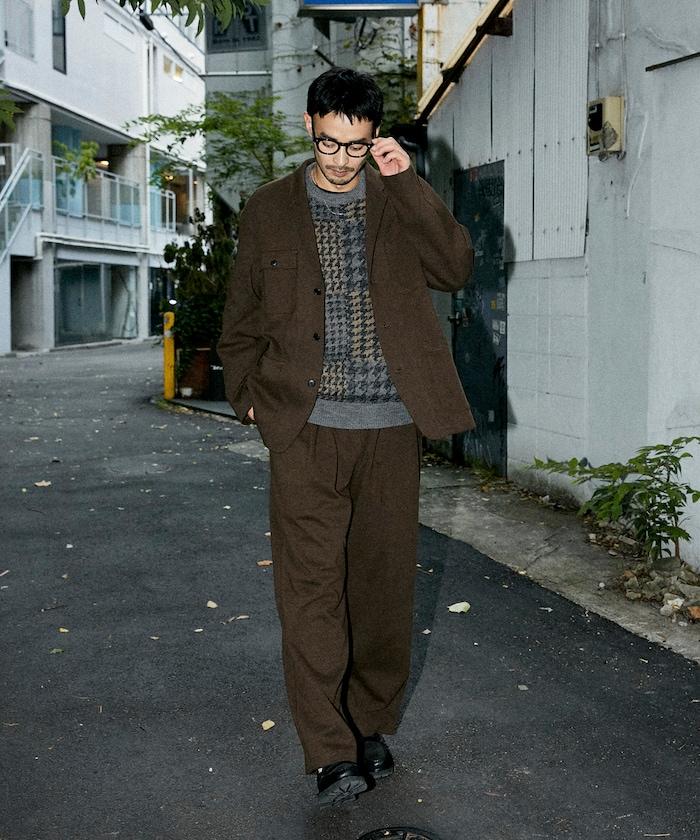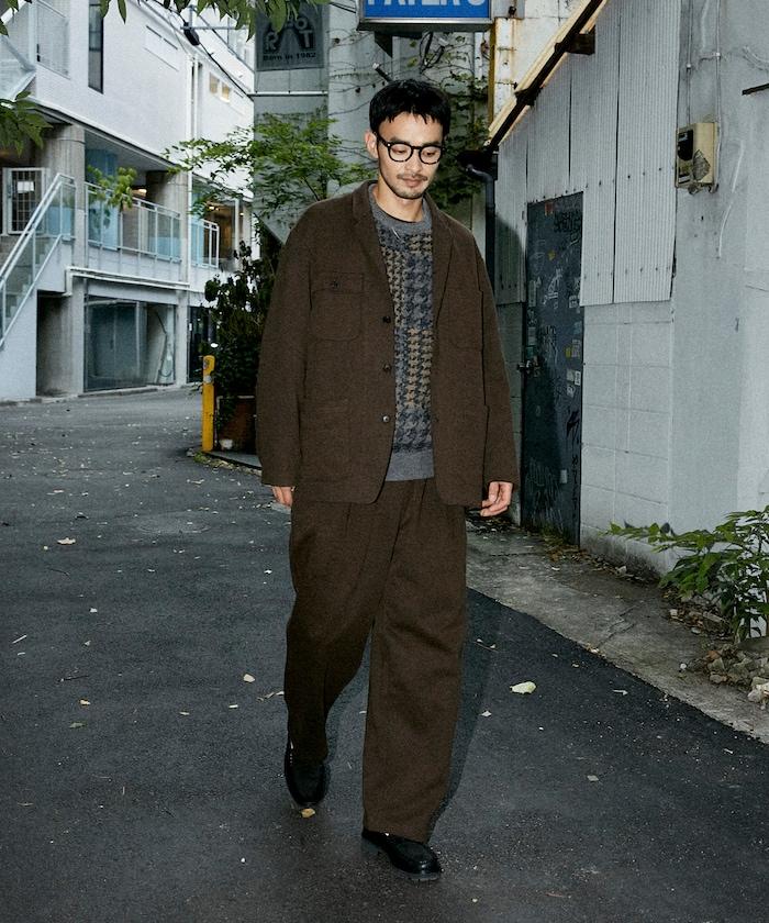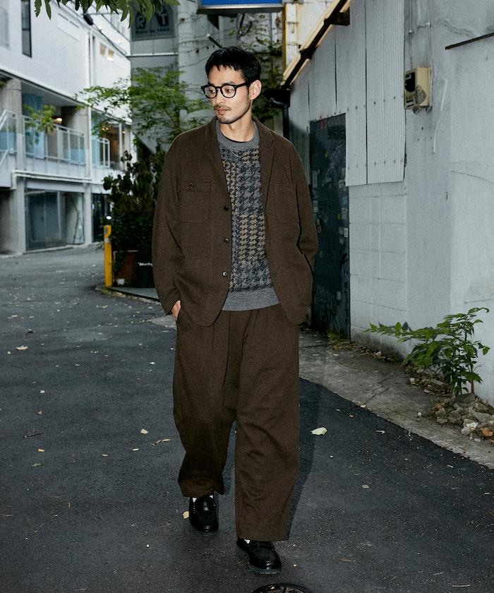 寬大的直筒褲與稍短的夾克長度相結合,雖然整體寬鬆的廓形給人一種輕鬆的感覺,但在作為套裝穿著時卻能平衡地展現出幹練的外觀。
