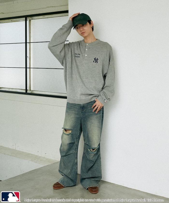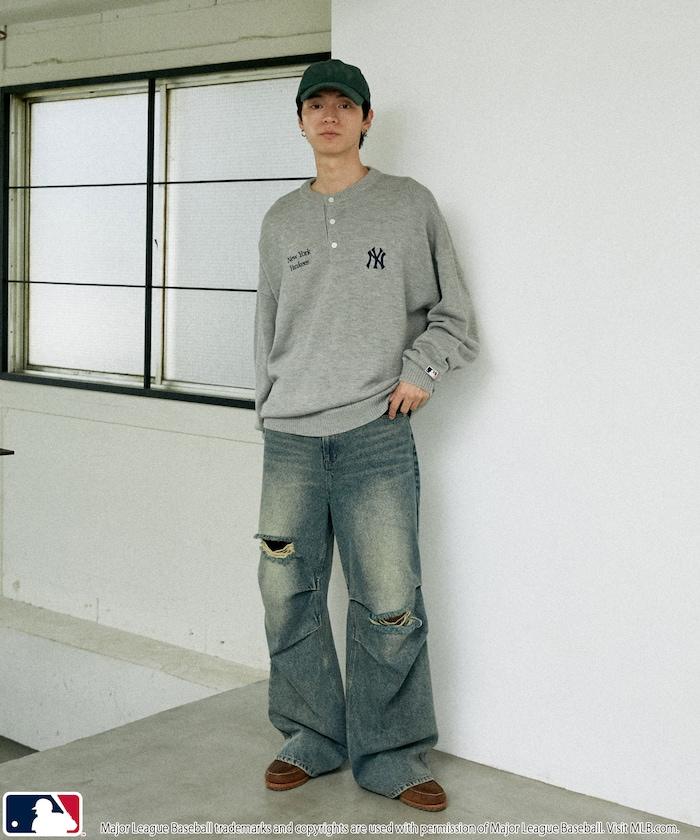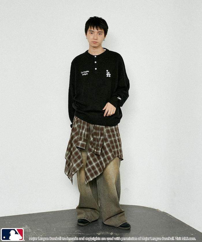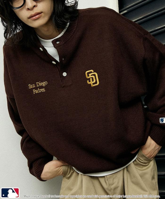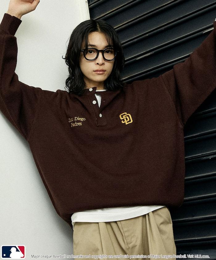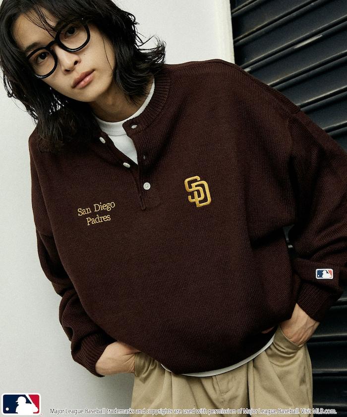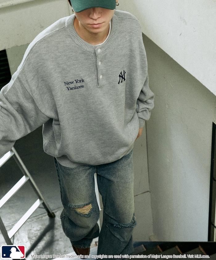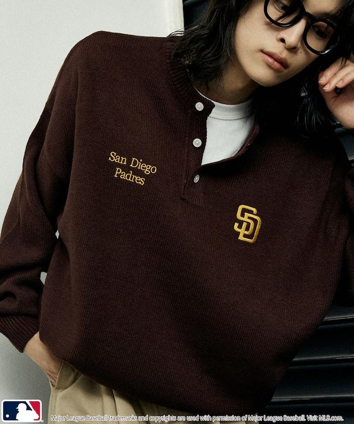 一款具有經典細節和針織面料的 henley 針織衫,外觀煥然一新,由 MLB 特別定製。