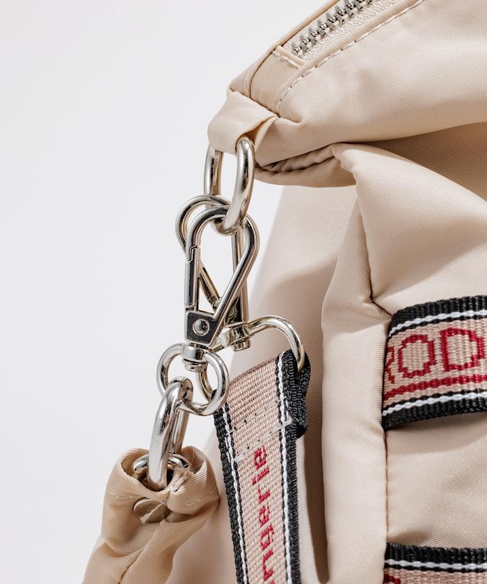 附帶的小袋可通過紐扣拆卸,可通過腰帶作為腰包使用,也可作為附帶手柄的迷你包使用,或單獨作為小袋使用。