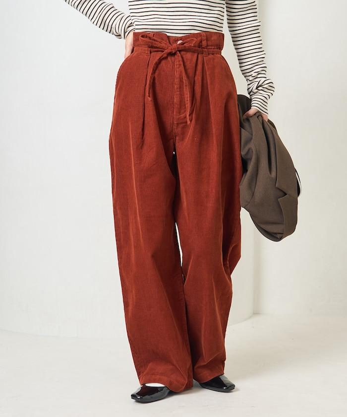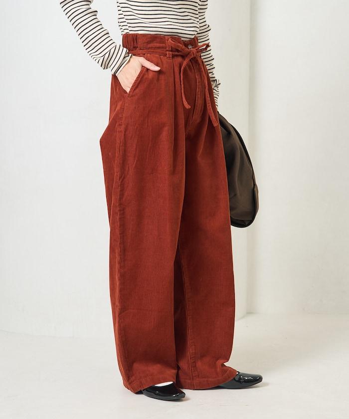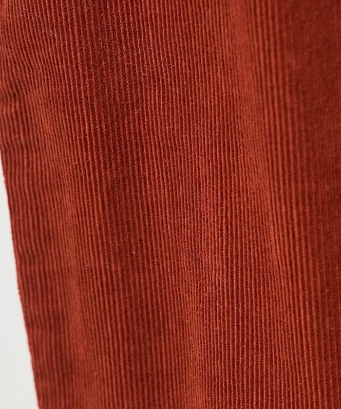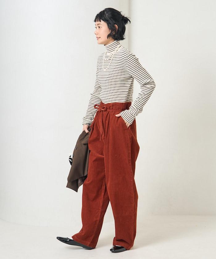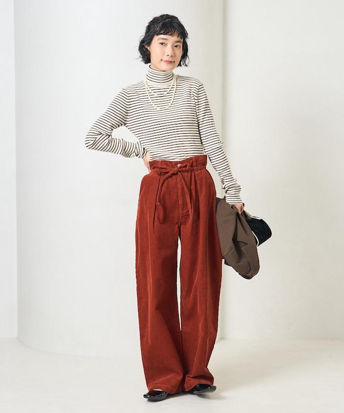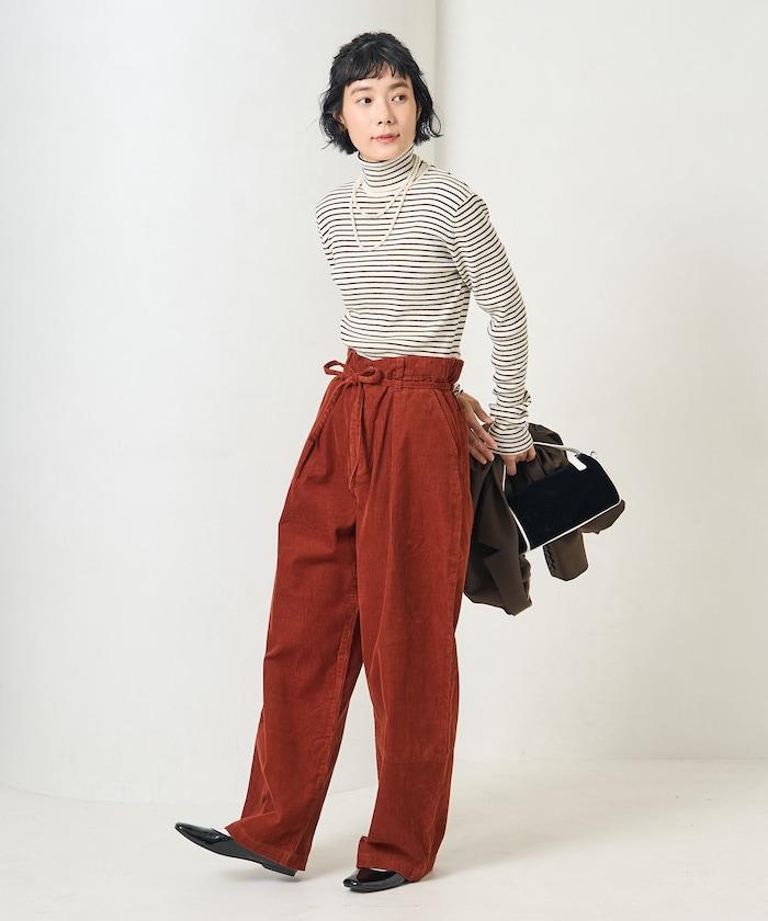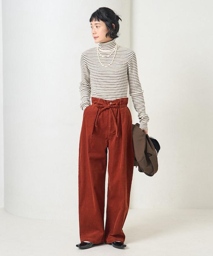 這條燈芯絨長褲的顏色和麵料增強了季節感。