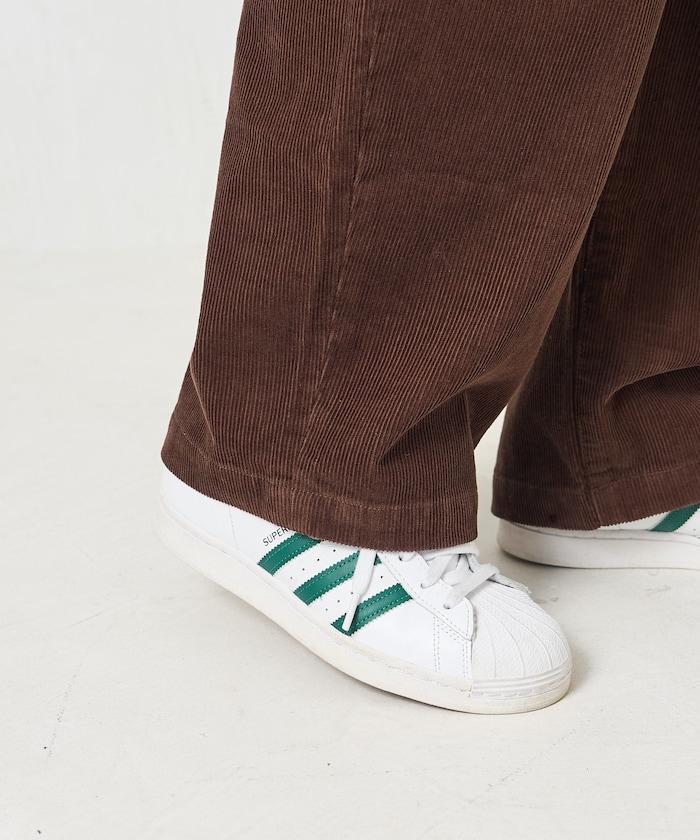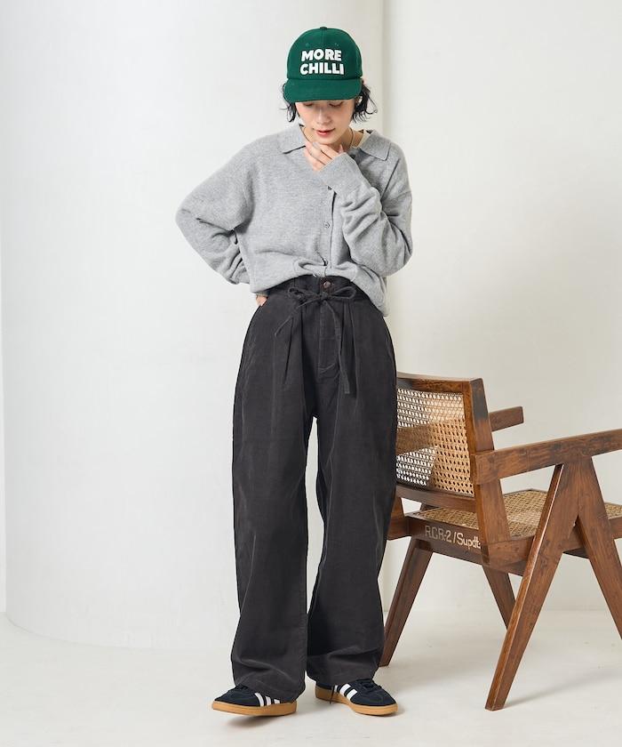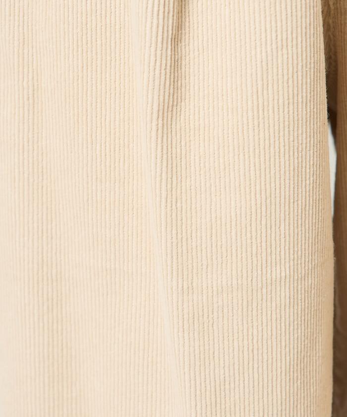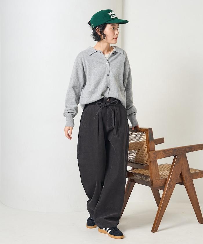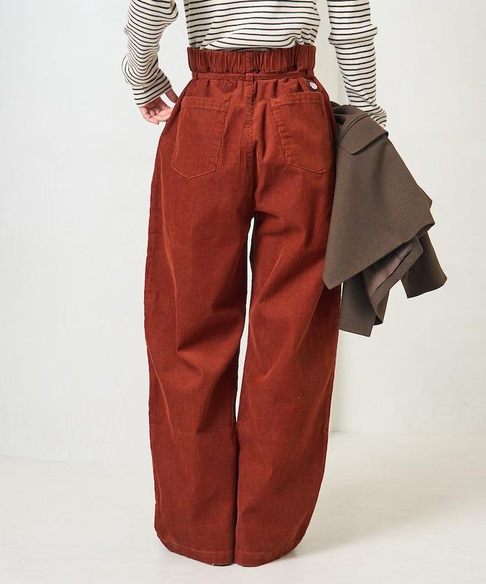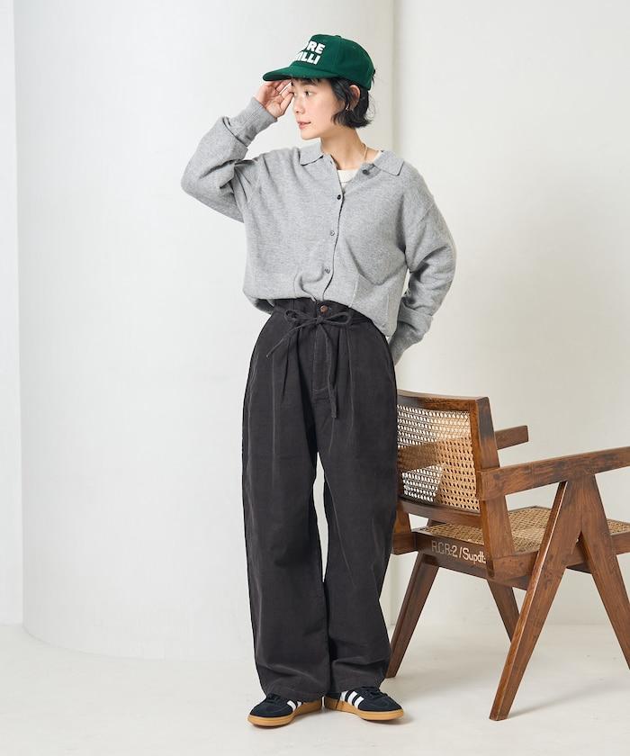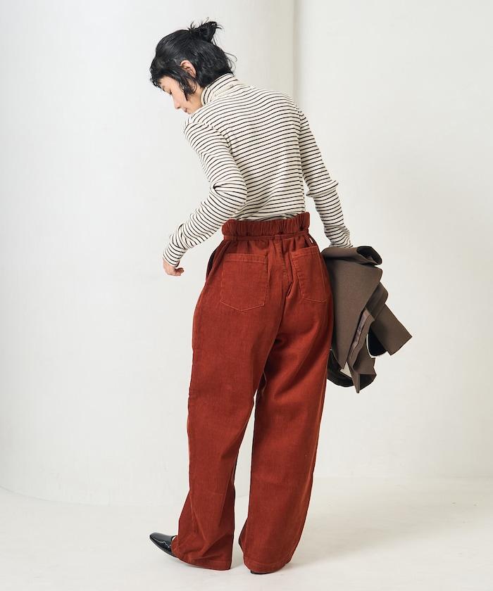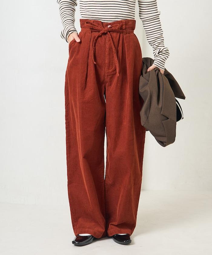 這條燈芯絨長褲的顏色和麵料增強了季節感。