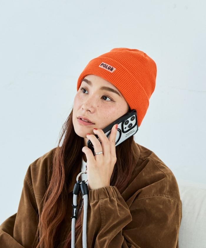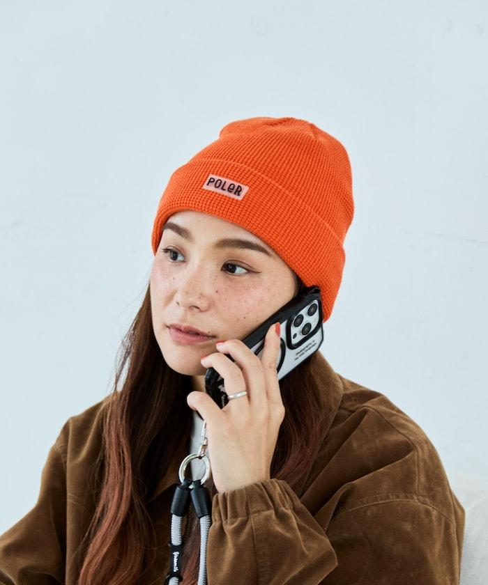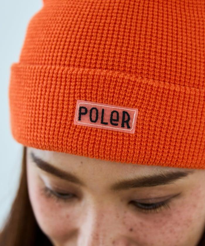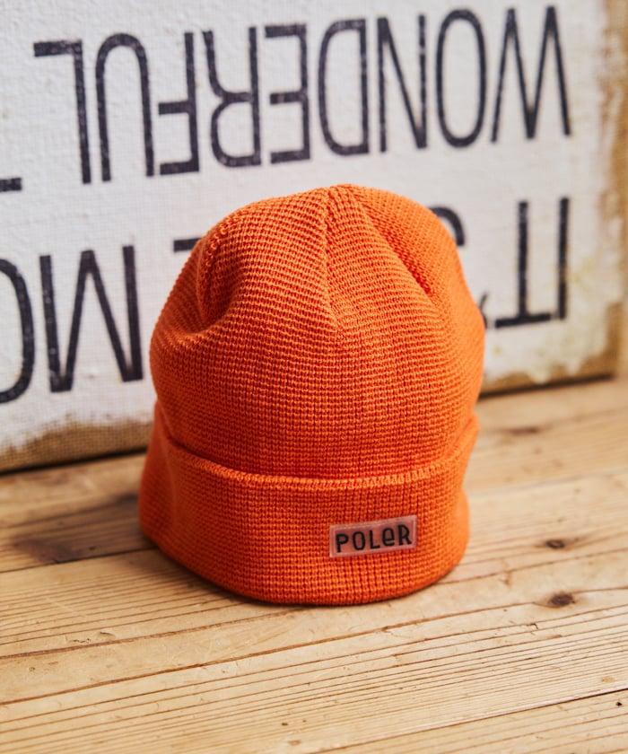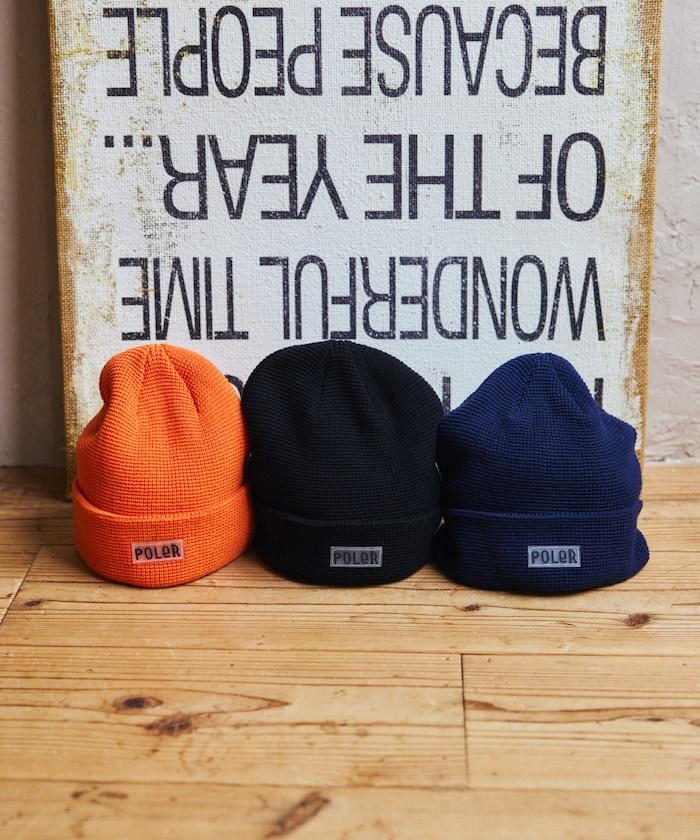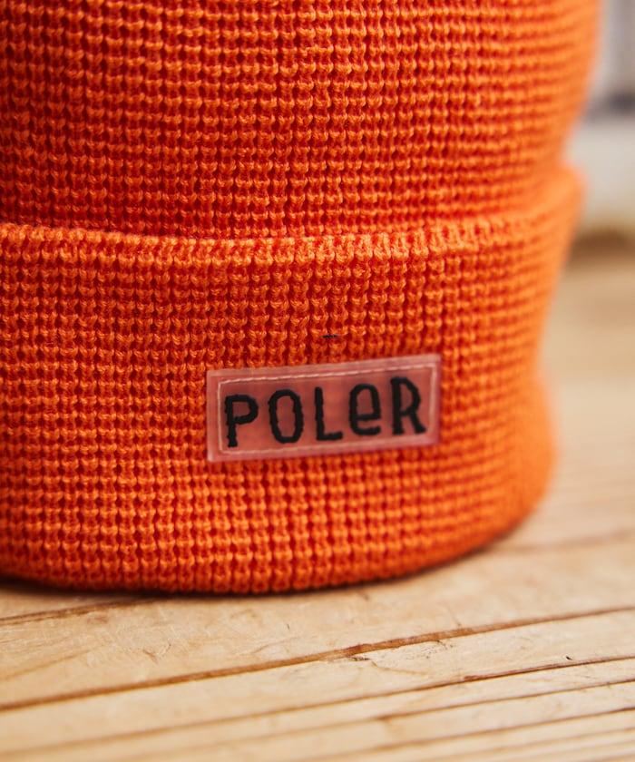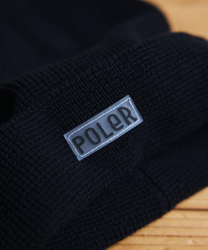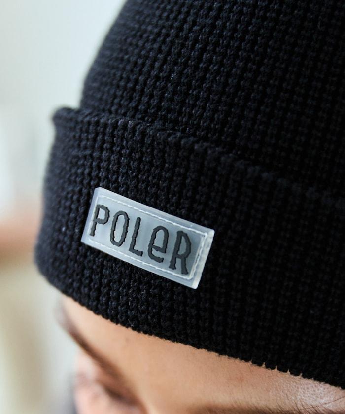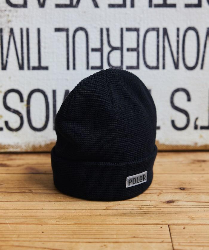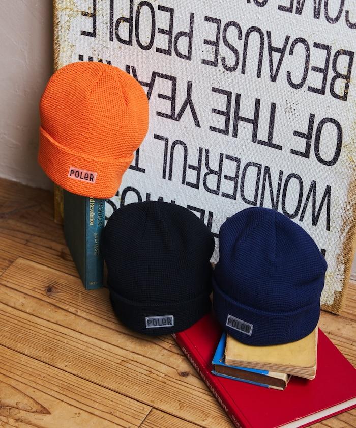 在 POLeR 的標準針織帽 "WORKERMAN BEANIE "上印有立體橡膠標誌的特別定製款。