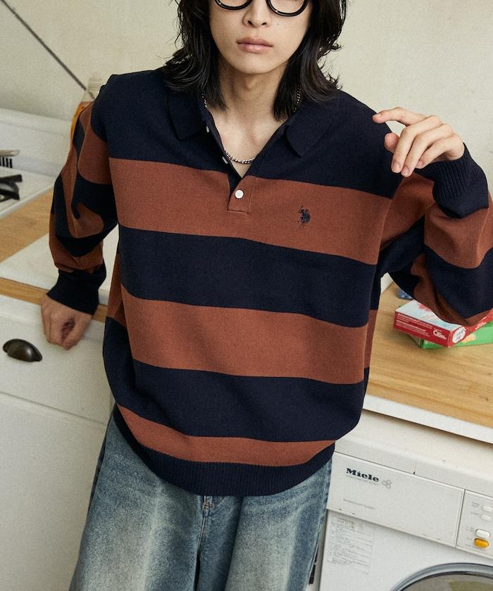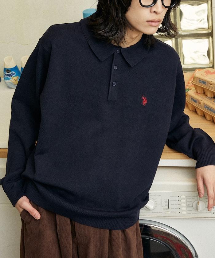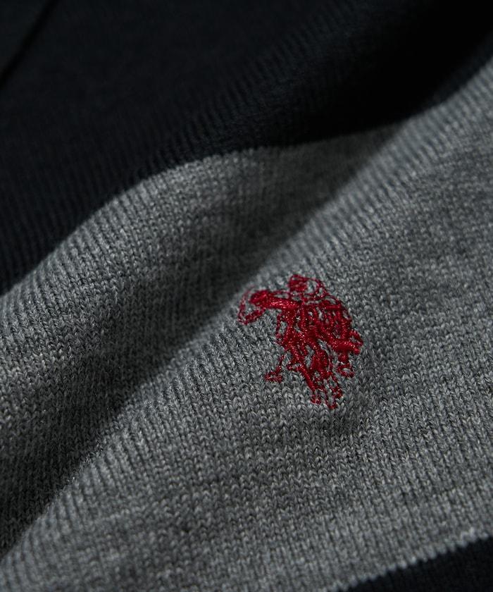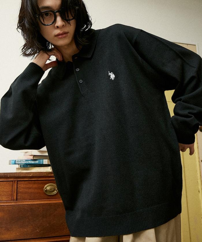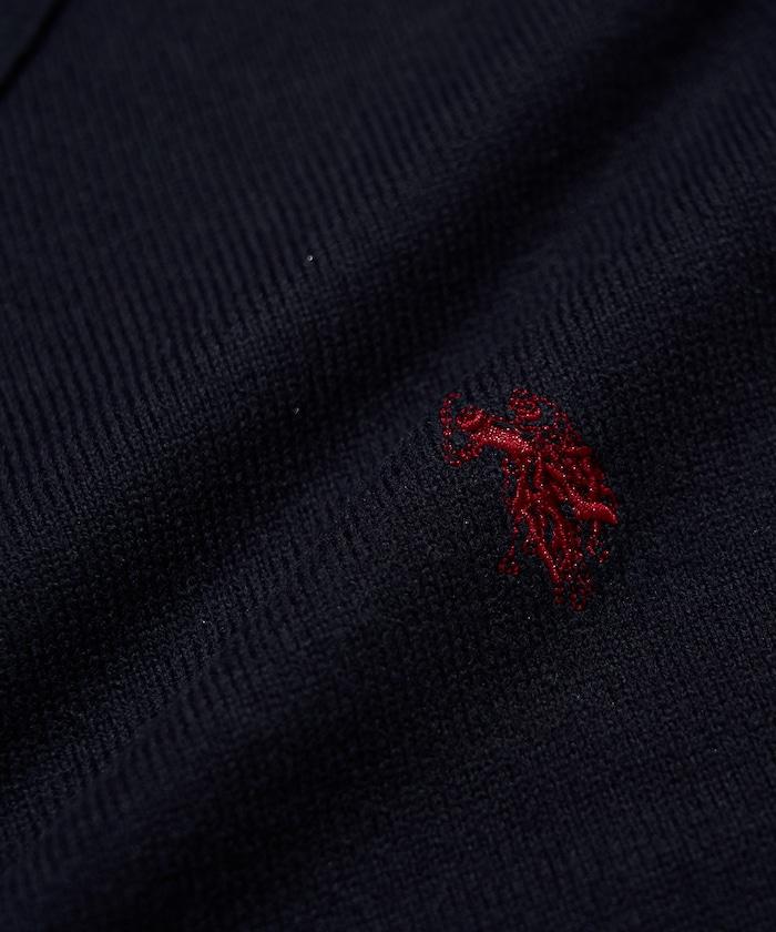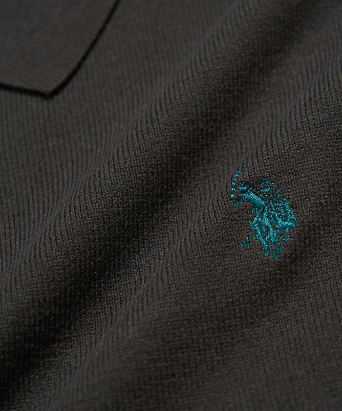 繡有 U.S. POLO ASSN. 品牌標誌的馬球襯衫設計針織衫。