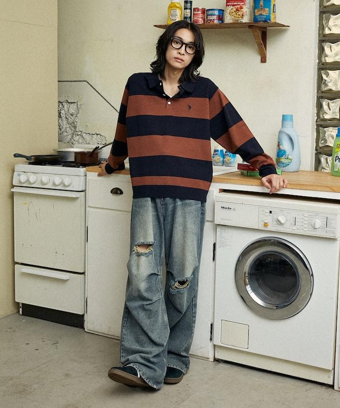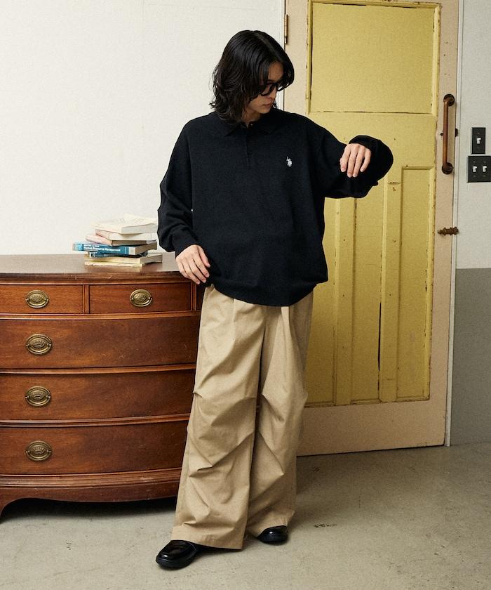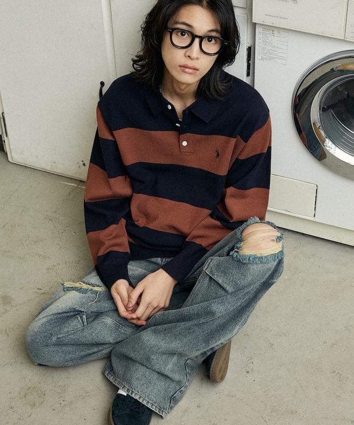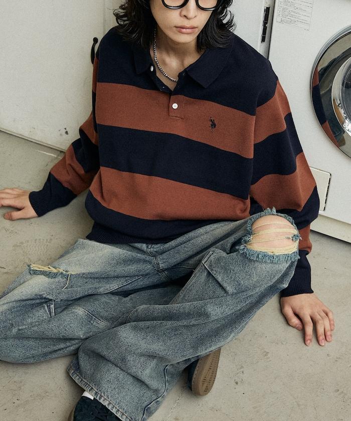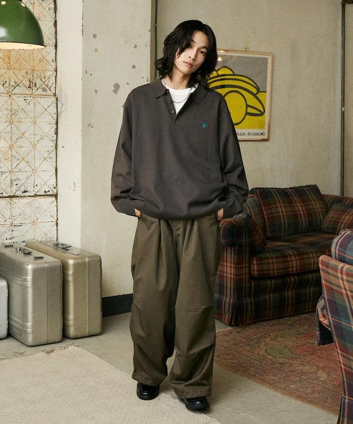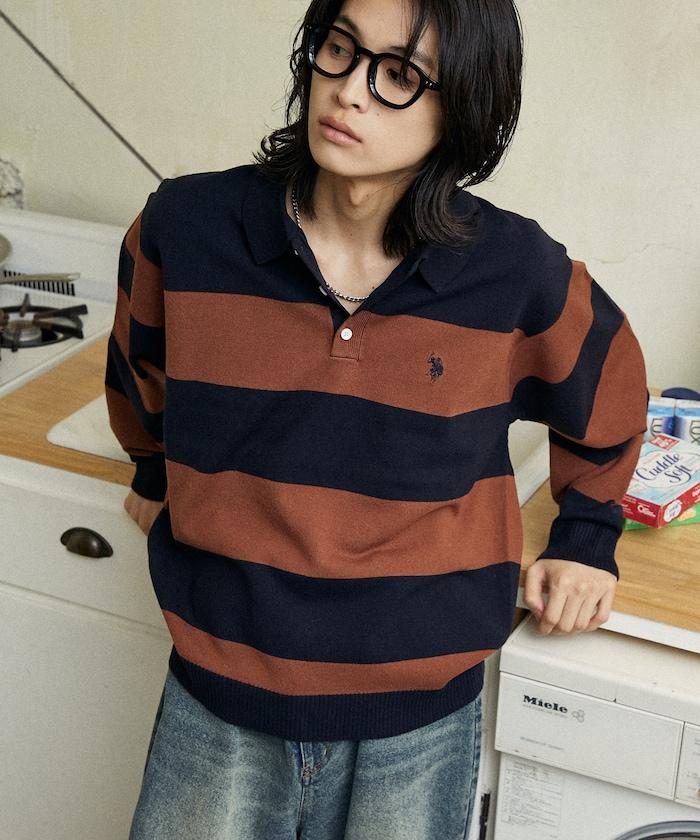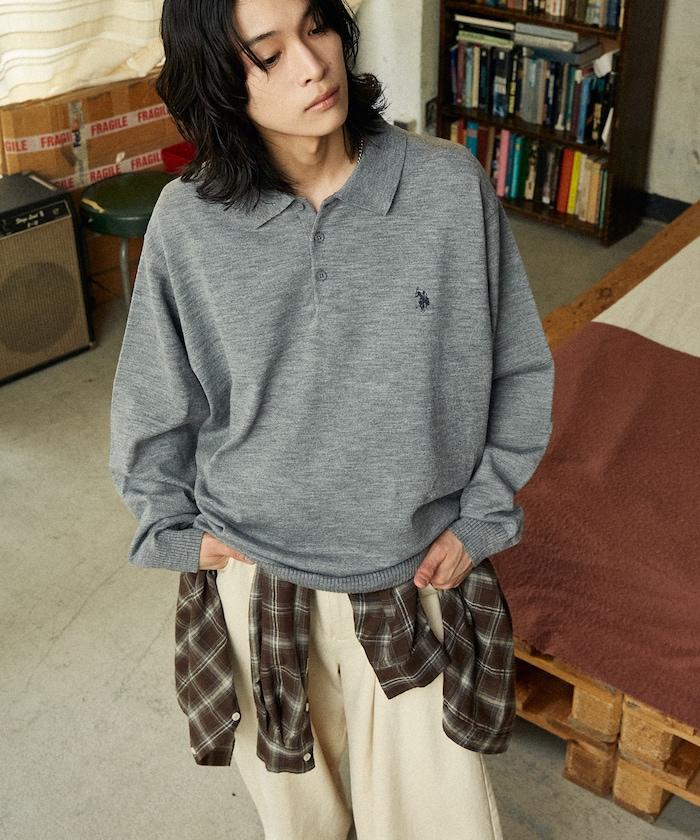 繡有 U.S. POLO ASSN. 品牌標誌的馬球襯衫設計針織衫。