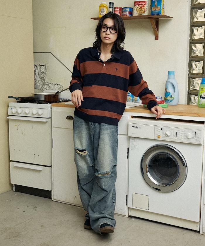 此外,還建議內搭一件 T 恤或襯衫,並從領口處露出。