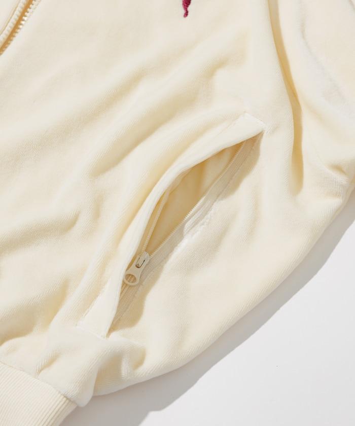特別定製的品牌標誌性 "T7 運動夾克",採用天鵝絨面料。