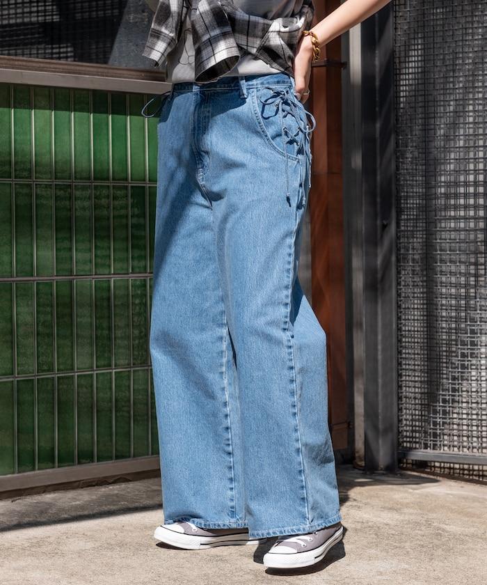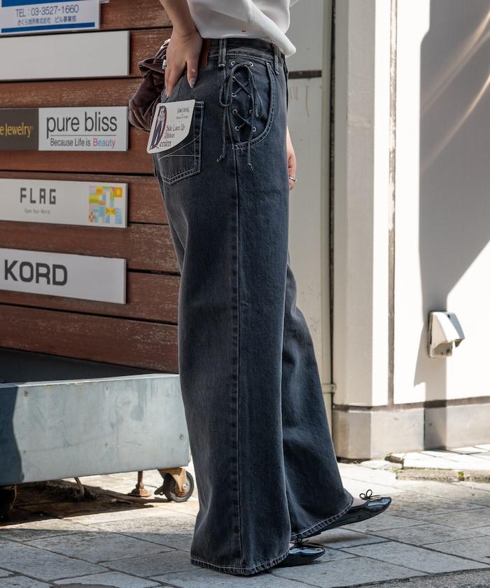 聯名重側邊蕾絲繫帶蝴蝶結牛仔褲