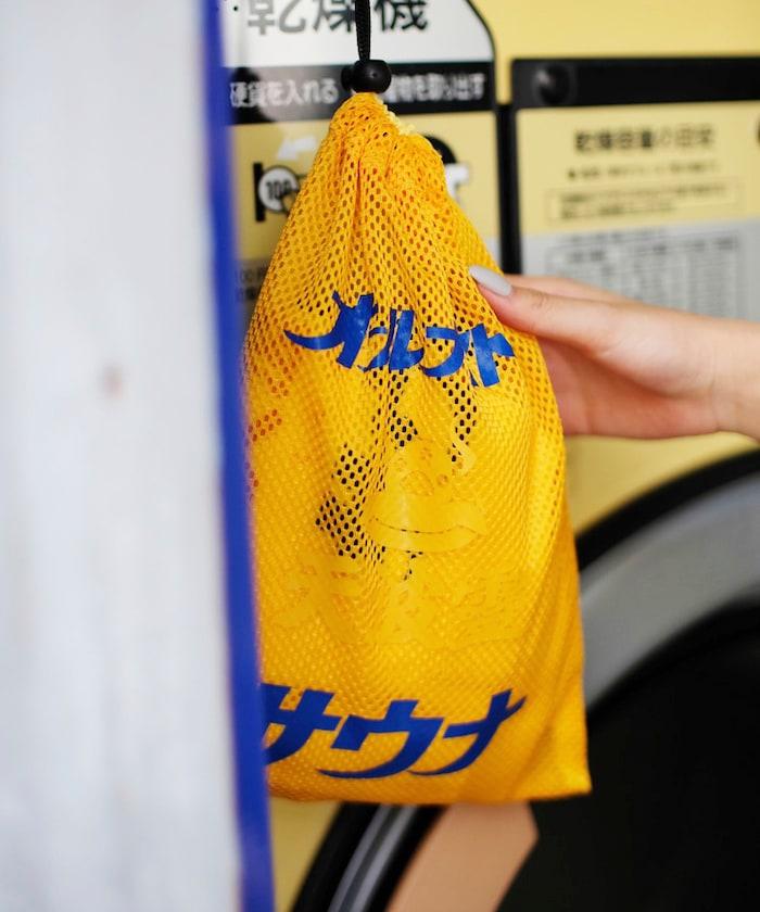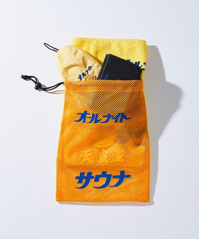 一套四件:尼龍袋、毛巾、桑拿帽和墊子。