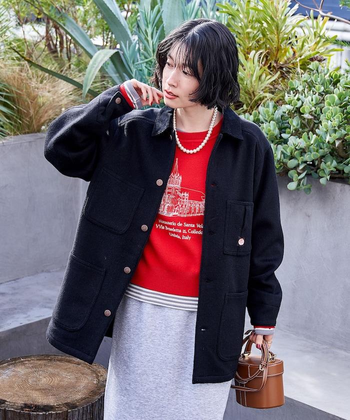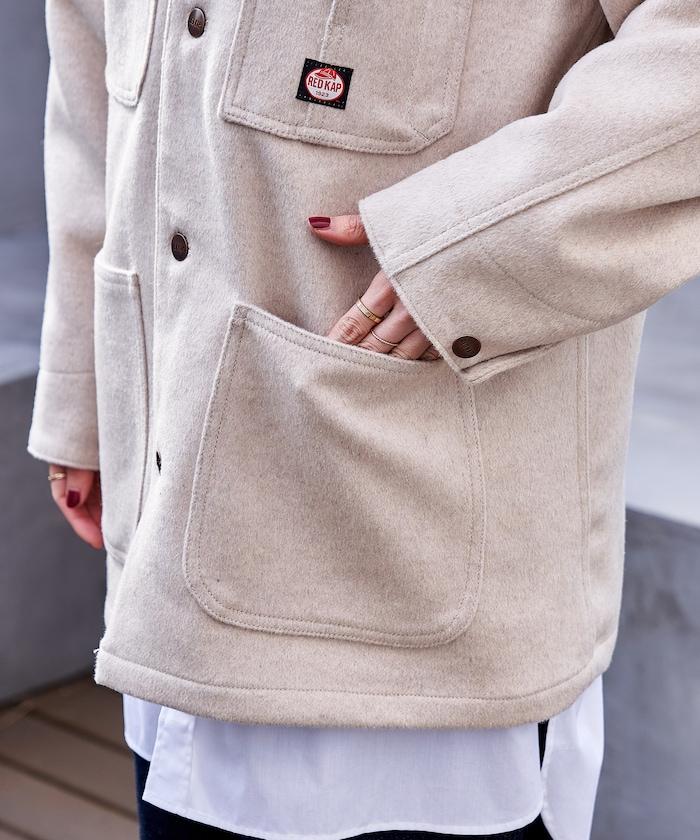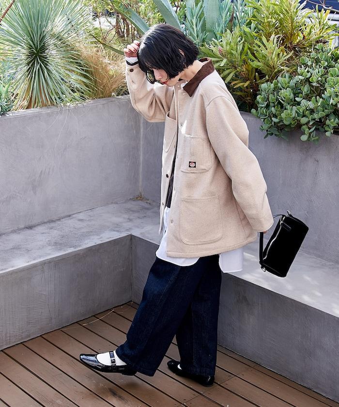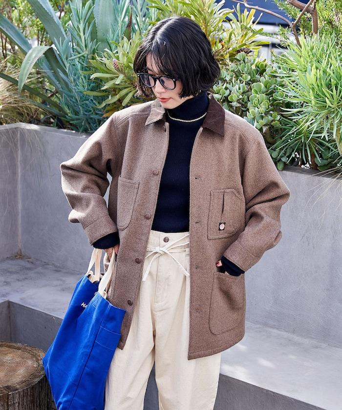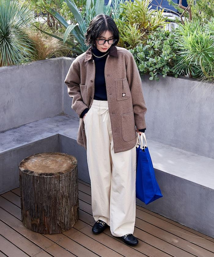 充滿工作氣息的羊毛外套。