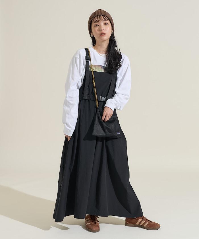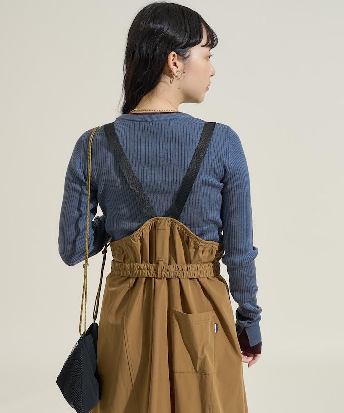 使用 THOUSAND MILE 的高功能性原創材料,從零開始設計的吊帶連身裙。
