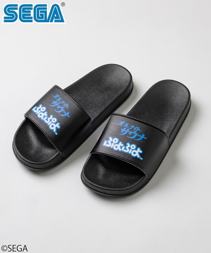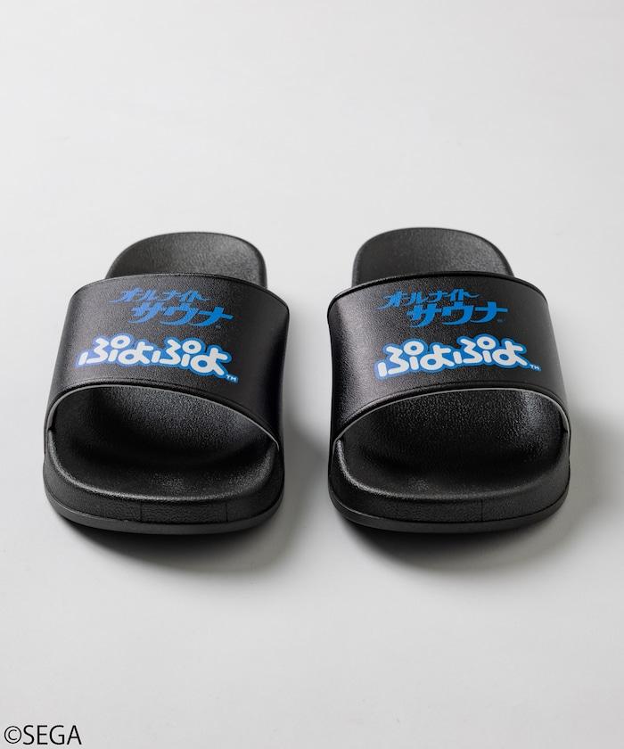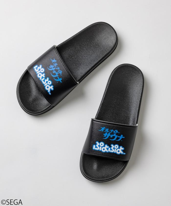 涼鞋上印有 SAUVENIR 的標誌性產品 "All Night Sauna "和 "Puyopuyo "標識。