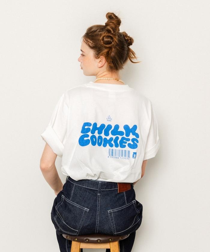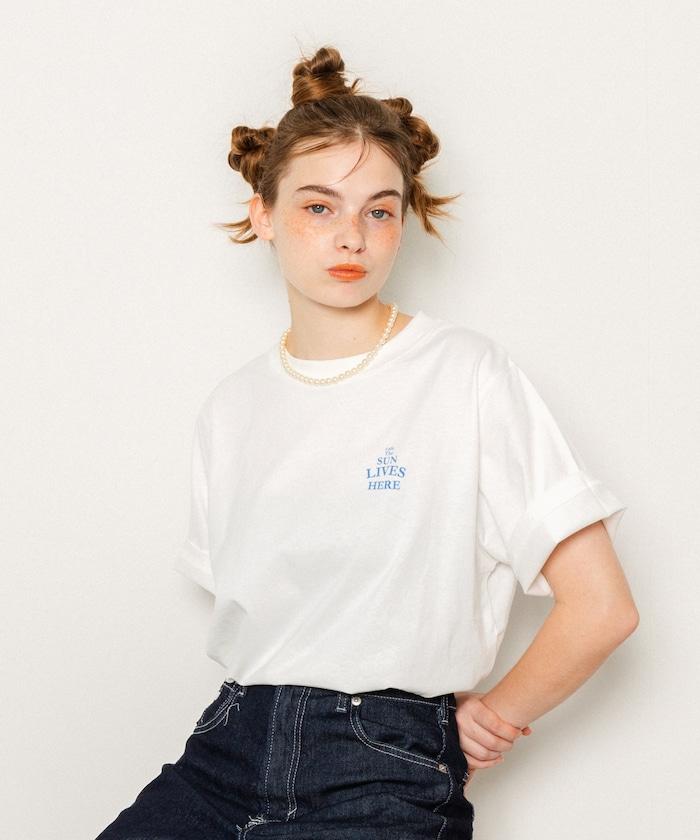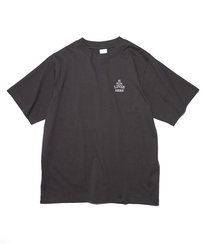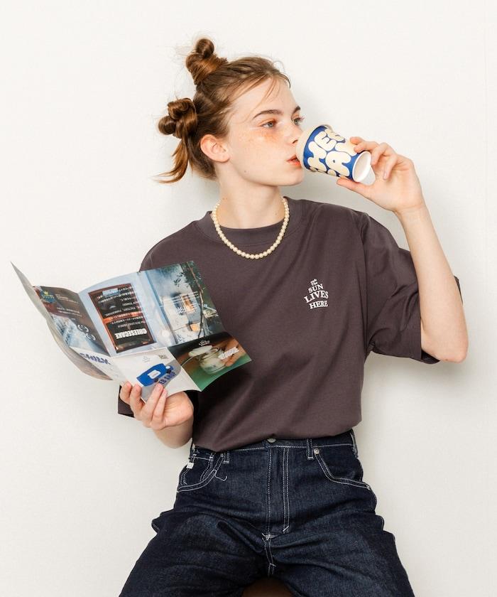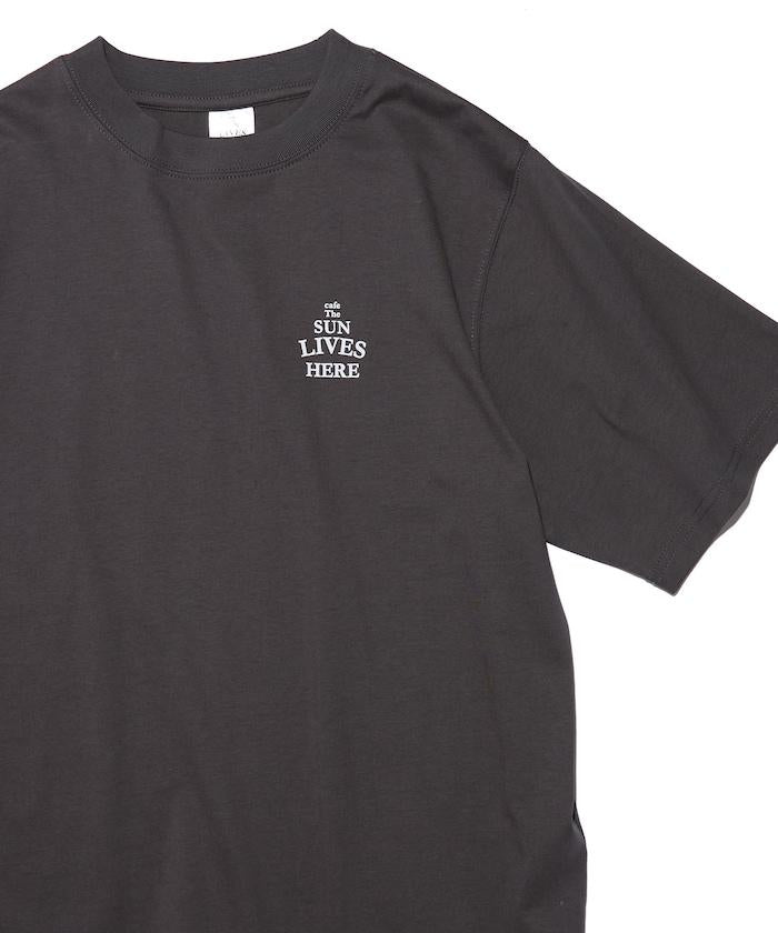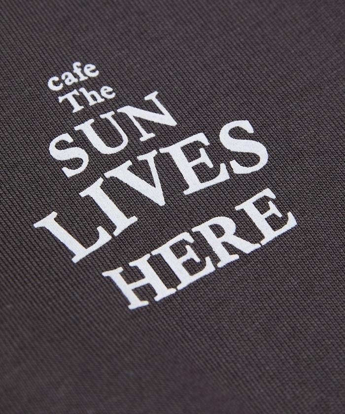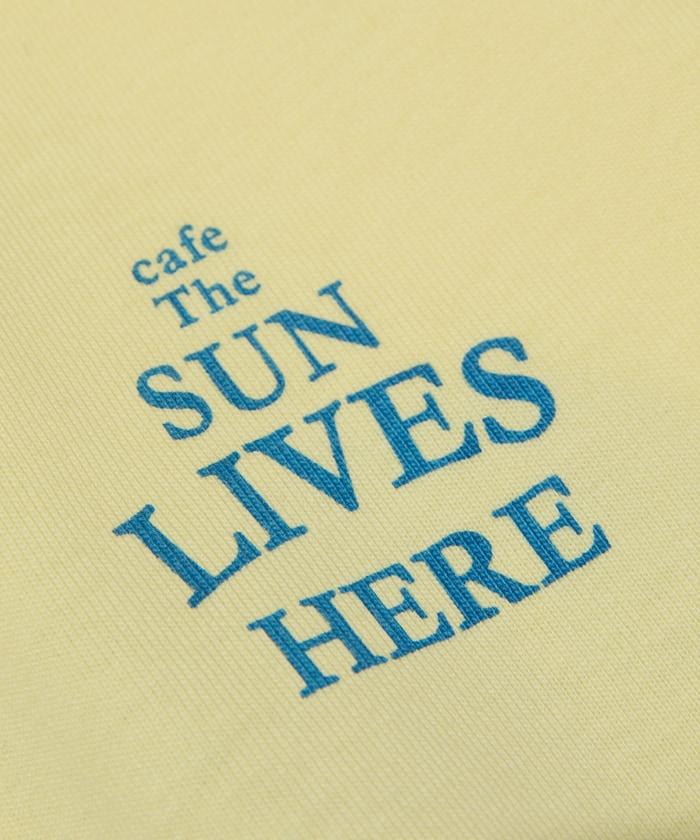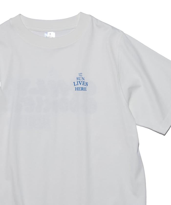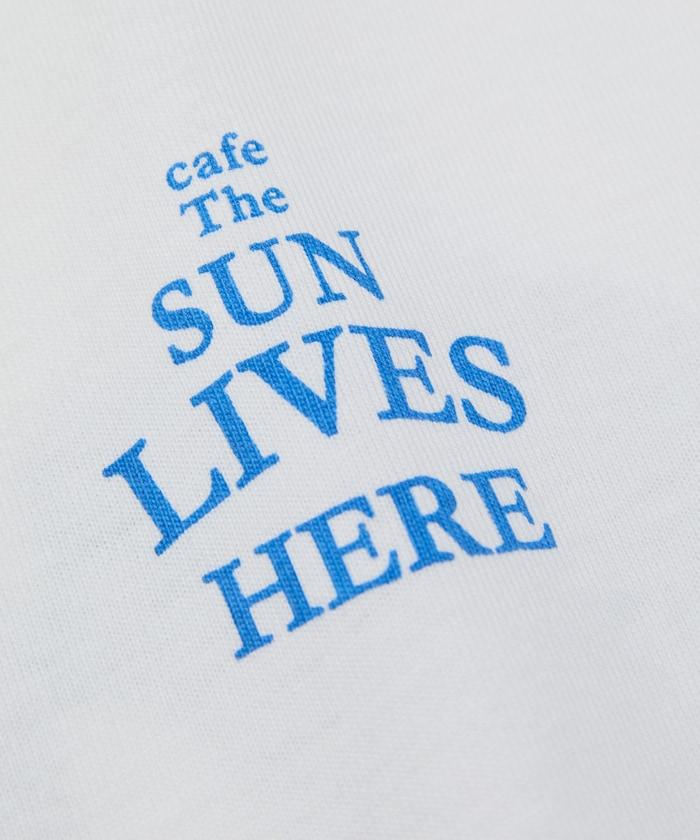 與 cafe THE SUN LIVES HERE 合作的 T 恤,採用搶眼的流行背面風格。