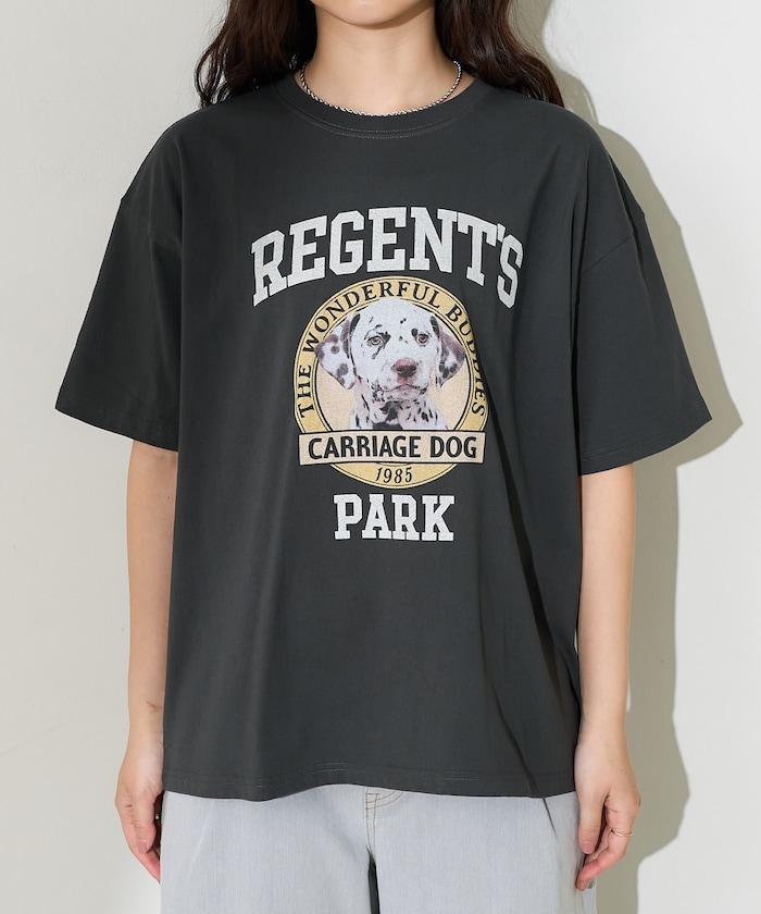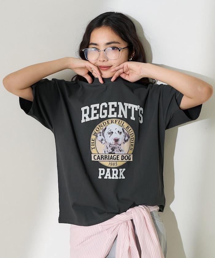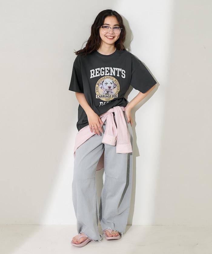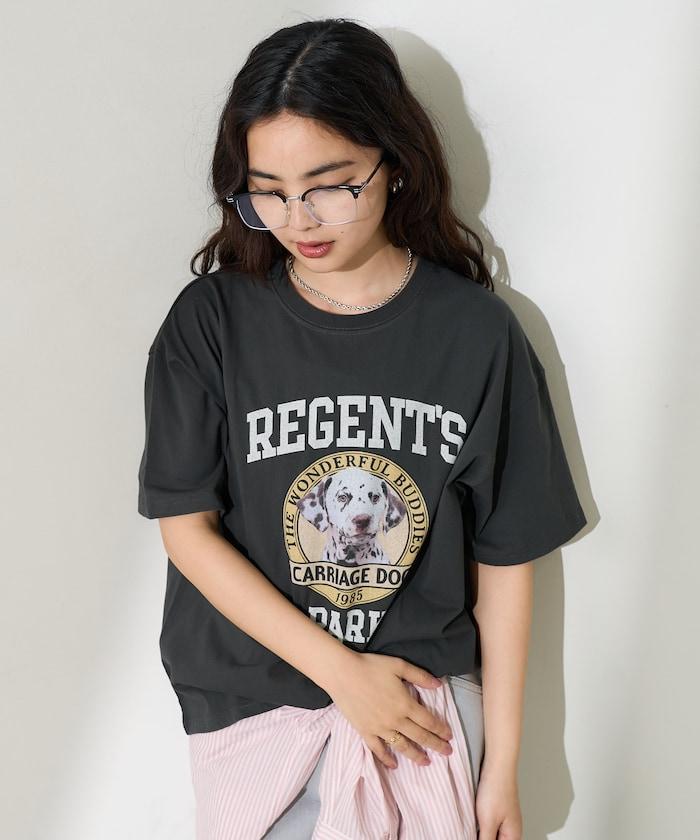 獨特的學院風印花 T 恤,看起來像舊衣服。