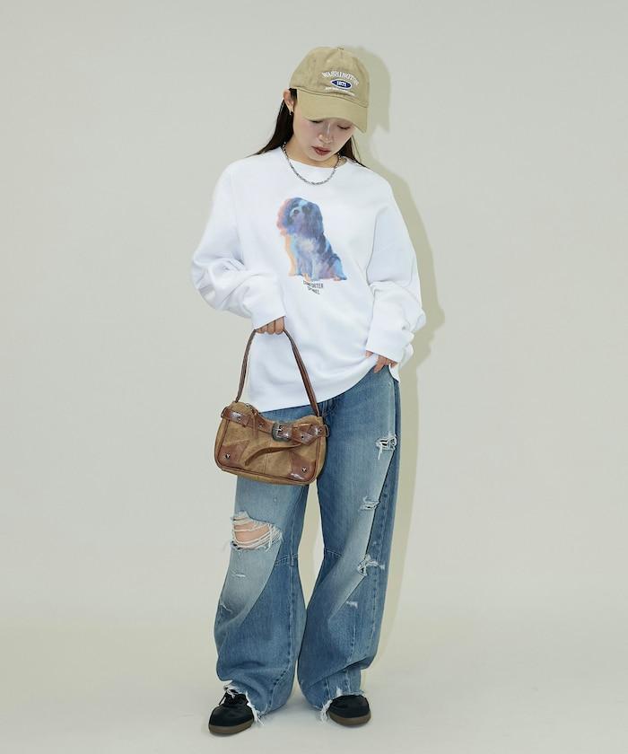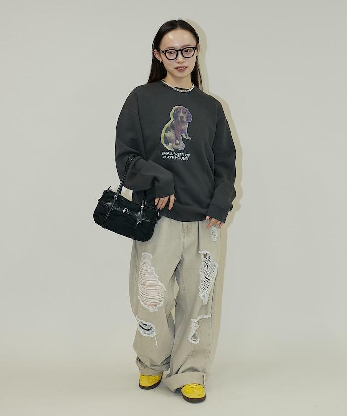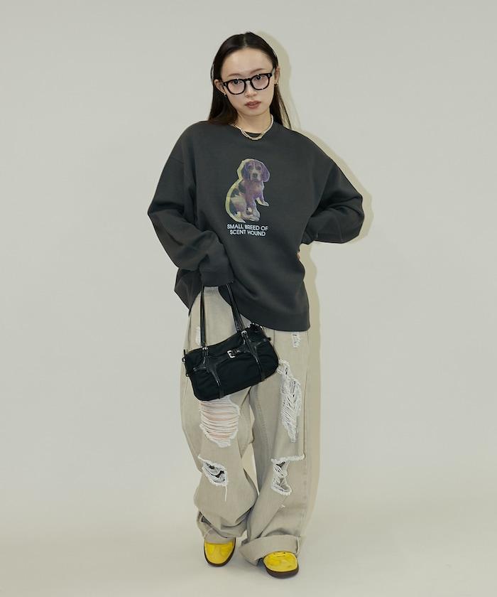 正面印有逼真的狗狗圖案,照片印花效果強烈,設計引人注目。