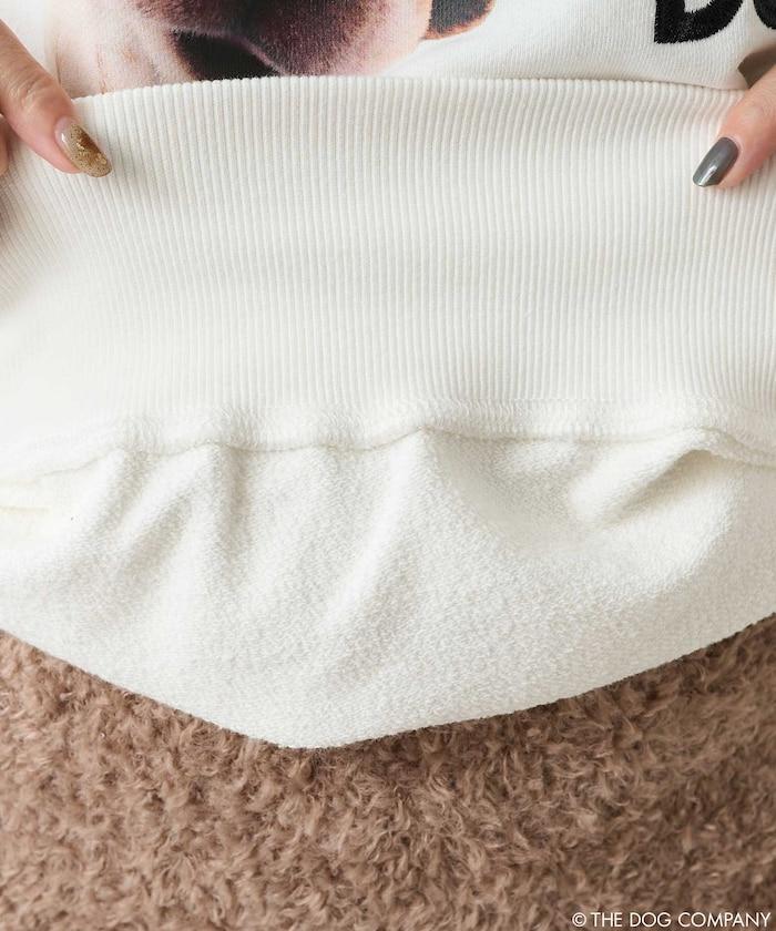 這款可愛的運動衫上印有一隻用魚眼鏡頭拍攝的大鼻子狗狗。