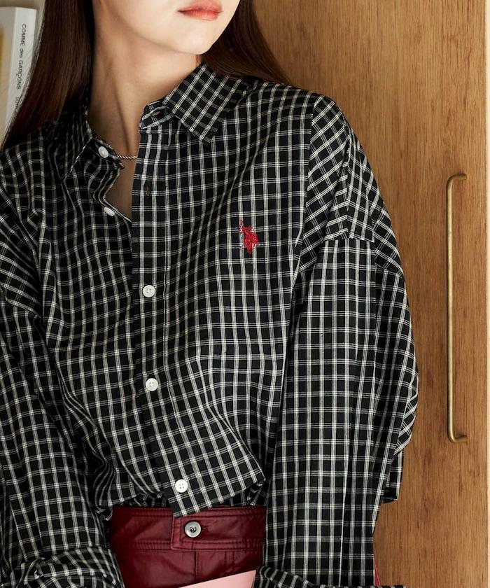 特色標誌刺繡格子襯衫