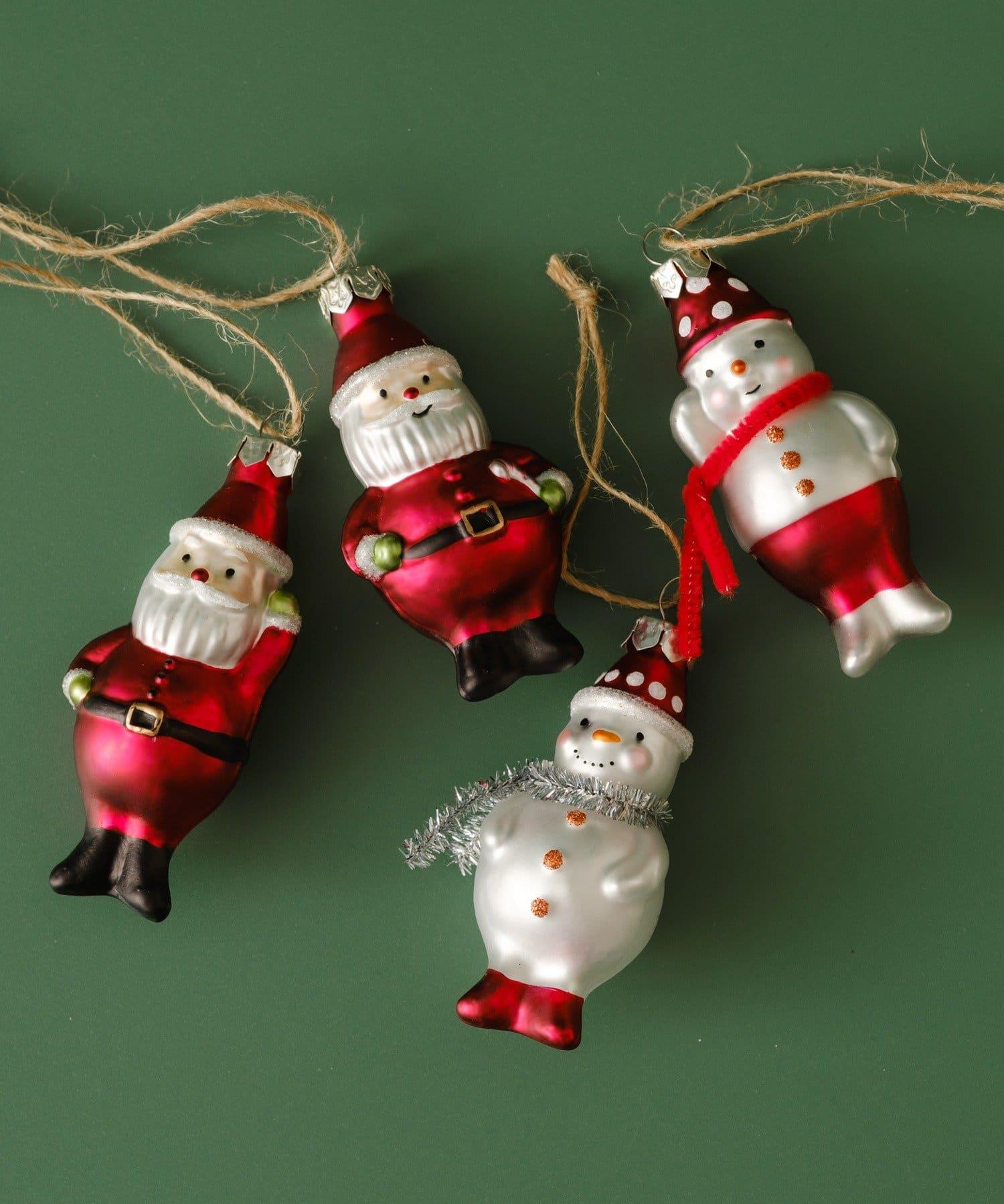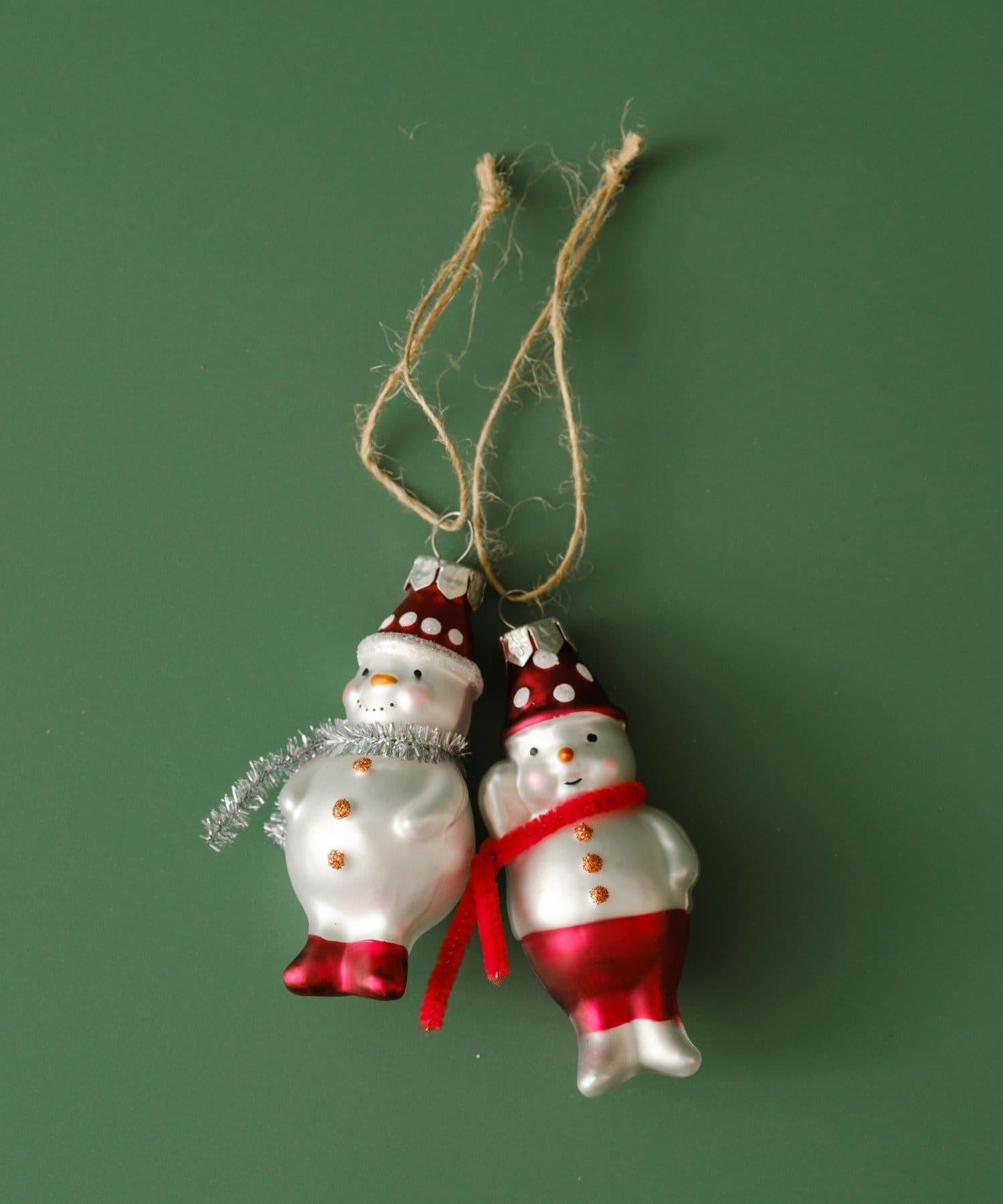 這套飾品包含雪人和聖誕老人兩種復古玻璃風格的飾品。