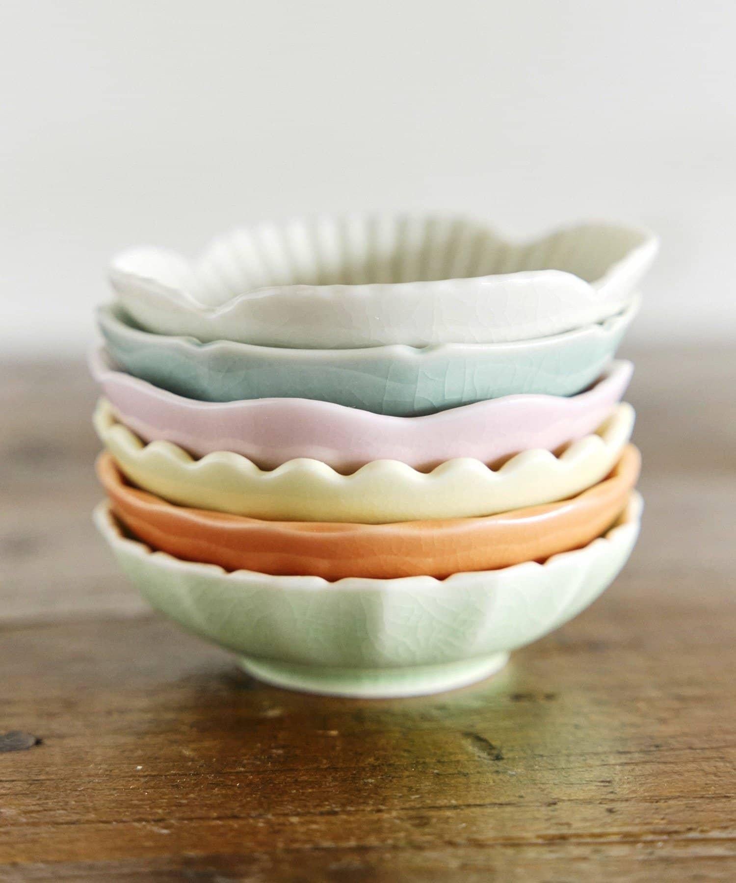 用玻璃釉製作的帶有美麗穿孔圖案的小碟子。