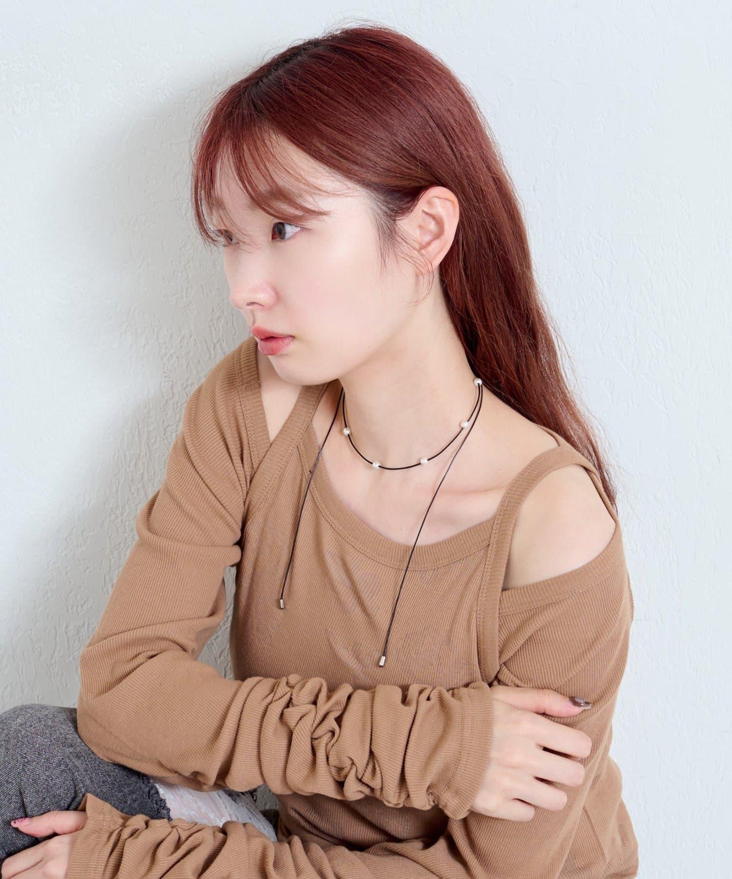 在簡單的繩索上鑲嵌珍珠長珠的多向項鍊。