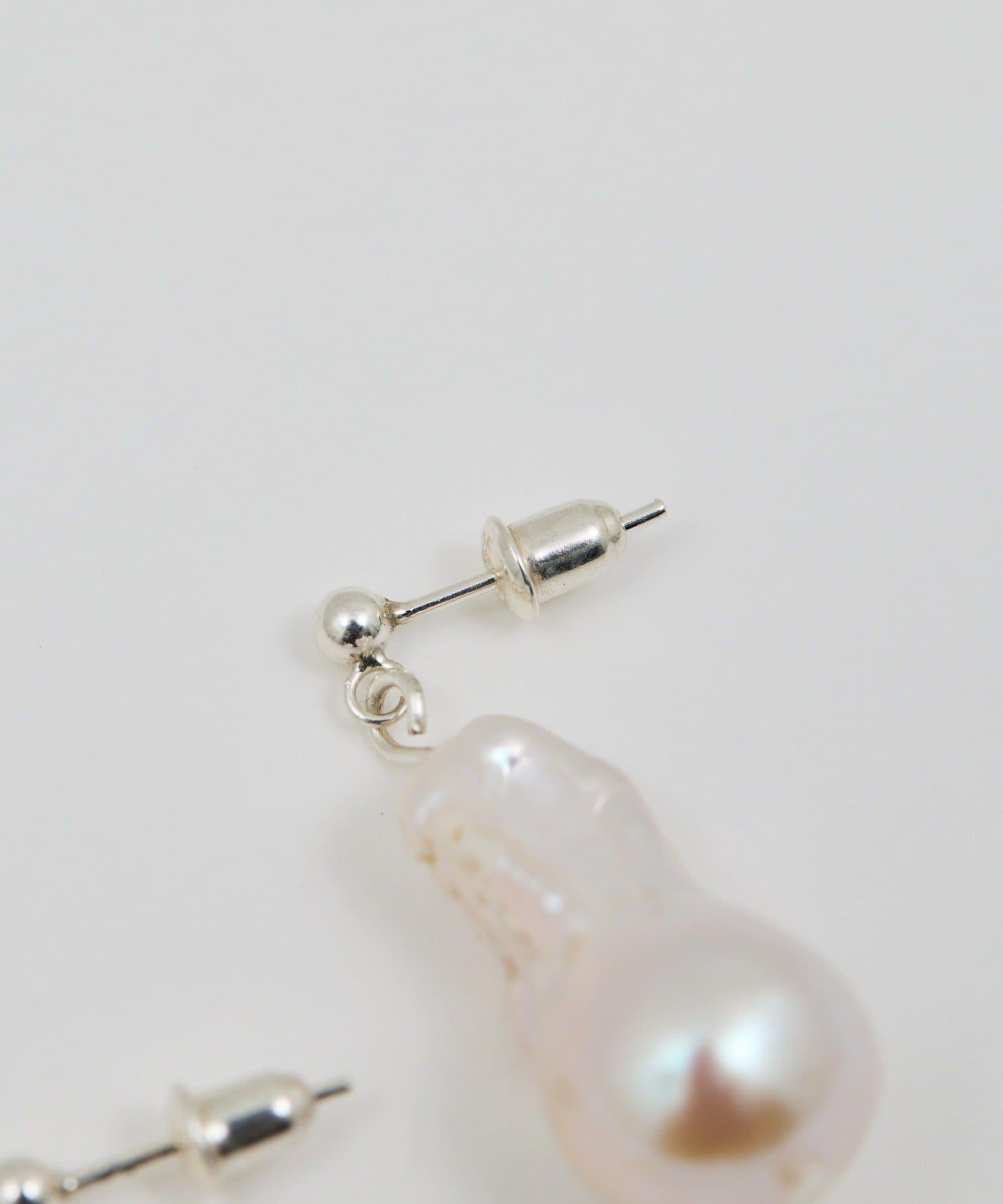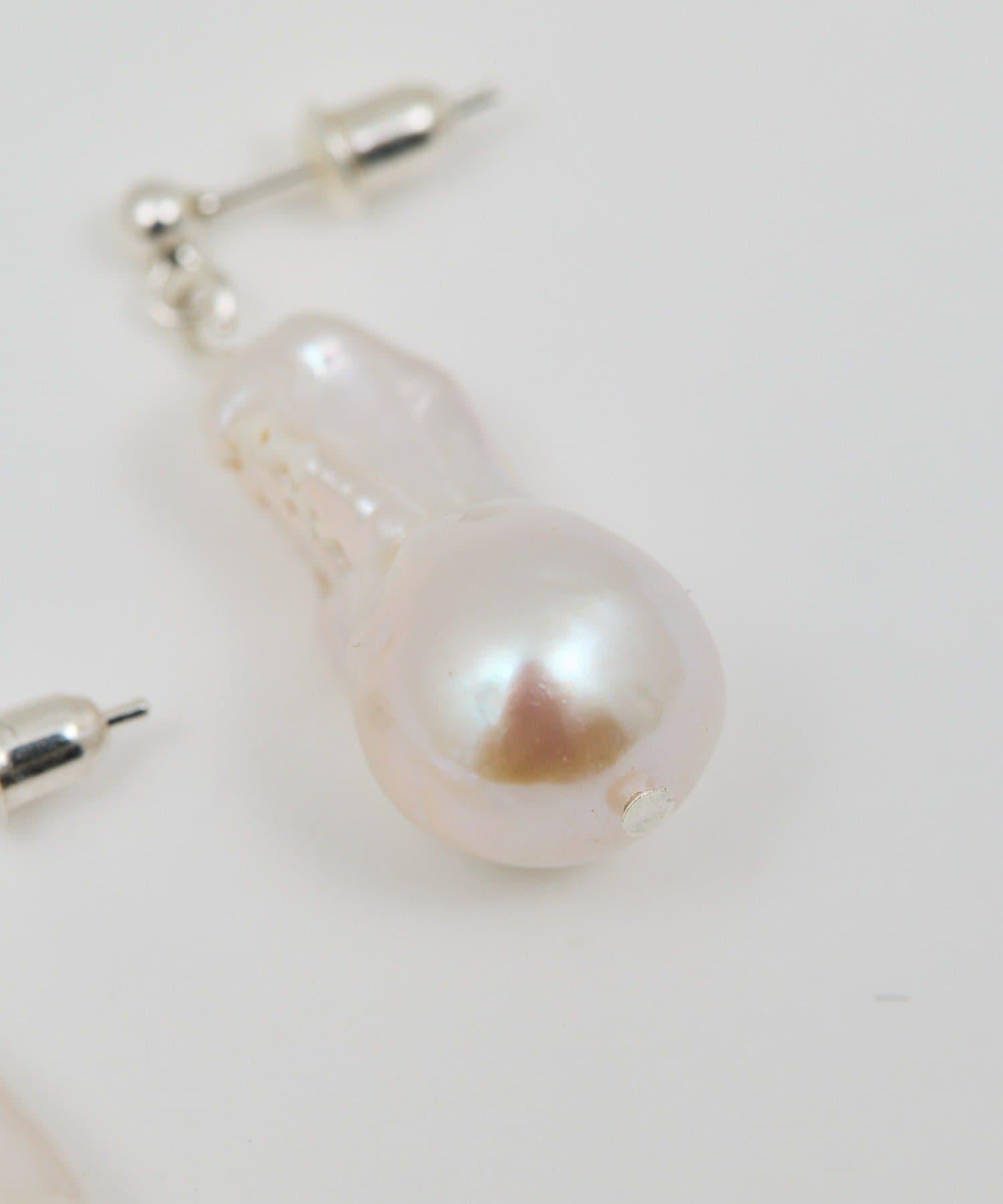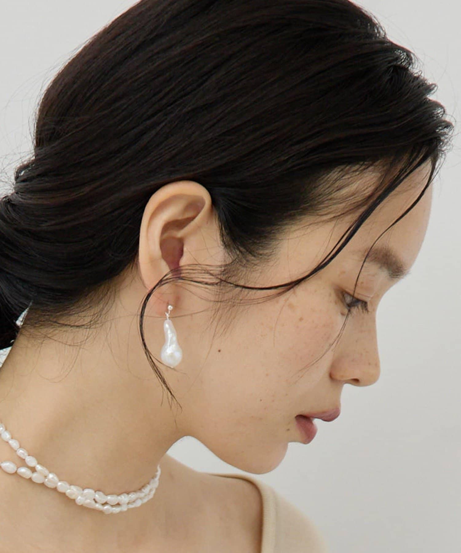 牡蠣形珍珠耳環為耳朵增添柔和的光彩。