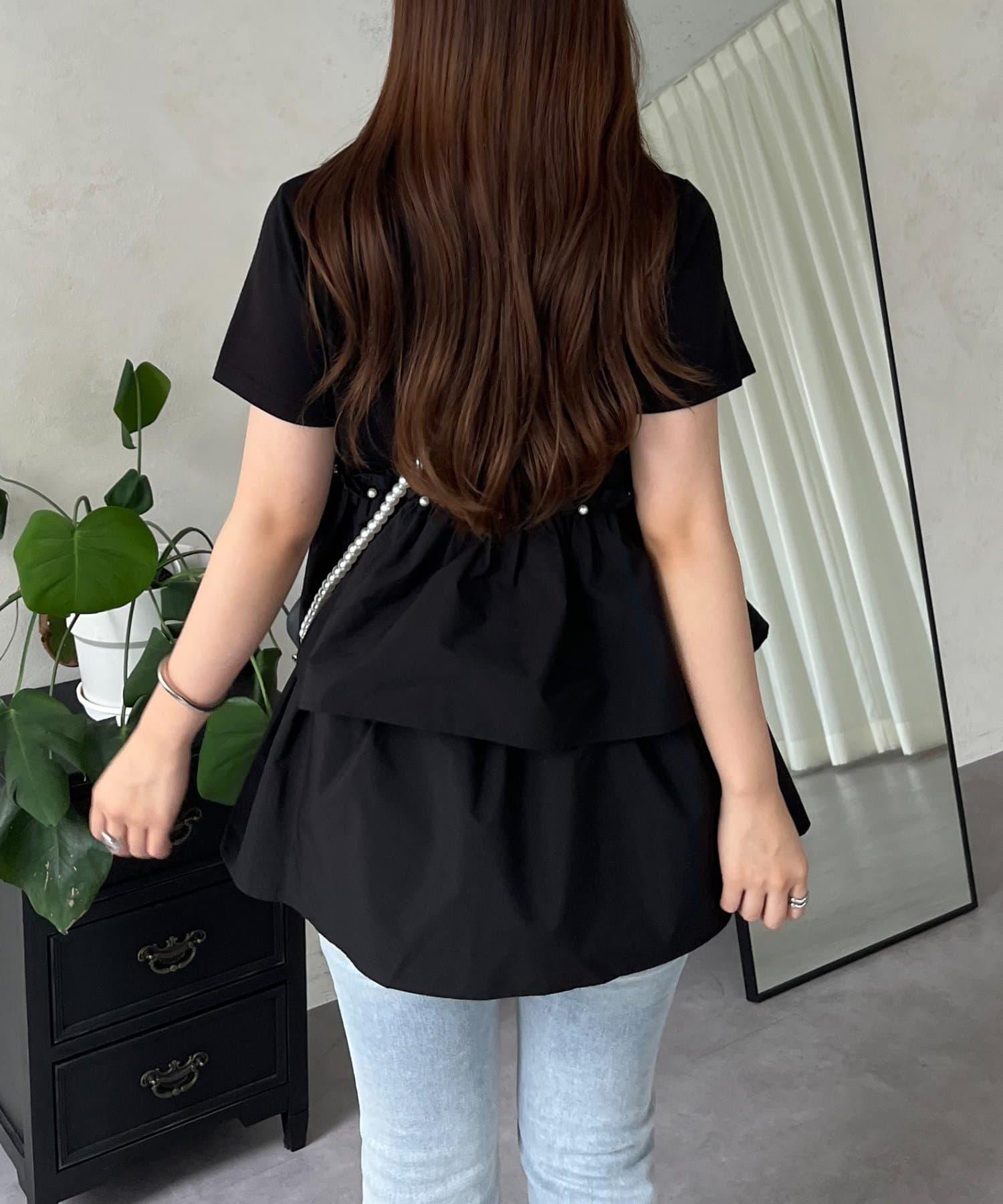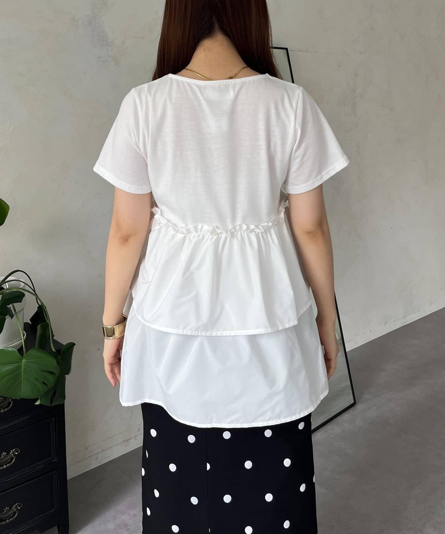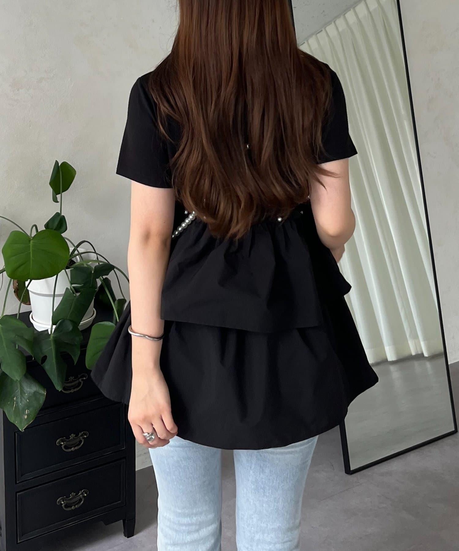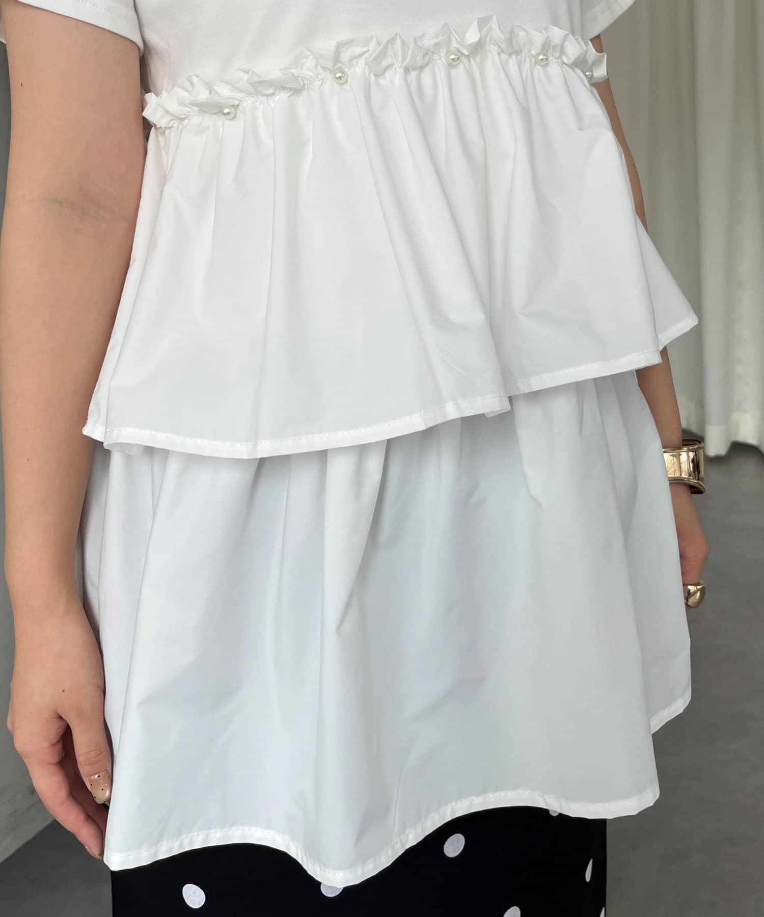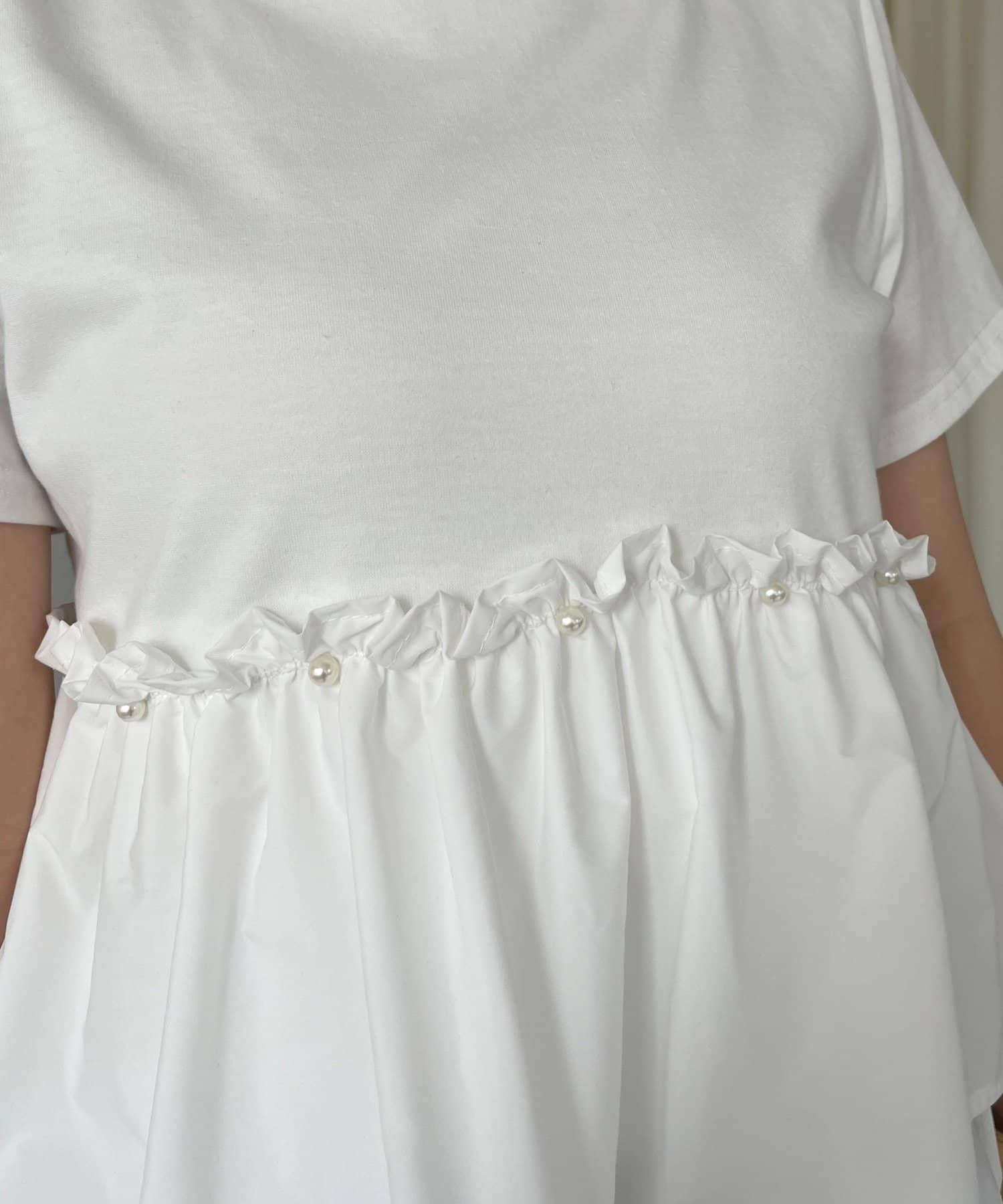 珍珠荷葉邊荷葉邊T恤