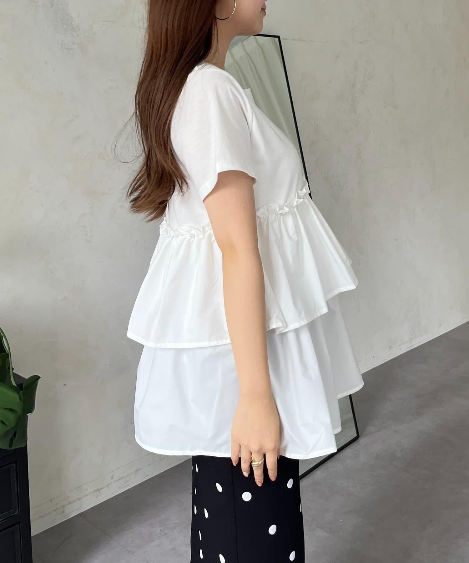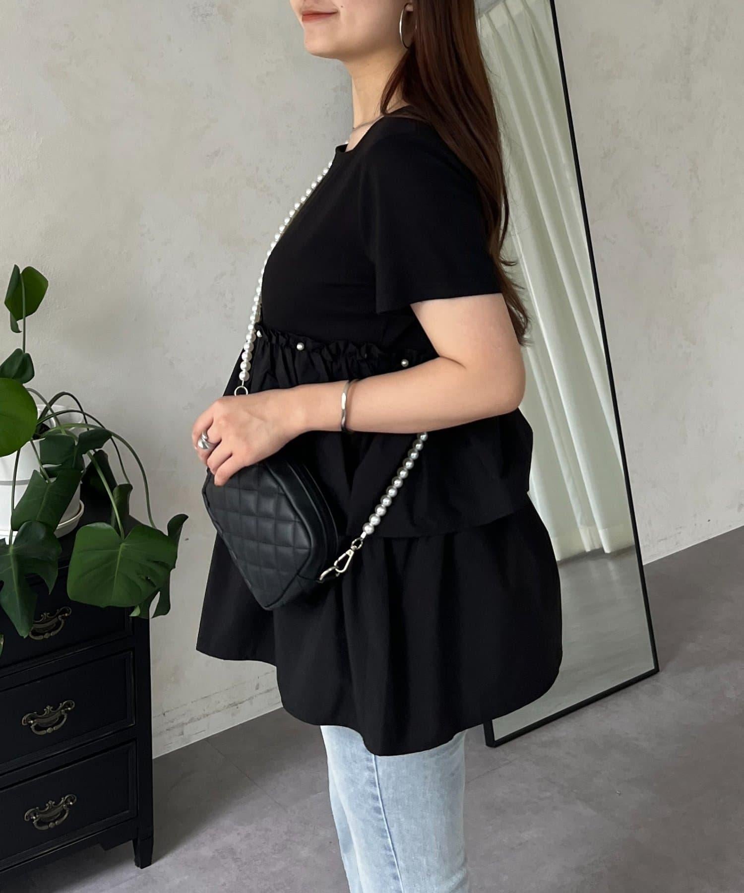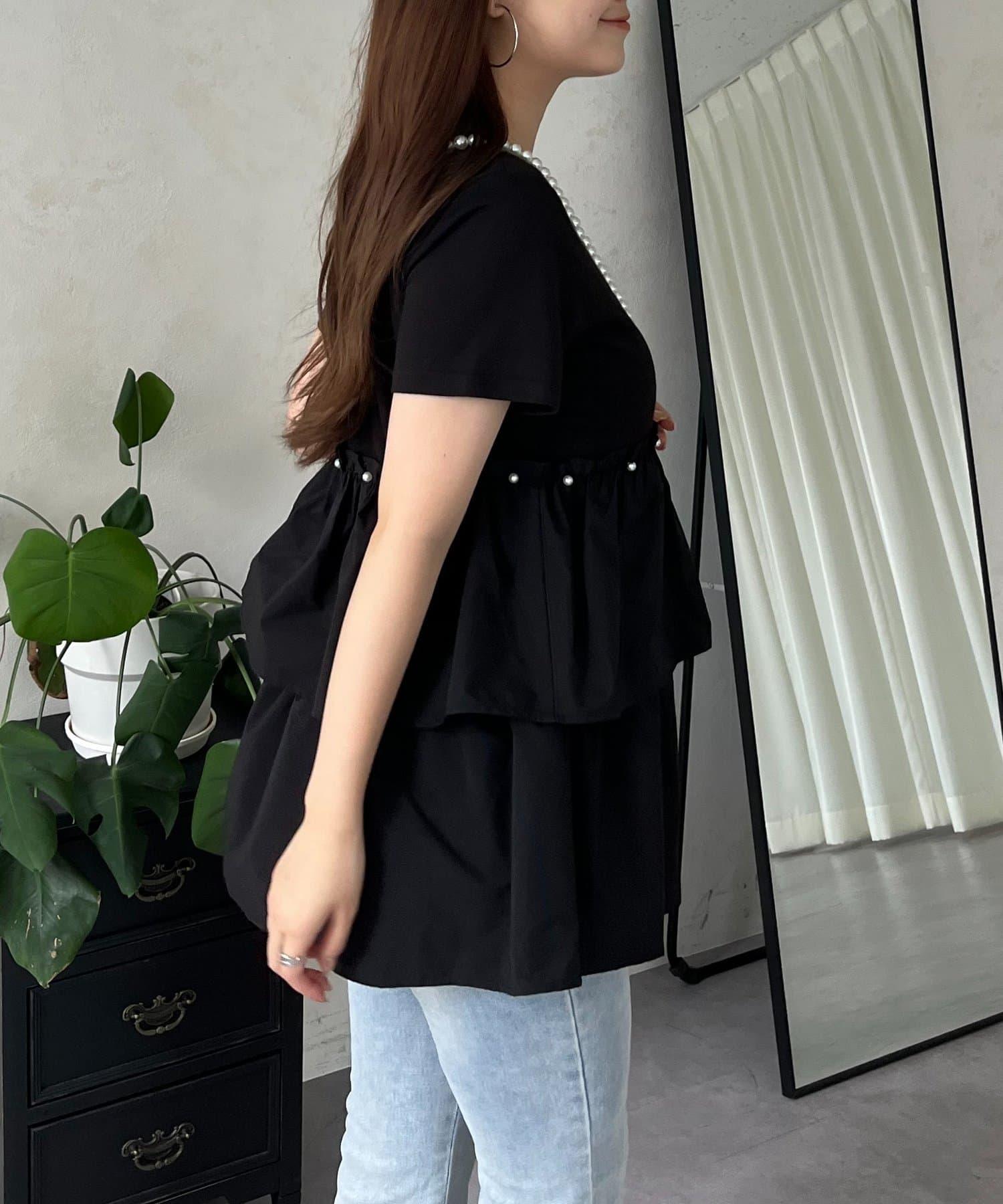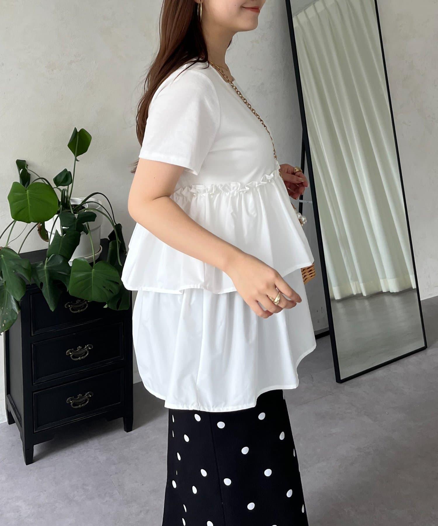 珍珠荷葉邊荷葉邊T恤