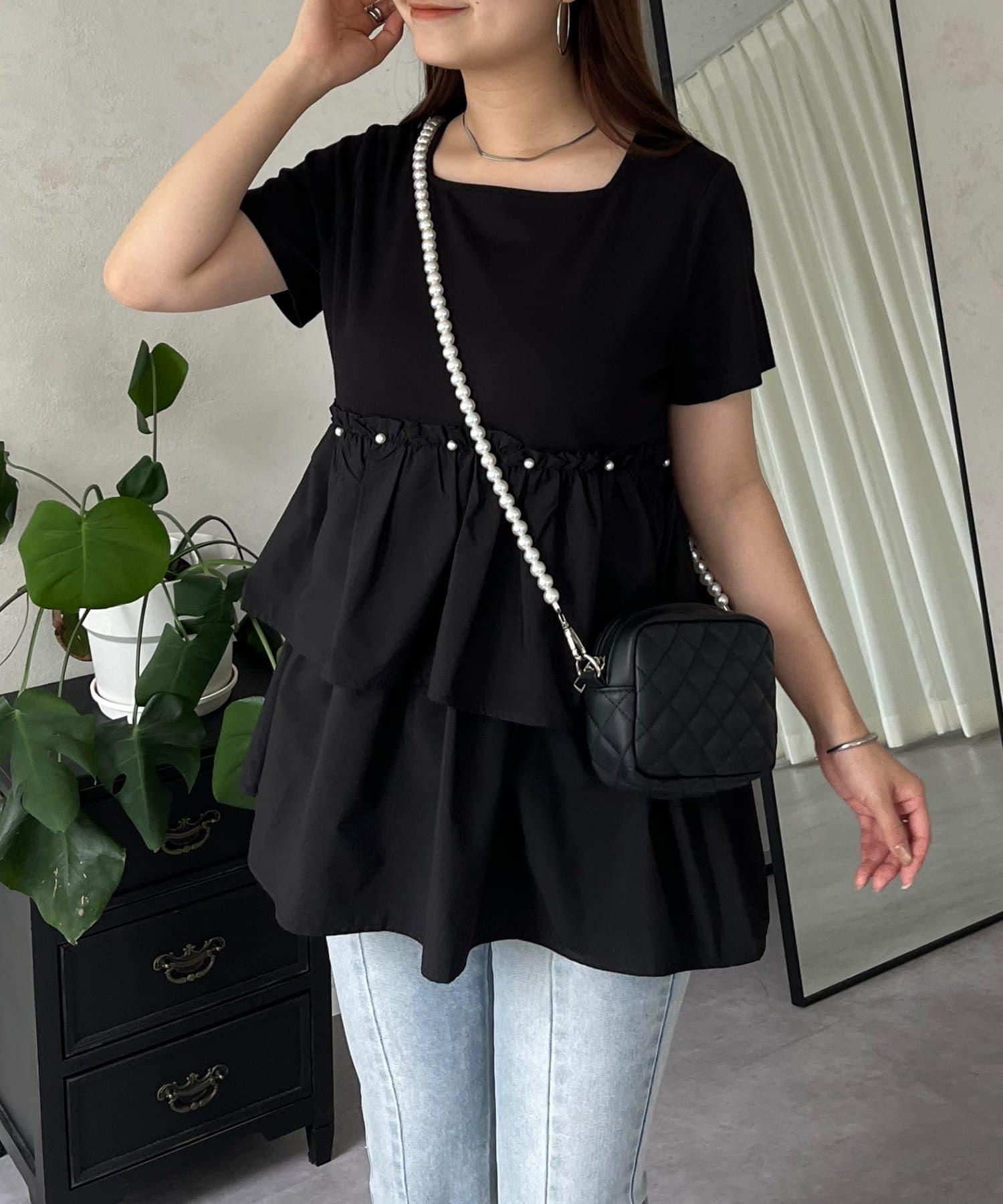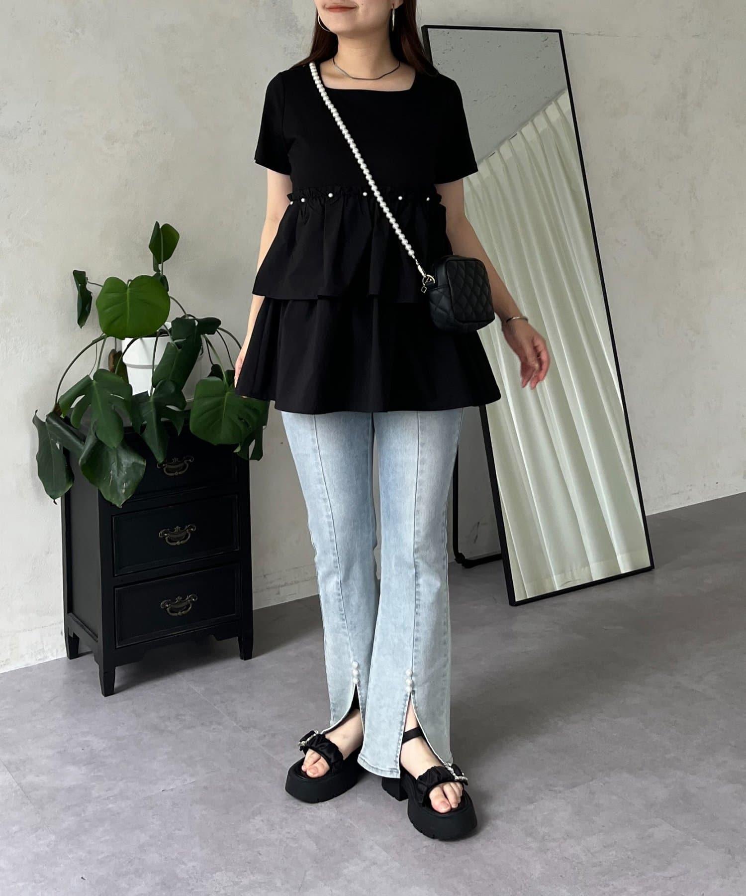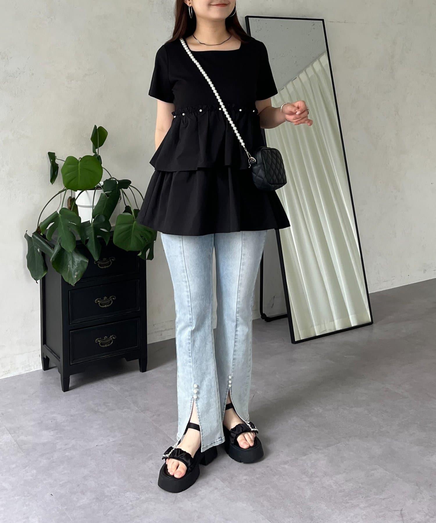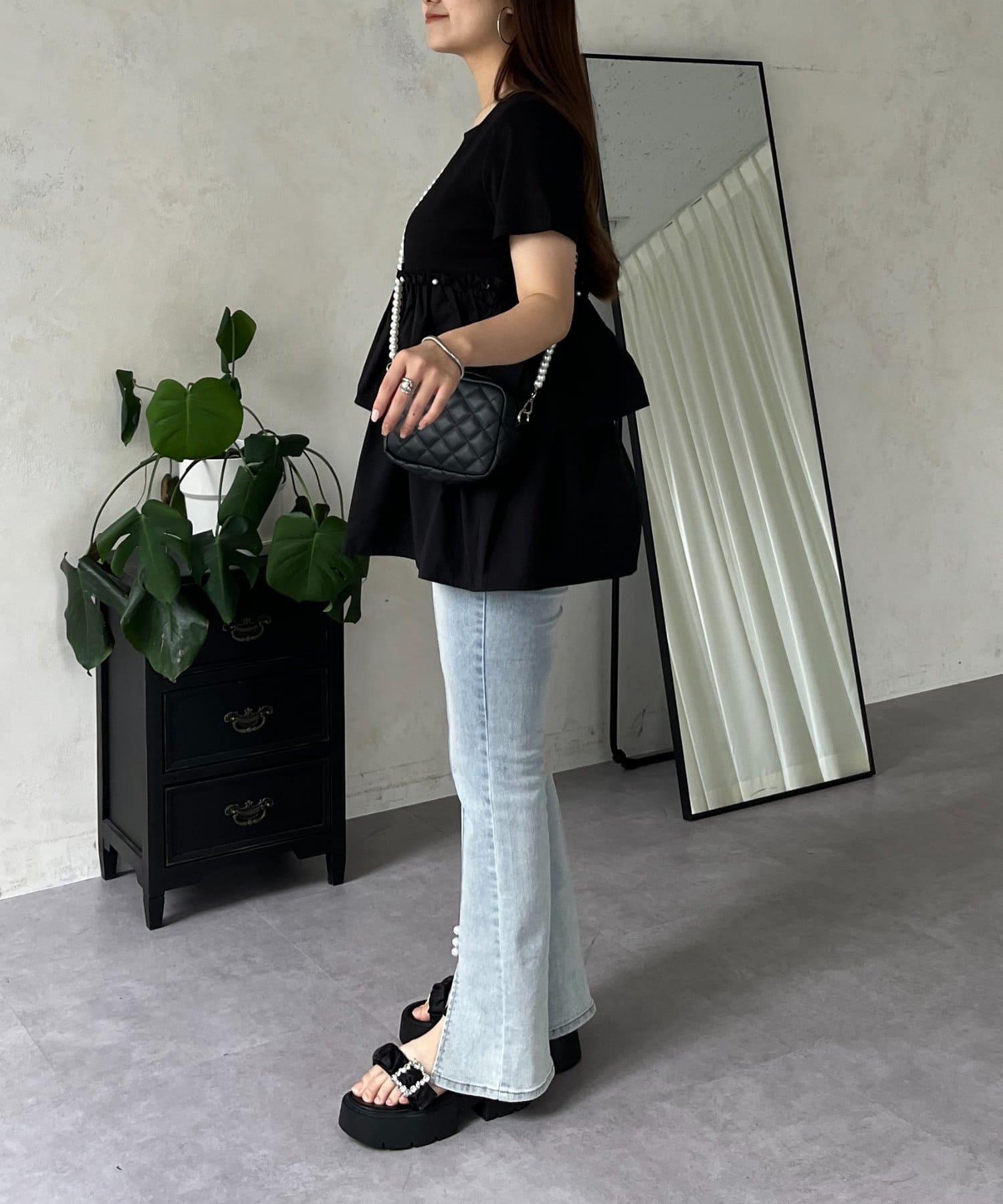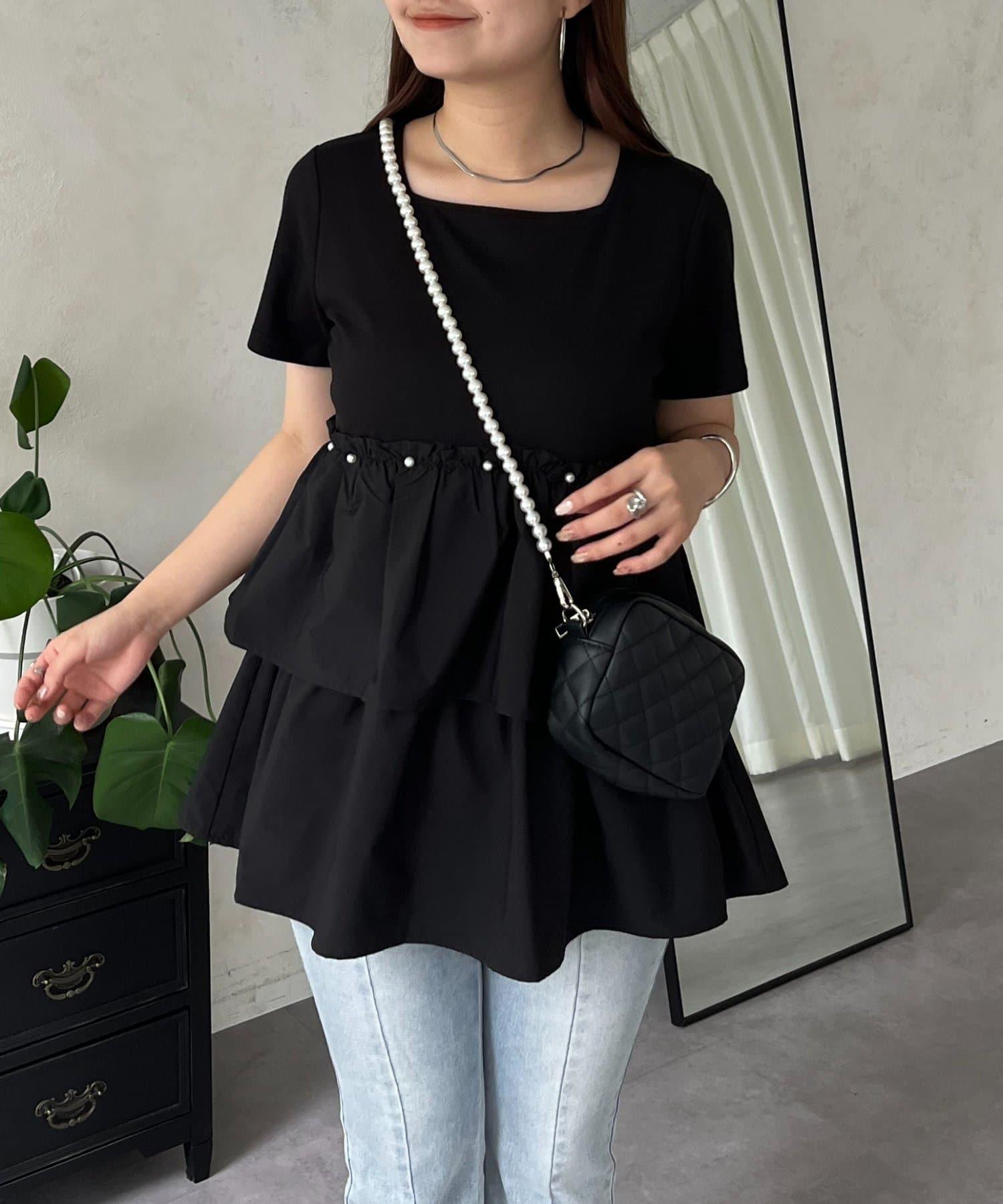珍珠荷葉邊荷葉邊T恤