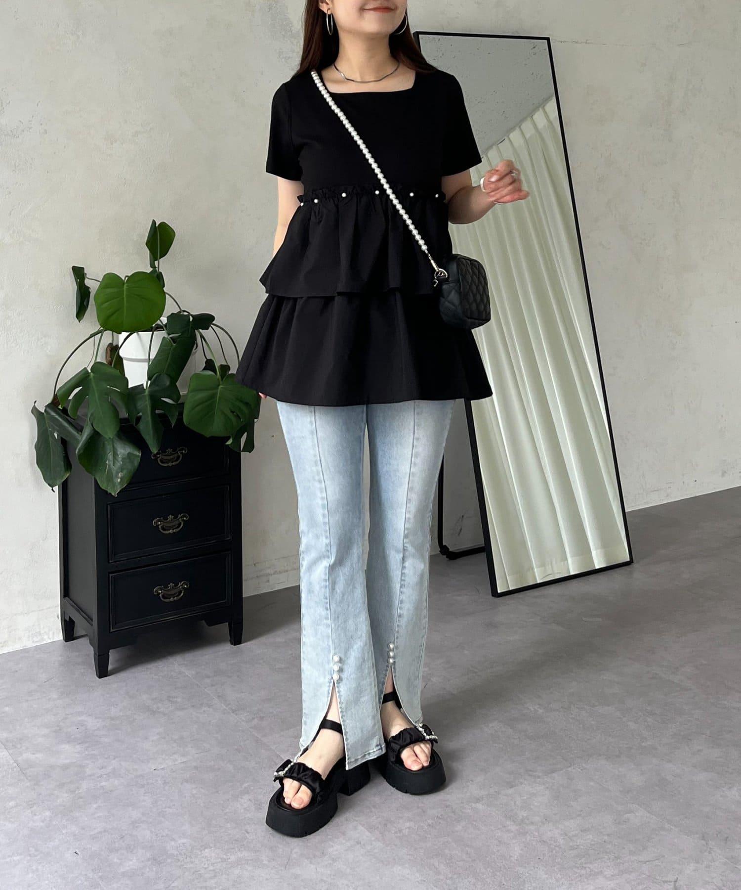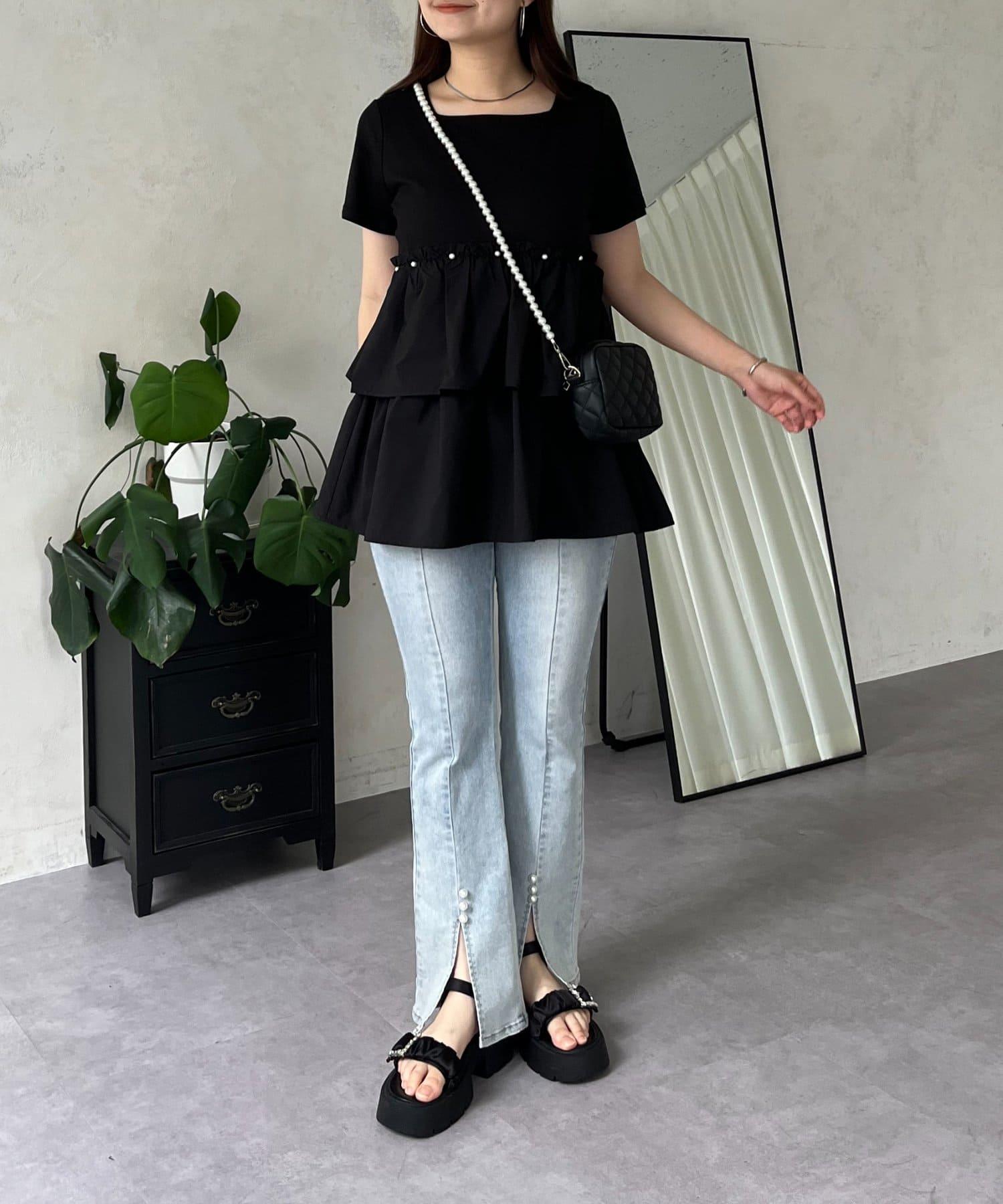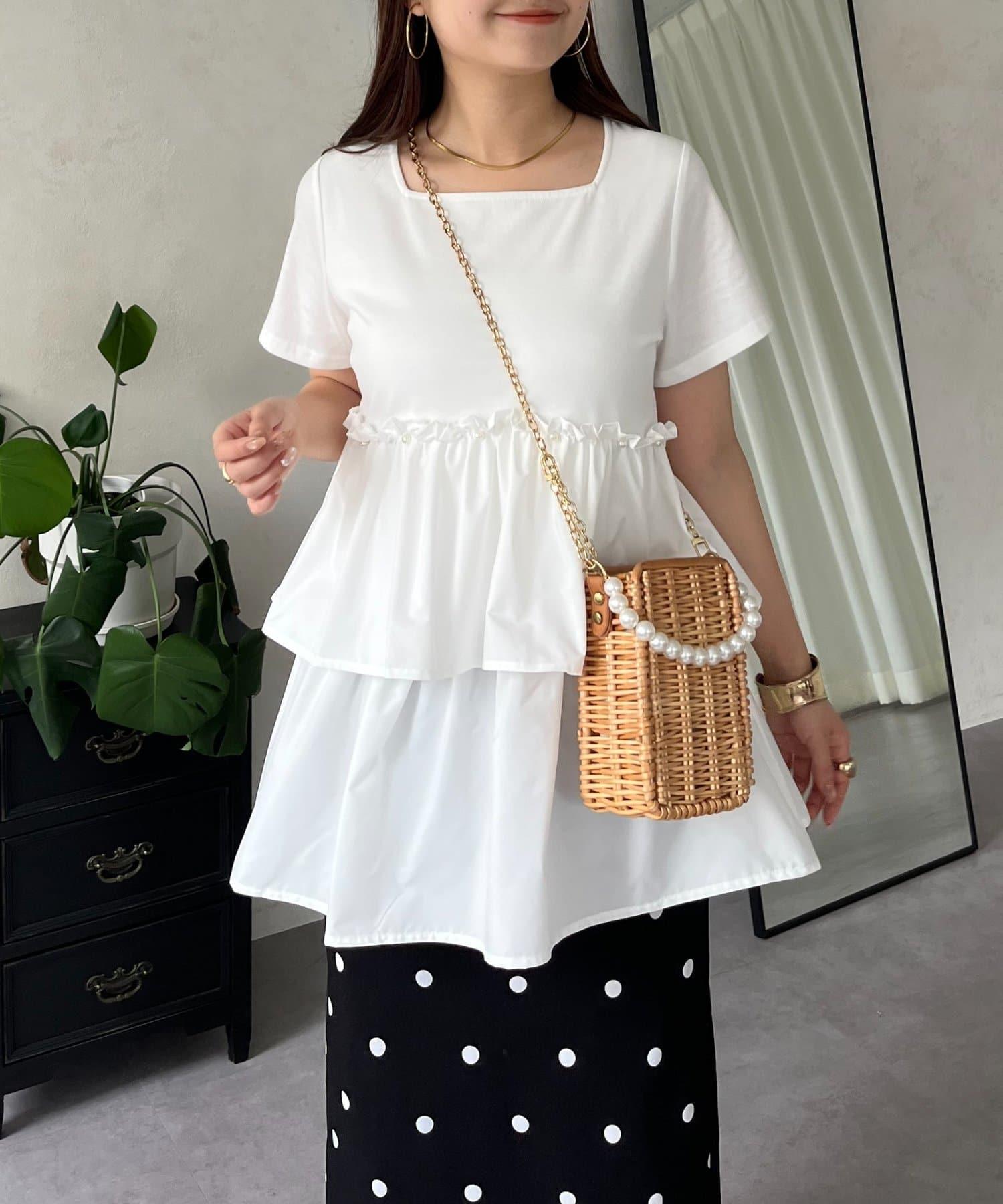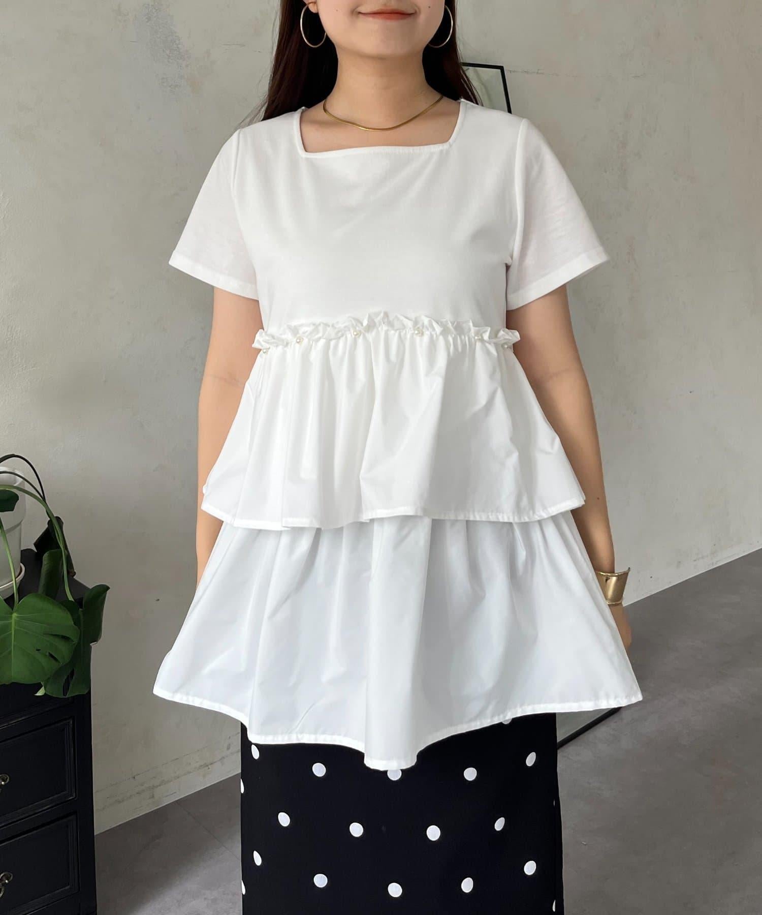 珍珠荷葉邊荷葉邊T恤