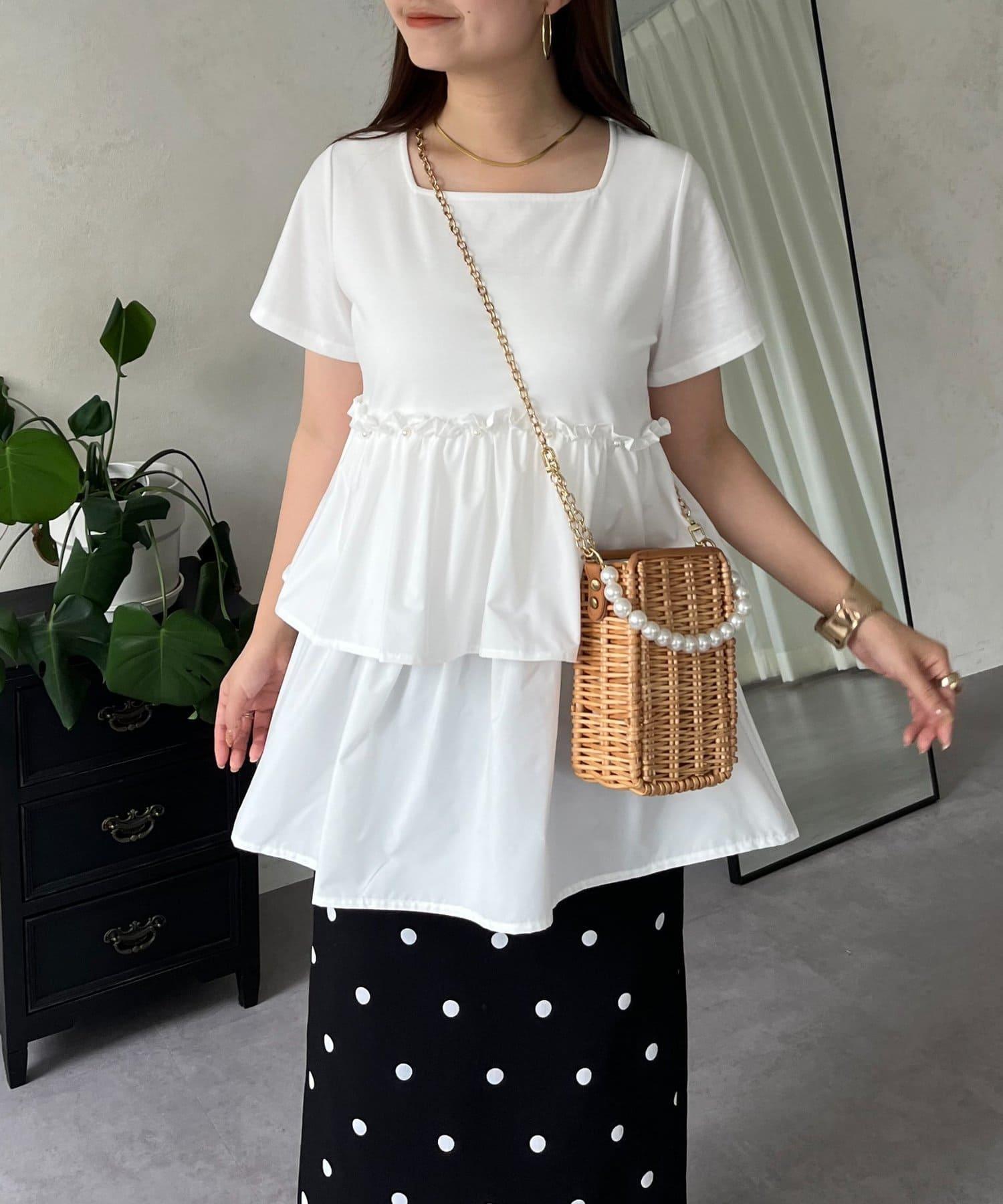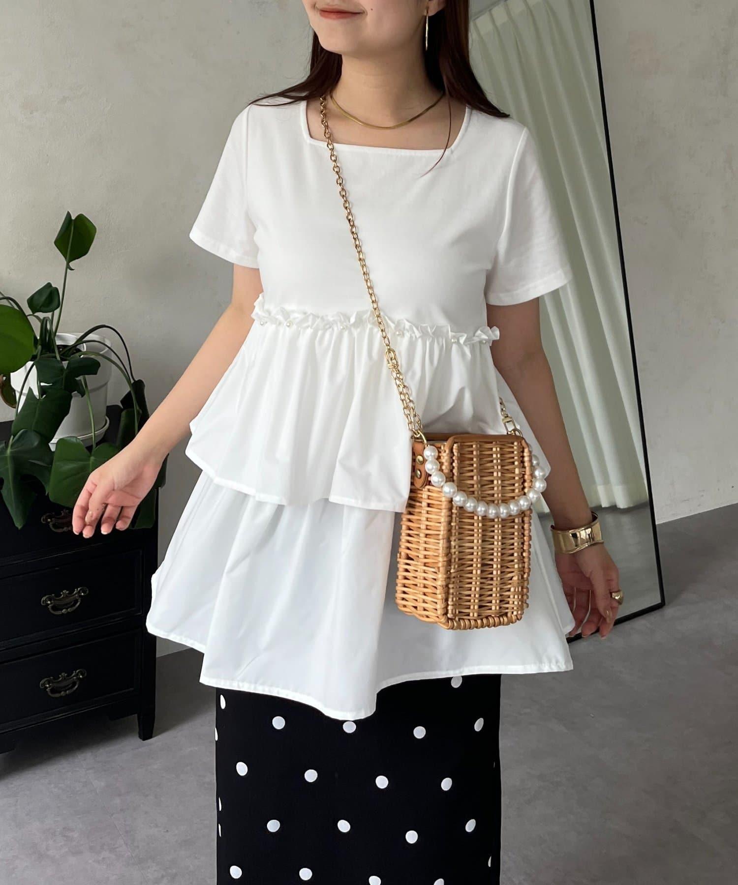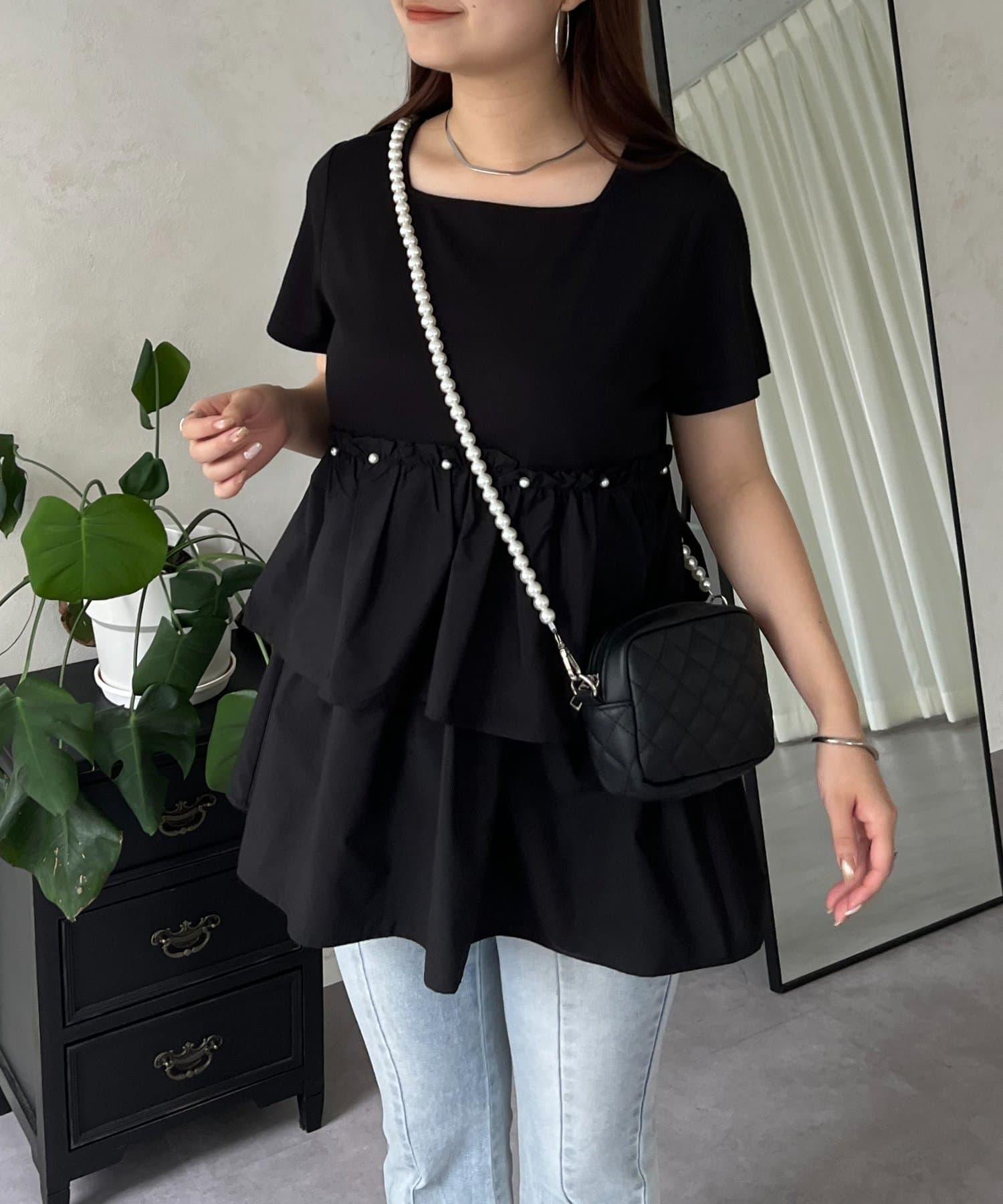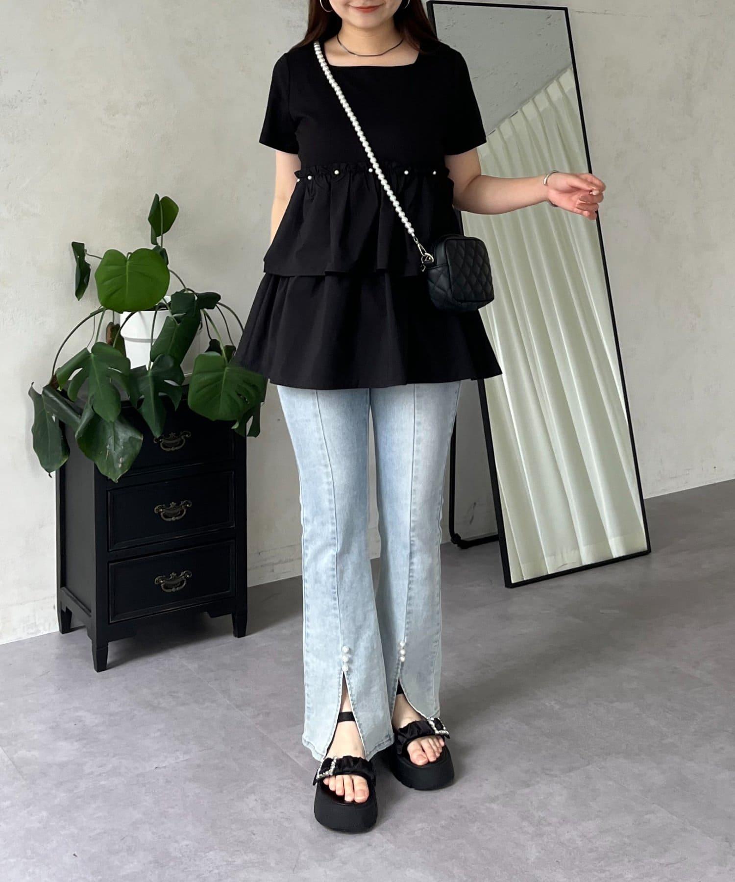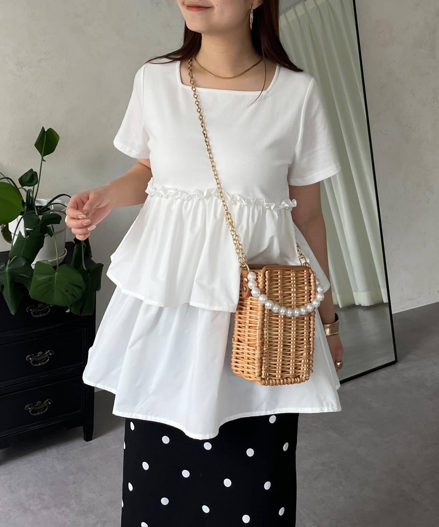 珍珠荷葉邊荷葉邊T恤
